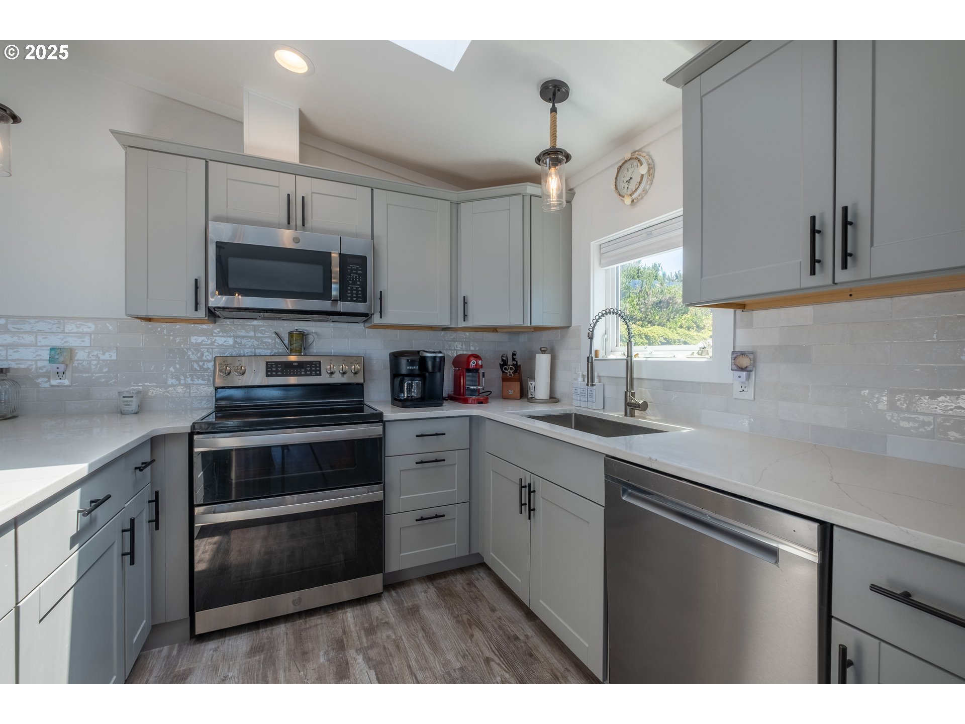 Step into your own coastal paradise on the stunning Oregon Coast, where this remodeled home offers panoramic ocean views that seem to stretch forever. Every detail of this turn-key gem has been meticulously crafted, offering a sanctuary of luxury and relaxation. The open-concept living space is filled with natural light, creating a warm and welcoming ambiance. Through expansive windows, the beauty of the ocean becomes a part of your everyday life. Step onto the new Trex deck, where the soothing sea breeze and sounds of the ocean create the perfect atmosphere for unwinding. The chef's kitchen is an entertainer's dream, featuring sleek quartz countertops, stylish cabinetry, and premium stainless steel appliances. It's as functional as it is beautiful, ideal for preparing meals and hosting guests. The bathrooms are designed as tranquil retreats, offering a spa-like experience with luxurious finishes throughout. With three well-appointed bedrooms, you and your guests will enjoy comfort and privacy. Whether you're looking for a full-time residence or a peaceful vacation getaway, this home offers the best of both worlds. Located in the quaint town of Depoe Bay, you'll have exclusive access to a private beach, giving you the ultimate in coastal living. There's also room for multiple cars, including a recently built single car garage with a remote opener--perfect for added convenience and storage. This home isn't just a house--it's a lifestyle. Embrace life on the Oregon Coast, where every day feels like a vacation. Welcome home! Low taxes, insurance, utilities and no HOA. Current space rent $1895. Space rent includes property (land) tax, private beach entrance, community maintenance, riprap maintenance.