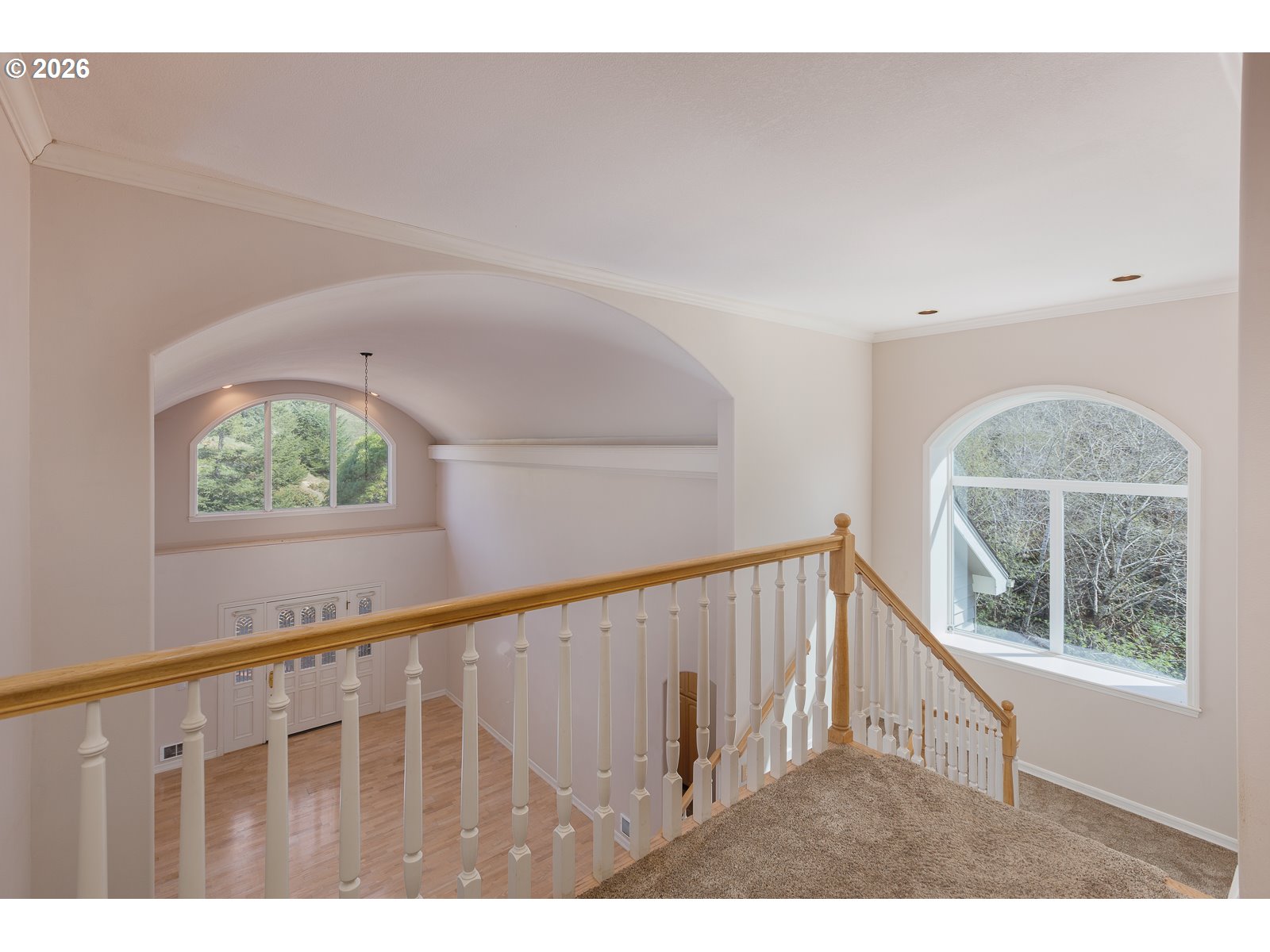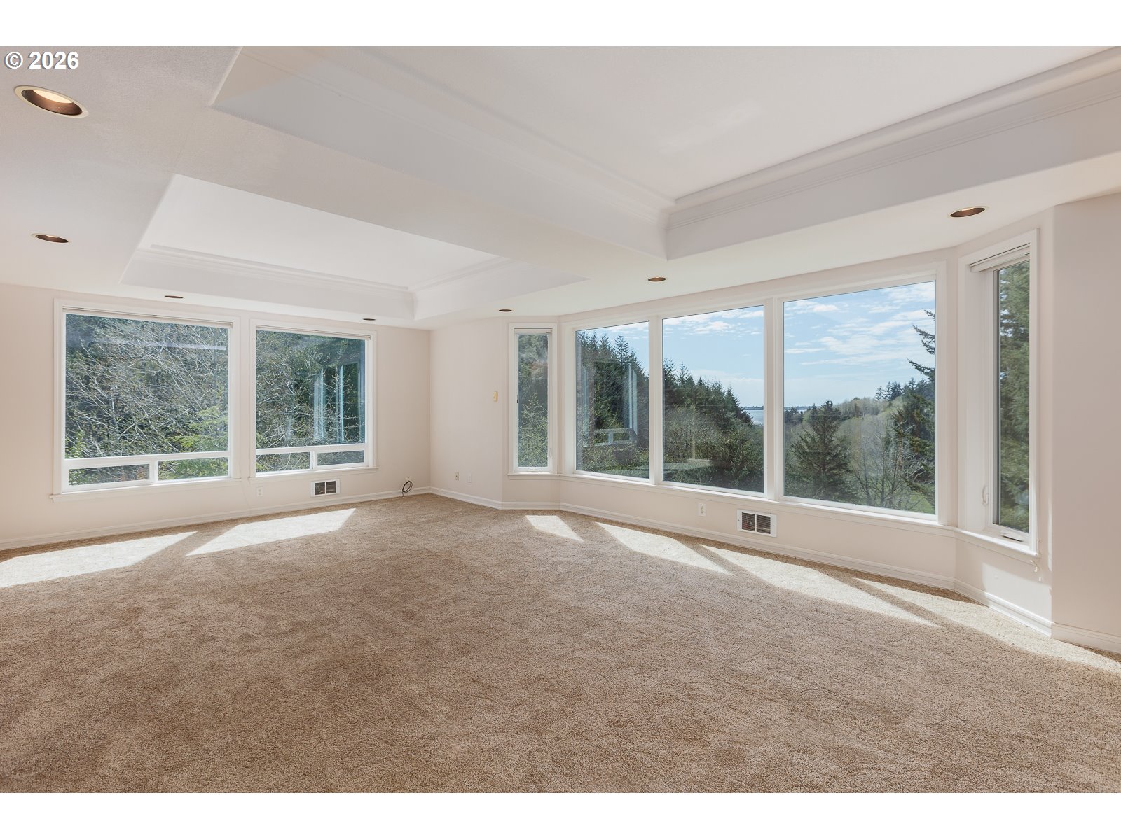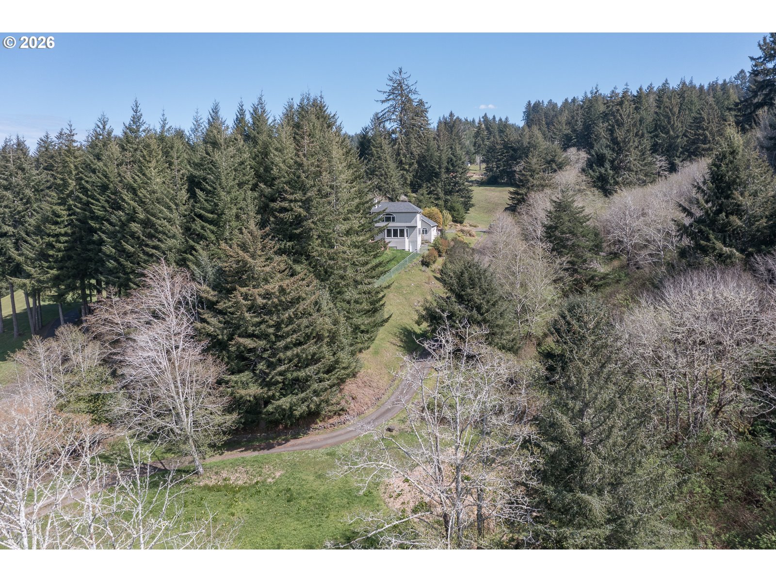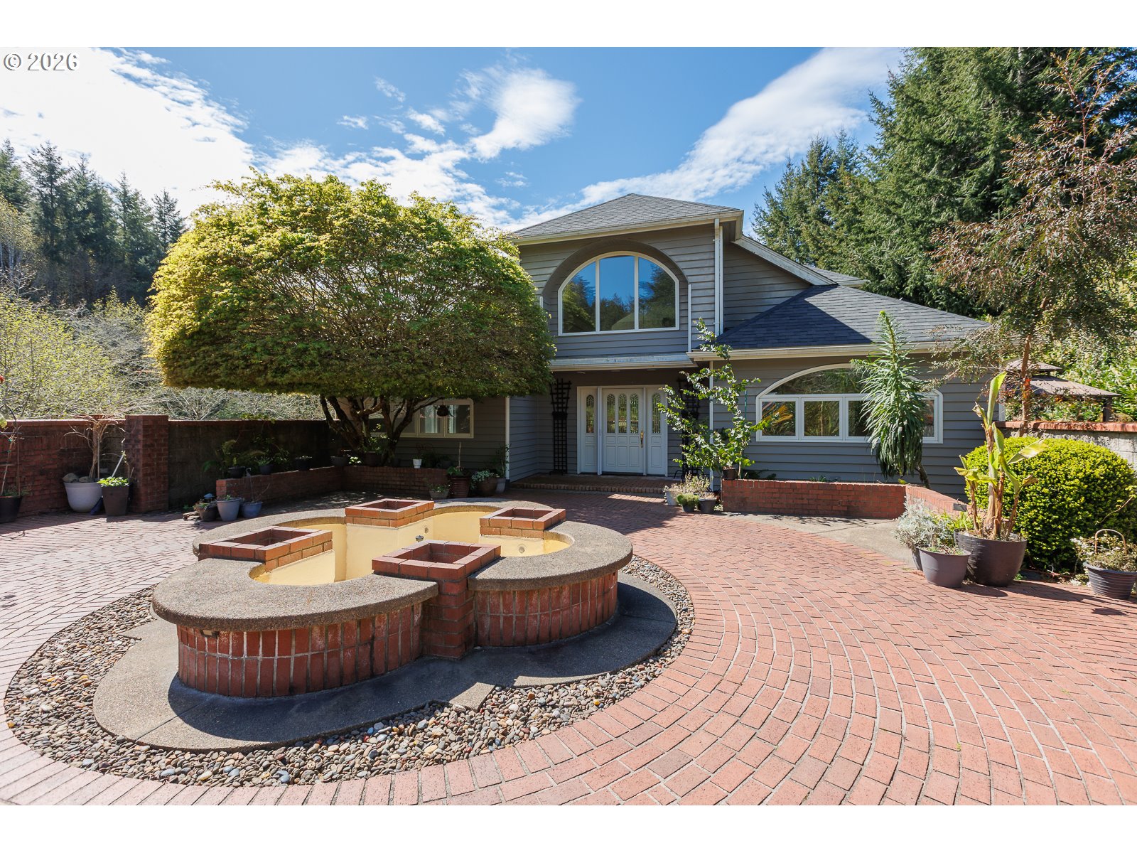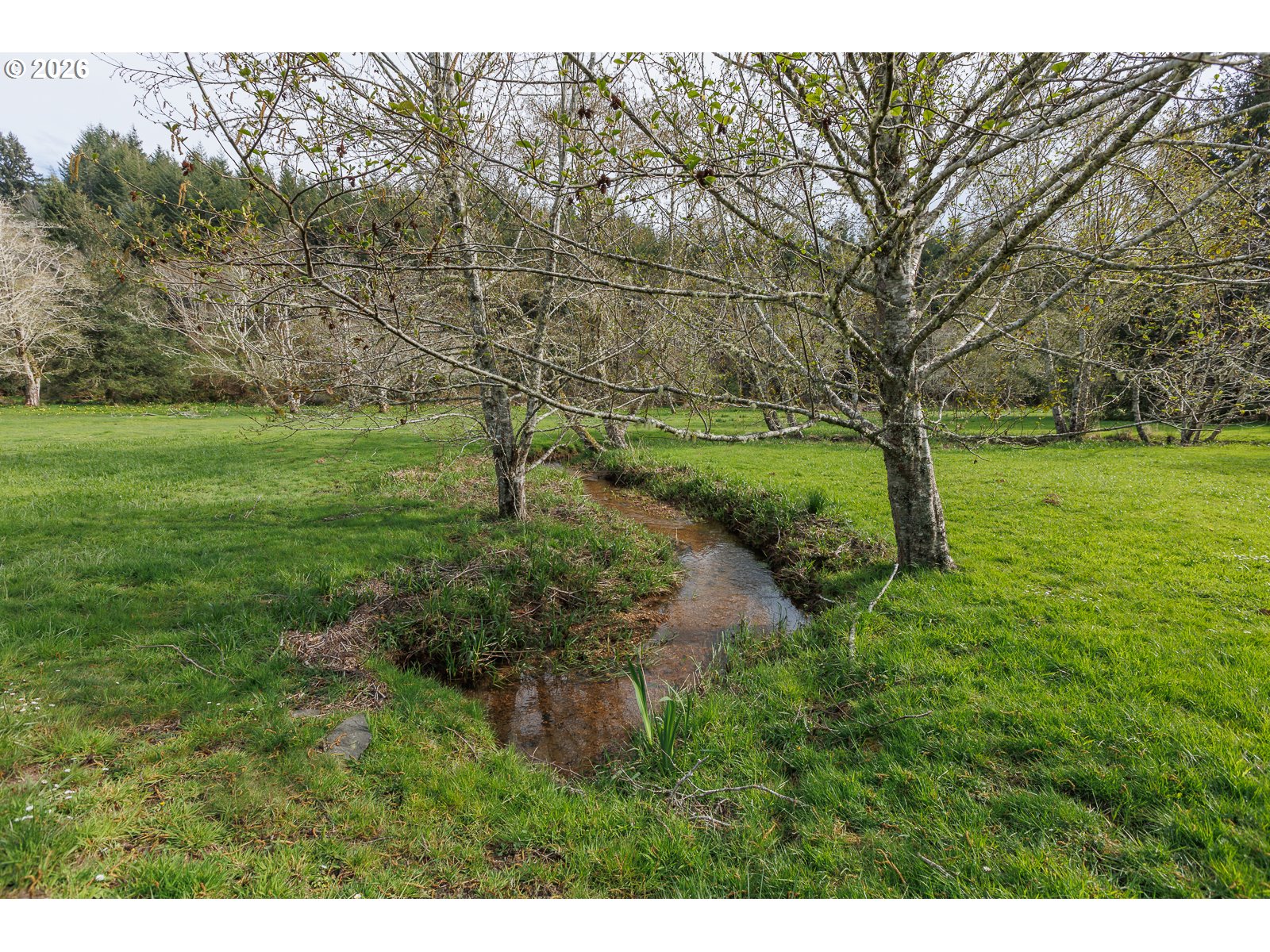 Spacious home with guest quarters on 5.63 serene acres with views of Alsea Bay! Enter this one-of-a-kind property through a private security gate, onto beautiful meadows, over a year-round salmon-spawning stream, and through the woods to the stunning house on the hill. The main house is surrounded by a wrap-around concrete patio with bay views (and hum of the ocean, if you listen closely), an elegant brick courtyard with fountain, and a fully fenced yard. Inside, the chef’s kitchen showcases a large island, black stainless steel GE Profile appliances, built-in refrigerator, and both butler’s traditional pantries. The living room is filled with natural light from a wall of bay view windows, complemented by tray ceilings, built-in shelving and a cozy fireplace. The primary bedroom suite also features bay views, beamed ceilings, fireplace, and walk-in closet. The large primary bath has a garden tub and tiled shower. A spacious den and private office with built-ins provide flexible living space. Above the 2-car garage, a 1008 SF guest quarters or apartment has cathedral ceilings, large windows, and a separate entrance—perfect for guests or multi-generational living. Enjoy diverse wildlife viewing from inside and out, including weekly visits from the resident elk herd. On the Oregon Coast, south-facing acreage properties with water views are a rare commodity. Come view this one today!