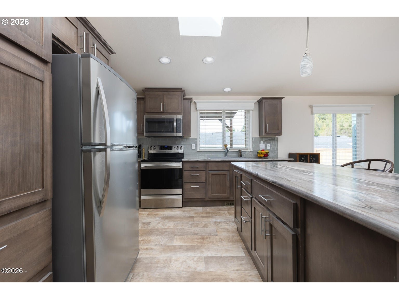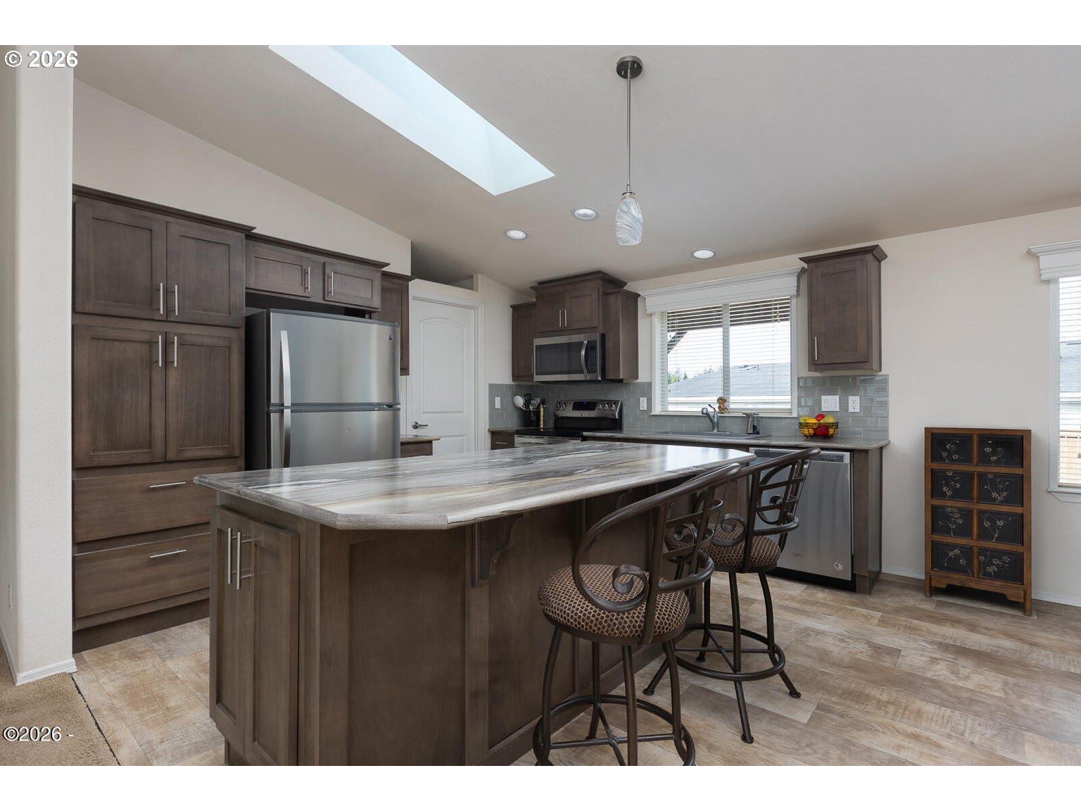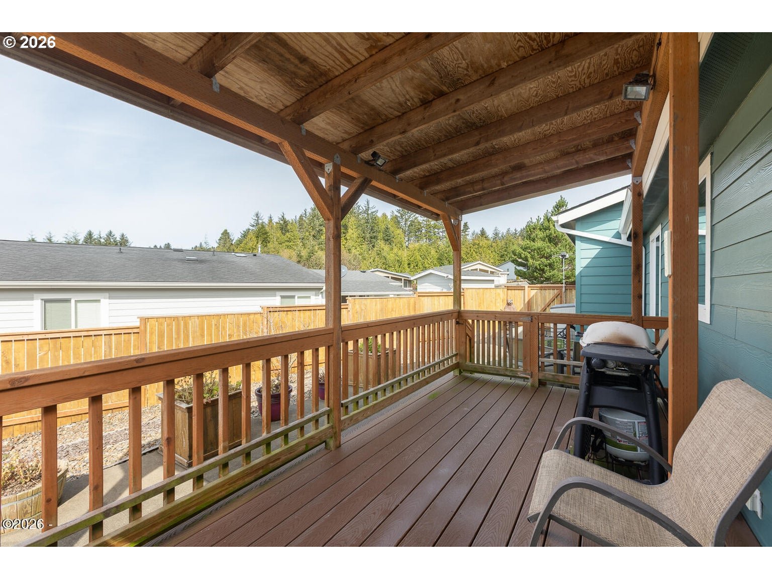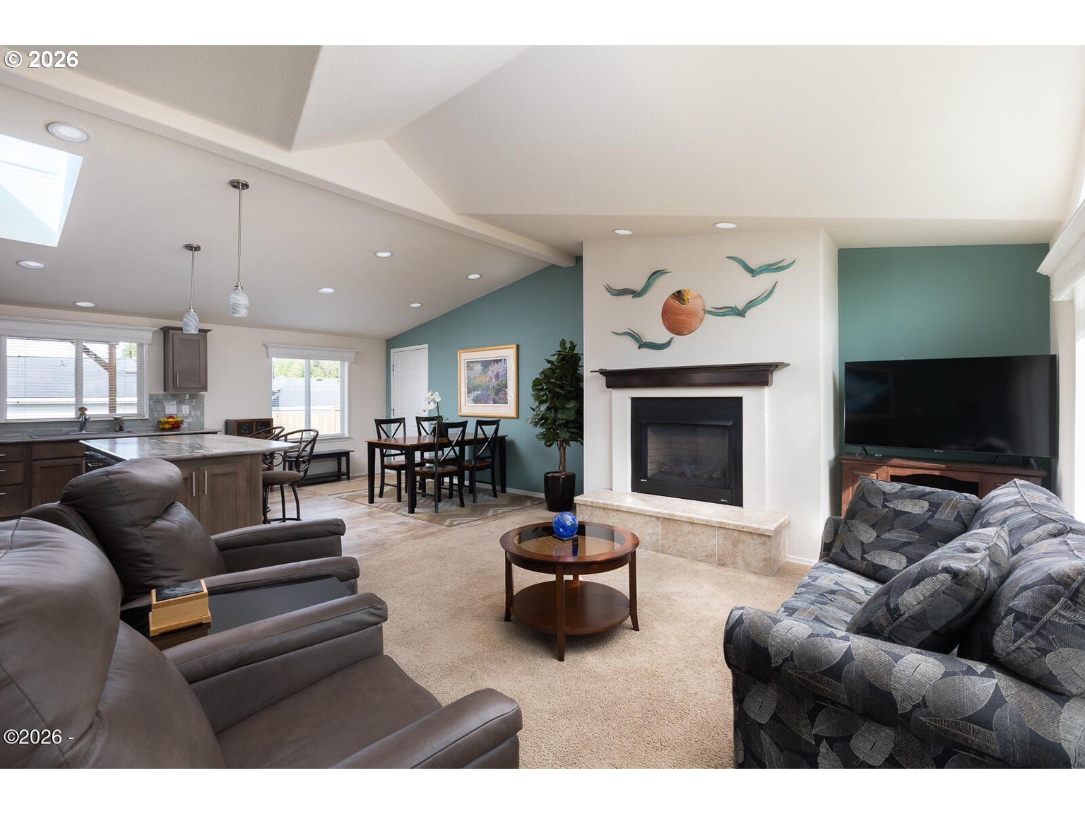 Welcome to this well-maintained and spacious 2-bedroom, 2-bath manufactured home with a dedicated office in the desirable Stonebridge community of Depoe Bay. This move-in ready property blends coastal charm with everyday functionality, offering a comfortable and inviting place to call home. Inside, you'll find vaulted ceilings and skylights that fill the home with natural light, along with a bright, open-concept layout connecting the living, dining, and kitchen areas—perfect for both entertaining and daily living. The large entertainer's kitchen is a standout feature, offering abundant counter space, stainless steel appliances, ample cabinetry, and a functional design ideal for gatherings. The primary suite provides a relaxing retreat with a private ensuite bathroom. A separate office adds flexibility for working from home, hobbies, or additional guest space. Step outside to enjoy the fully fenced, low-maintenance backyard, complete with a spacious covered deck—perfect for year-round outdoor living, entertaining, or simply relaxing in privacy. The attached two-car garage offers convenience and extra storage. Stonebridge is a welcoming community with a charming gazebo, walking paths, and limited RV parking. Located just minutes from downtown Depoe Bay, you'll enjoy easy access to renowned whale watching, local dining, and coastal shops. With low HOA dues, this home is an excellent opportunity to enjoy the Oregon Coast lifestyle.