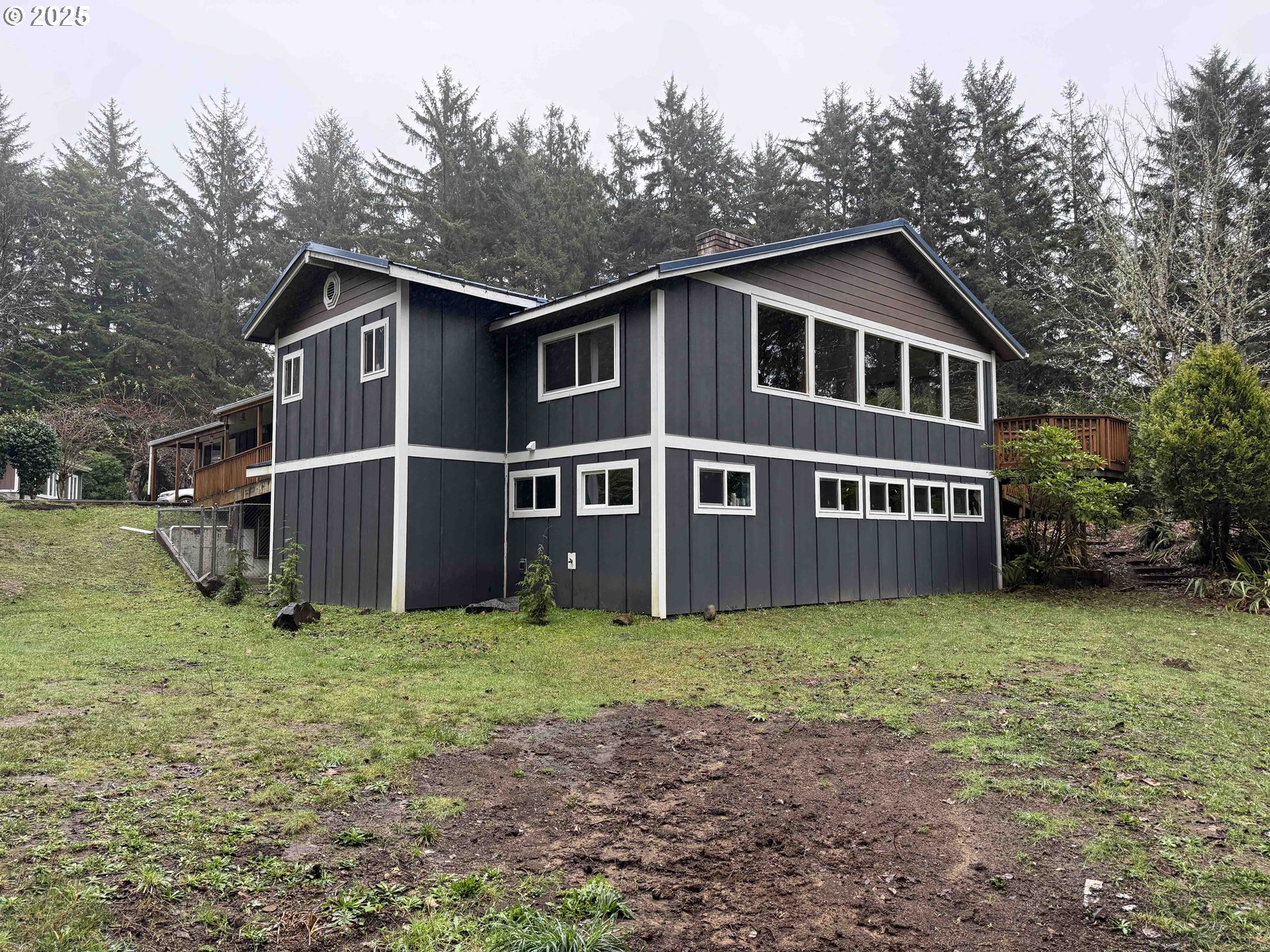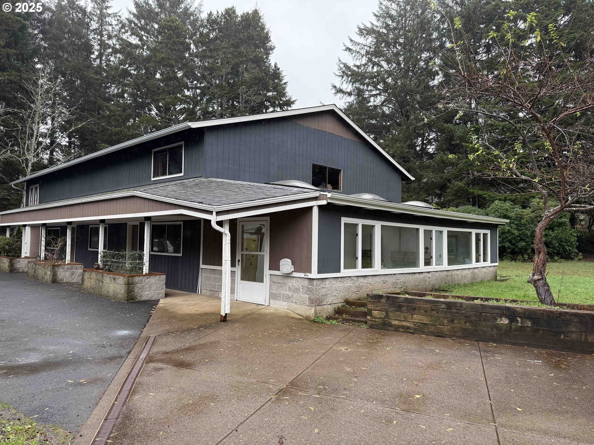 Tucked away on 2.69 serene acres just minutes from the Oregon Coast, this distinctive Newport property offers privacy, versatility, and space to support a wide range of lifestyles. The 3,000 sq ft, two-story home features 4 bedrooms, 2.1 baths, vaulted ceilings, skylights, multiple fireplaces, and flexible living areas including a sunroom, library, and family room.The home is thoughtfully designed with full ADA accessibility throughout. A main-floor primary suite includes an ensuite bath with a roll-in shower, while wide hallways and doorways provide easy movement throughout the home. The kitchen is equipped with accessible counters, built-in storage, and appliances. An elevator connects the main level to the lower level, where you’ll find the laundry room, additional bedrooms, and potential caregiver quarters with exterior access. Also on the lower level is a full wet room featuring a jetted spa with a ceiling-mounted lift for ease of use.Outdoor living is equally well considered, with a wood deck, multiple outdoor sitting areas, two dog runs with access to the home and garage (one with a heated floor), an outdoor shower, and a bathroom located off the partly heated garage.Beyond the home, the property truly shines with a 4,320 sq ft workshop on its own septic system, complete with a loft, and bathroom. Both 220V and 110V power support hobbies, creative pursuits, or business use. The open upper level is filled with natural light from multiple skylights and vinyl double-pane windows. An attached 500 sq ft greenhouse supports year-round gardening, complemented by raised beds and several established fruit trees.RV and boat parking, along with a second garage, complete this exceptionally flexible property.Peaceful and secluded, with on-property walking trails and a creek, all located less than a quarter mile from the ocean, this is a rare opportunity to own acreage, functionality, and coastal proximity that combine to make one remarkable offering.