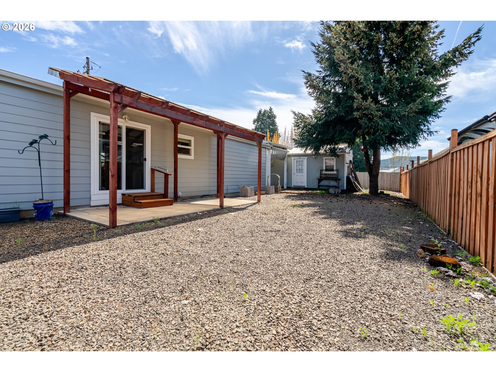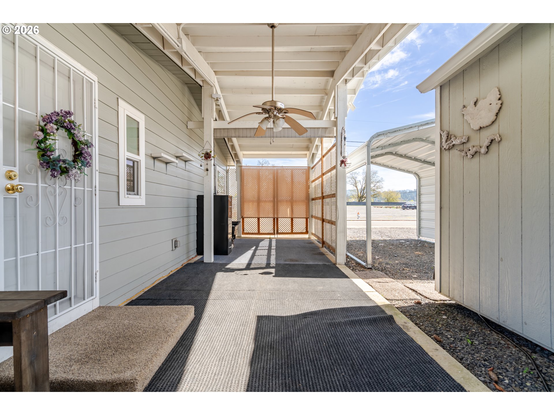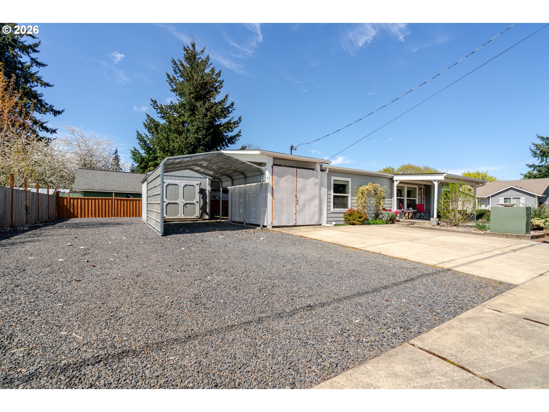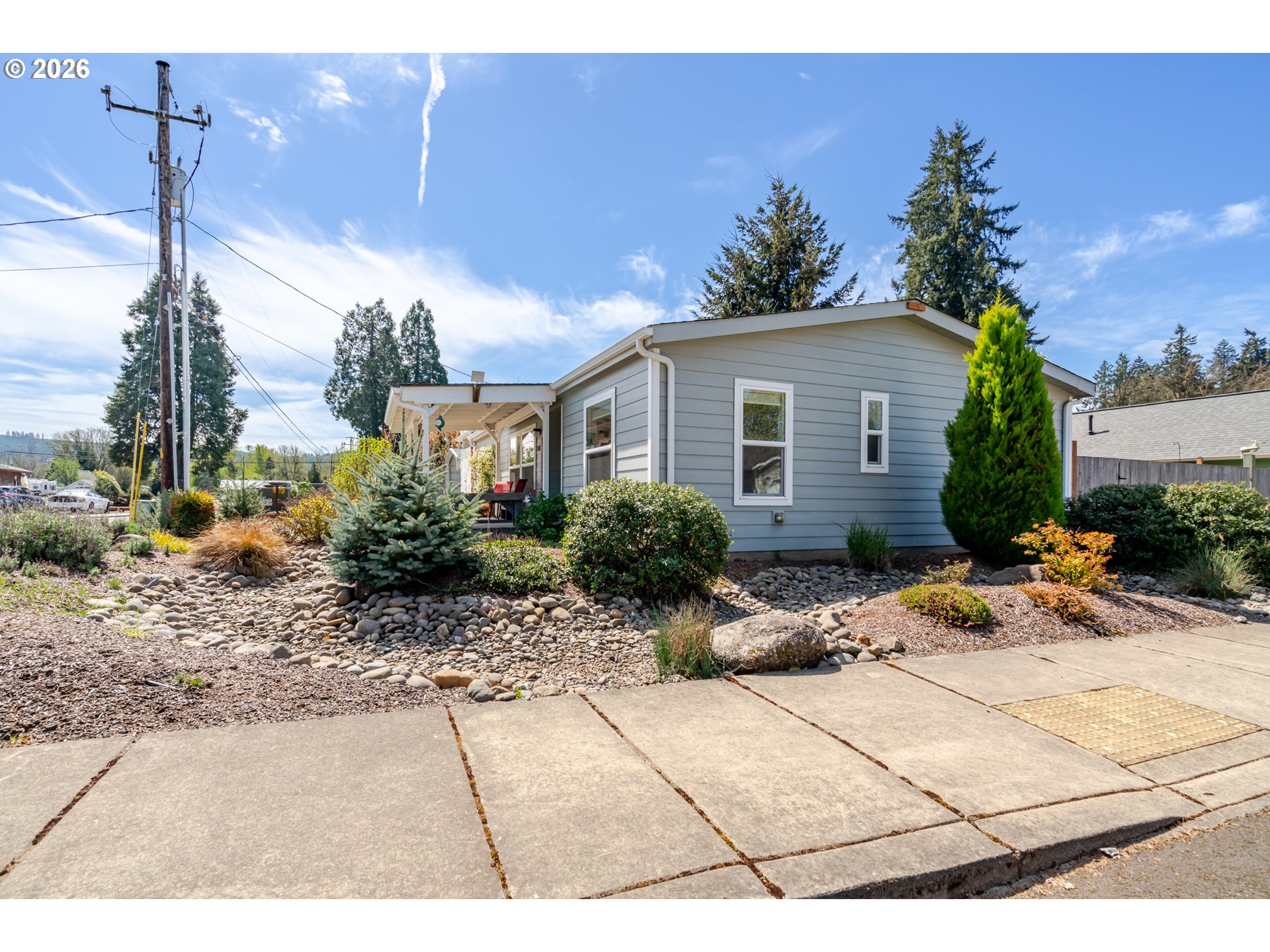 Super cute light and bright beautifully maintained single level manufactured home on the outskirts of Sweet Home. Great floor plan with a central living space, dining room & kitchen. Primary suite on one side, and two bedrooms on the other. 3 covered spaces outside and a great little workshop/shed for storage and tinkering. Beautiful, low maintenance stream bed front yard with complete drip system. 2 separate areas can be used to park RV's or other toys. Easy walking distance to a local restaurant, too!
