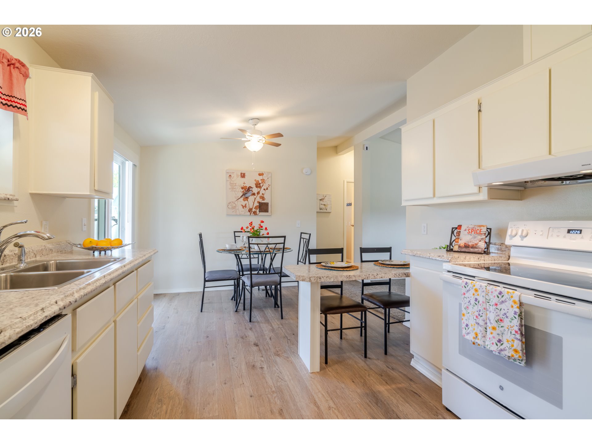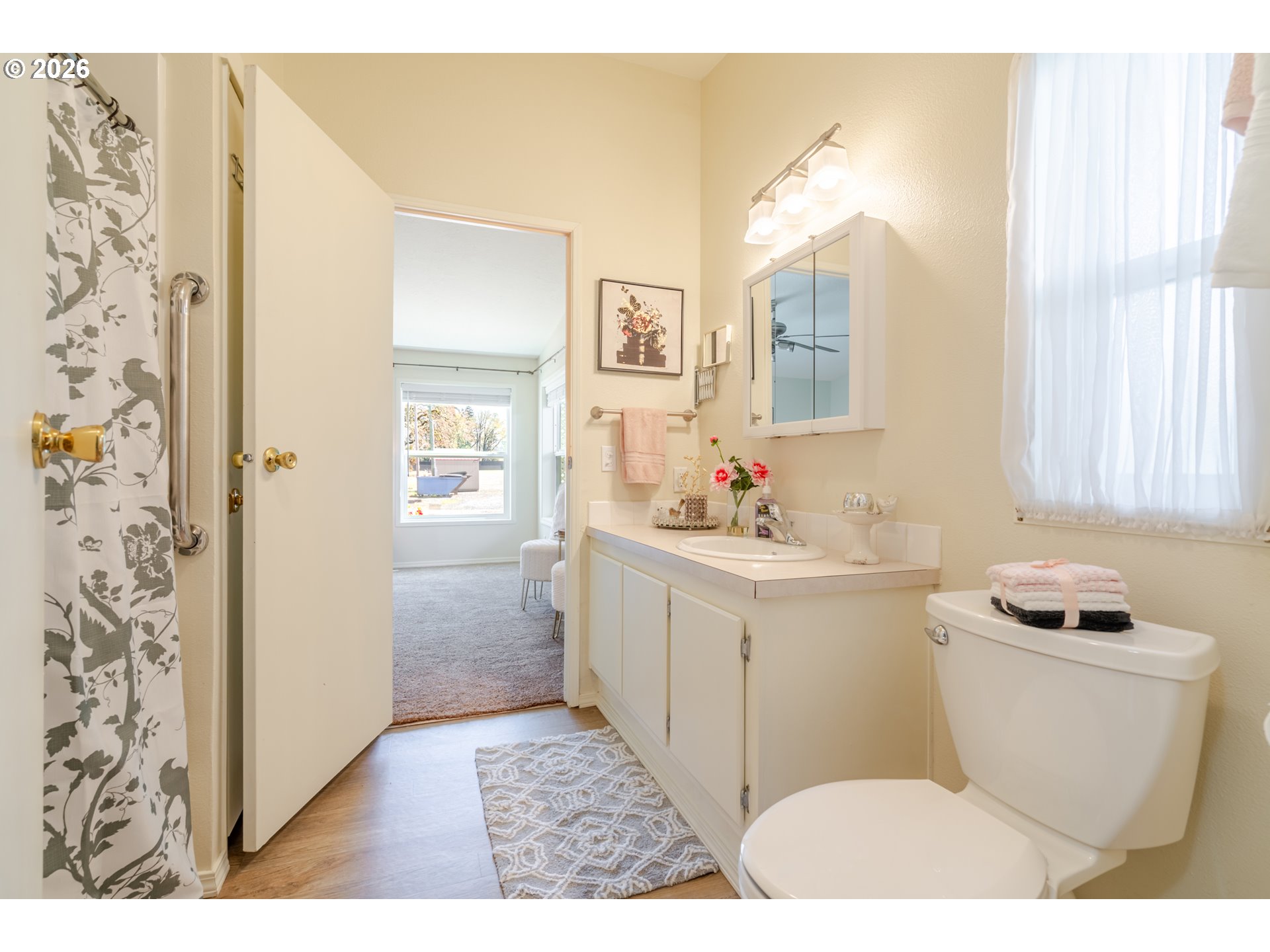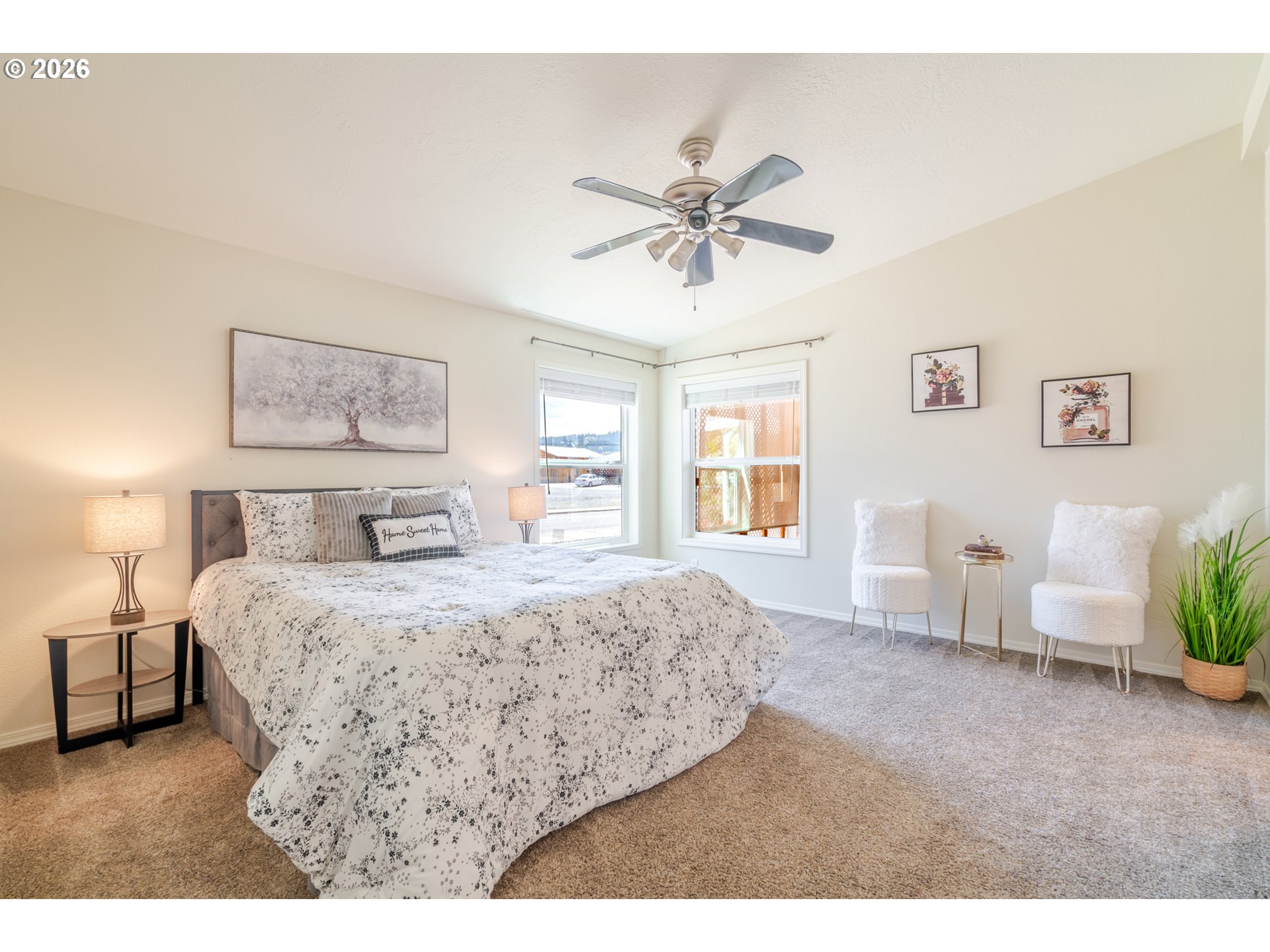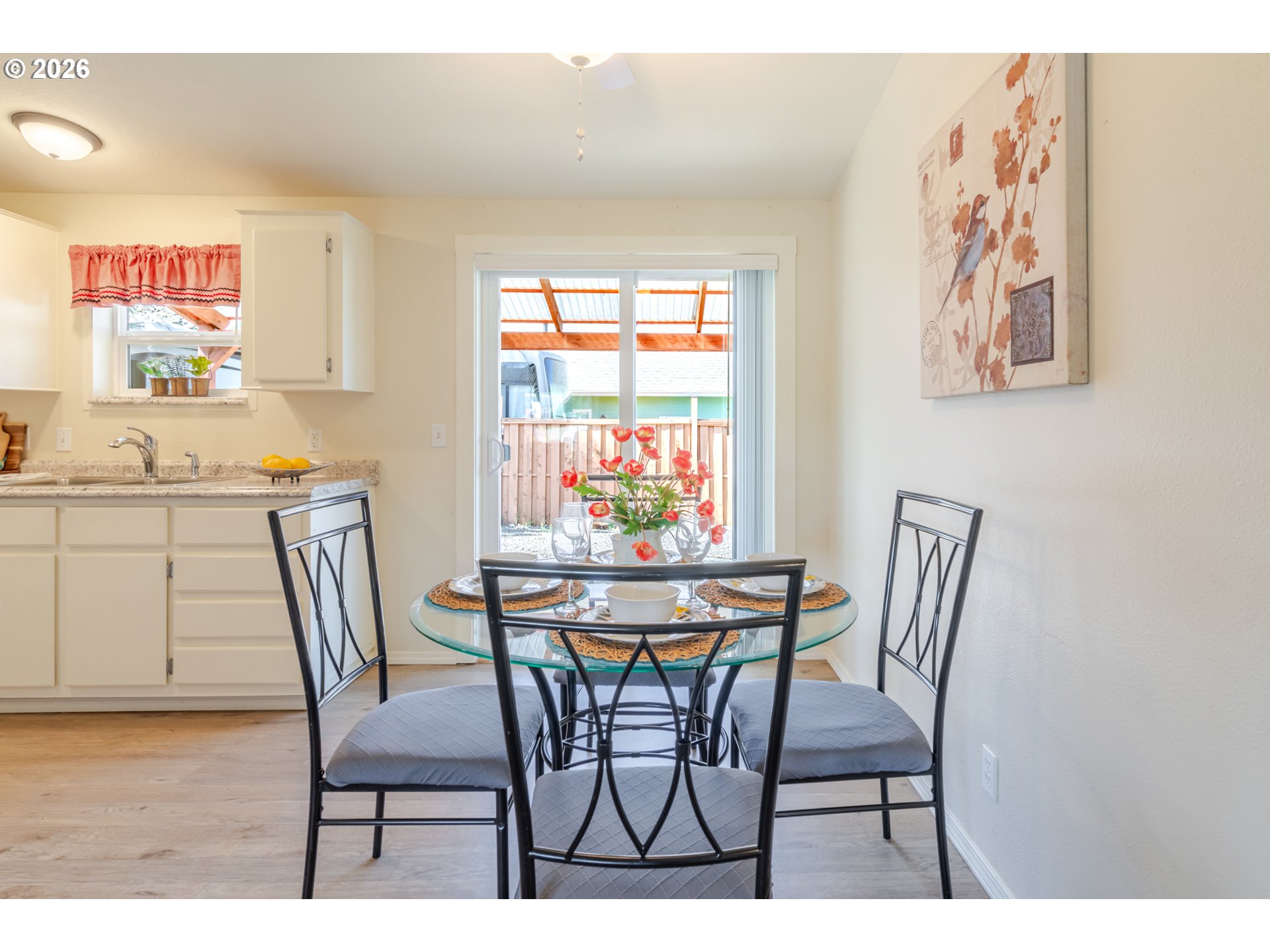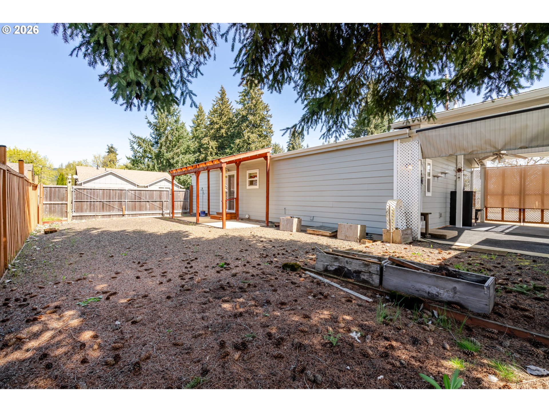 Super cute light and bright beautifully maintained single level manufactured home on the outskirts of Sweet Home. Great floor plan with a central living space, dining room & kitchen. Primary suite on one side, and two bedrooms on the other. 3 covered spaces outside and a great little workshop/shed for storage and tinkering. Beautiful, low maintenance stream bed front yard with complete drip system. 2 separate areas can be used to park RV's or other toys. Easy walking distance to a local restaurant, too!