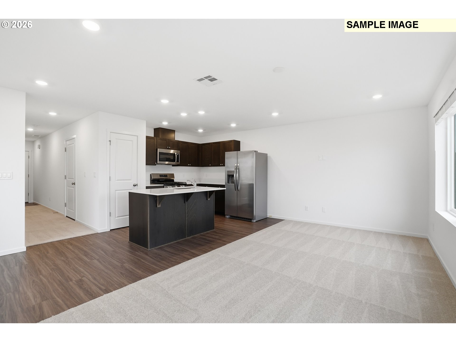 Welcome home to this charming duet-style home in Albany, thoughtfully designed for comfort, style, and easy living. The main level features an open layout that makes both everyday living and entertaining effortless. Natural light fills the living and dining spaces, creating a warm and welcoming atmosphere that flows seamlessly into the kitchen. The kitchen is beautifully appointed with quartz countertops, classic shaker-style cabinetry, and a full suite of stainless steel appliances—including refrigerator, range, microwave, and dishwasher—making it both stylish and functional for daily cooking. Durable luxury vinyl plank flooring on the main level adds a modern touch while providing easy maintenance. Upstairs, three bedrooms provide a peaceful retreat from the main living areas. The spacious owner’s suite offers a relaxing place to unwind, complete with a walk-in closet and a private bathroom featuring quartz countertops and a walk-in shower. Plush carpeting throughout the upper level adds comfort and warmth. A standout feature of this home is the versatile third-floor bonus room—perfect for a home office, media room, hobby or playroom—giving you the flexibility to create a space that fits your lifestyle. Added conveniences include a washer, dryer, and window blinds, helping make move-in day that much easier. Step outside to enjoy the private patio, ideal for morning coffee or quiet evenings outdoors. A single-bay attached garage completes the home, offering convenience and additional storage. With modern finishes, thoughtful design, and a flexible layout, this Albany home is one you won’t want to miss. Complete Spring 2026. Homesite 138. *Flex credit/closing cost incentive available when financing with preferred lender! Use towards rate buydown and closing costs.*