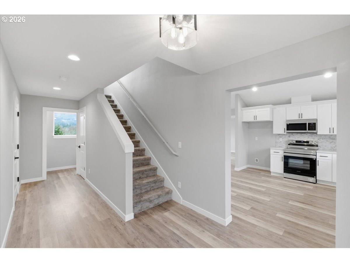 Experience brand-new construction with no HOA in Sweet Home, offering sweeping unobstructed views of the forest, mountains, and river. This beautiful home features 3 bedrooms and 2.5 bathrooms, including a master bath with a modern tile shower, a modern kitchen with stainless steel appliances, and mini split HVAC systems. Located just 2 miles from Foster Reservoir, enjoy endless summer activities including boating, fishing, and swimming. Designed for comfort and style, this home combines energy-efficient systems, open living spaces, and serene natural surroundings.