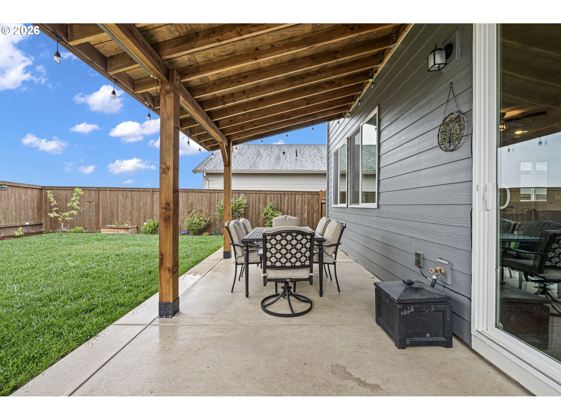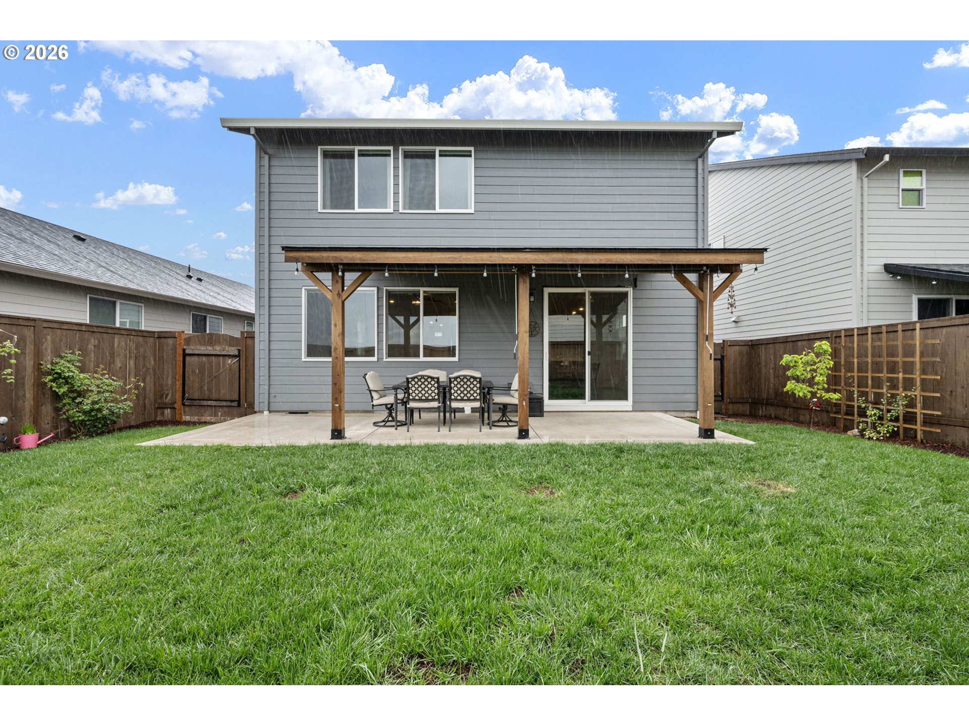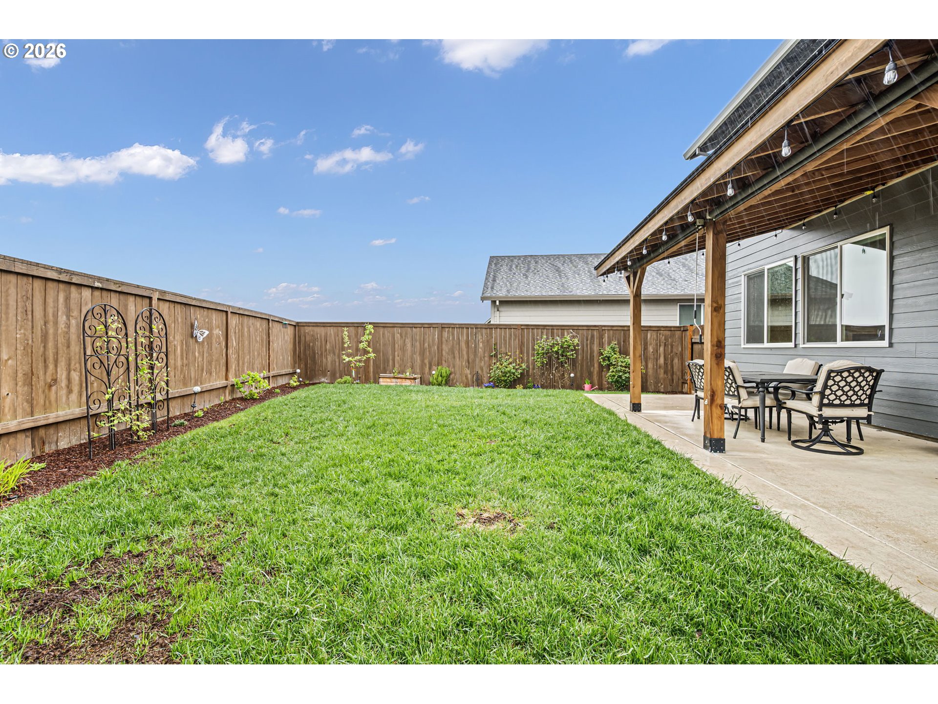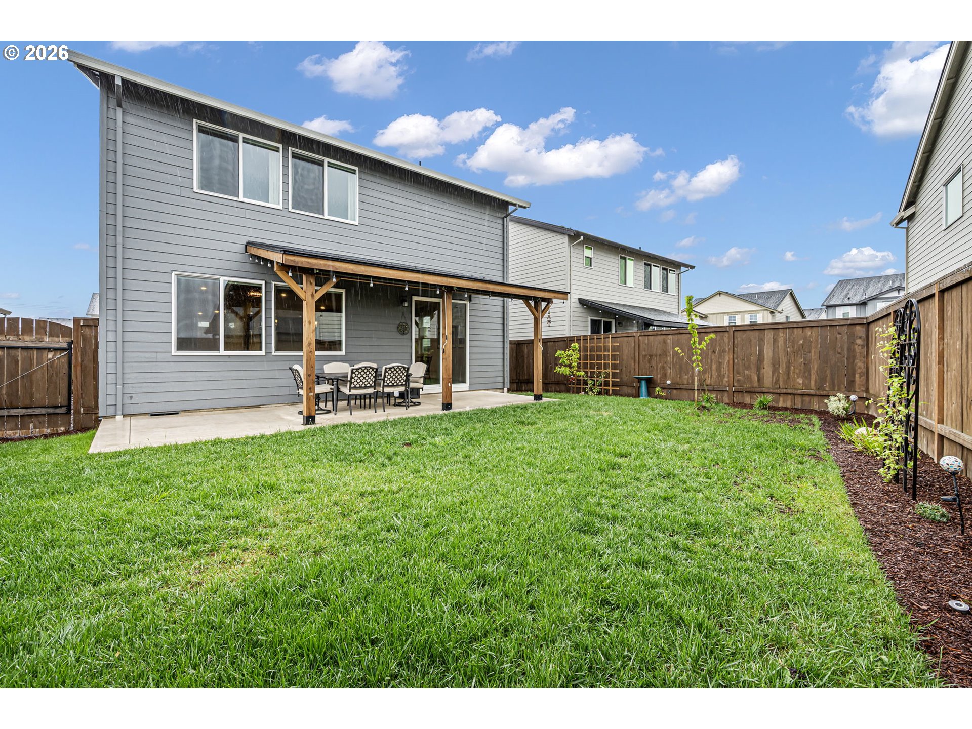 Why wait for new construction when you can have this? This spacious 4 bed, 2.5 bath home offers modern comfort with thoughtful upgrades throughout. The open layout features upgraded LVP flooring, quartz counters throughout, stainless steel gas appliances, and abundant natural light. Enjoy year-round comfort with A/C, gas furnace, and tankless water heater. The primary suite offers a peaceful retreat where you can take in beautiful sunset views. Step outside to a beautifully finished backyard complete with a custom extended covered patio featuring redwood posts, sunshades, and composition roofing. You'll also find fruit trees, a dog run and underground sprinklers. Located on a quiet dead-end road with city-owned land behind the home and no plans to build, offering added privacy and peace of mind.