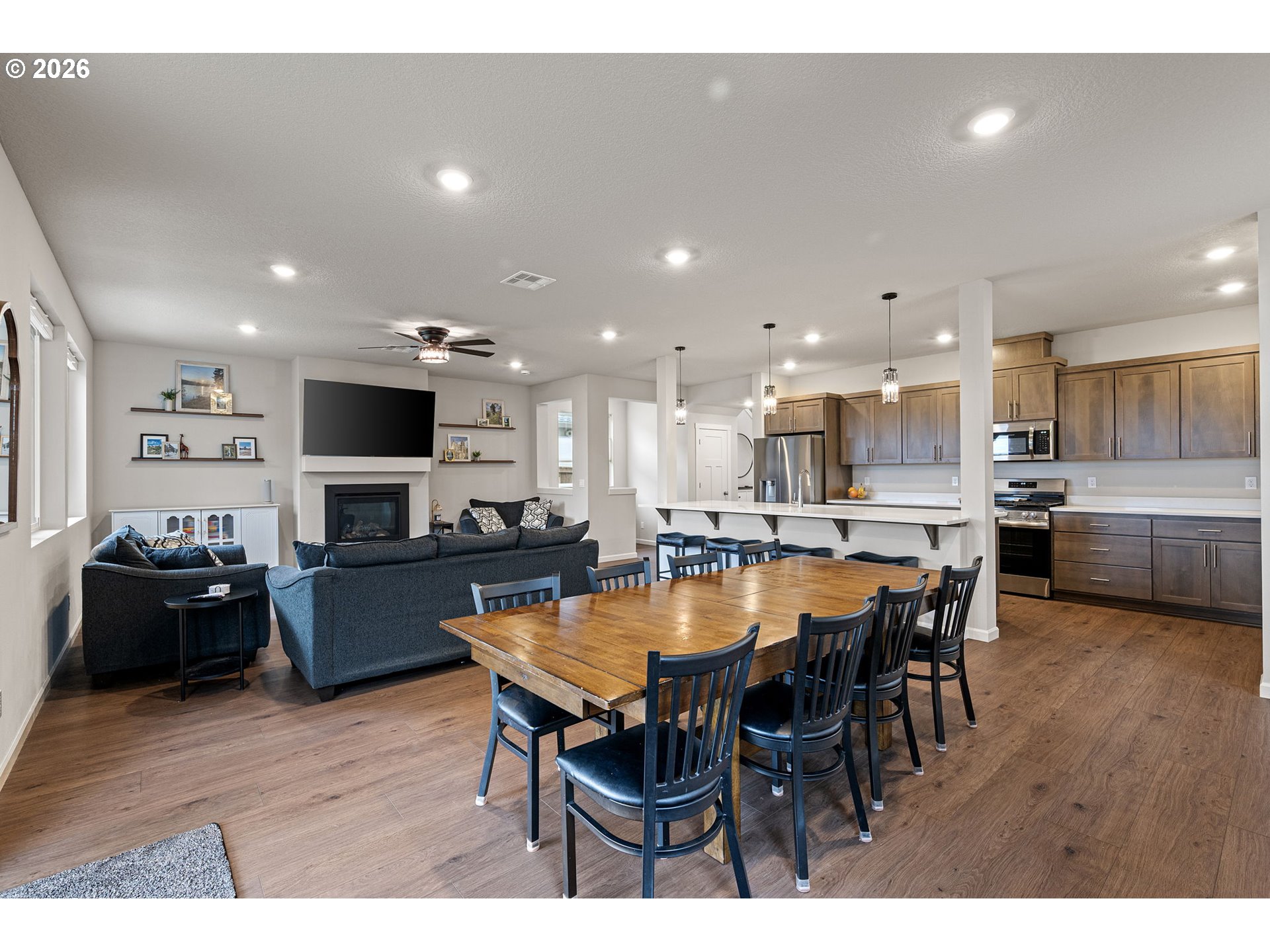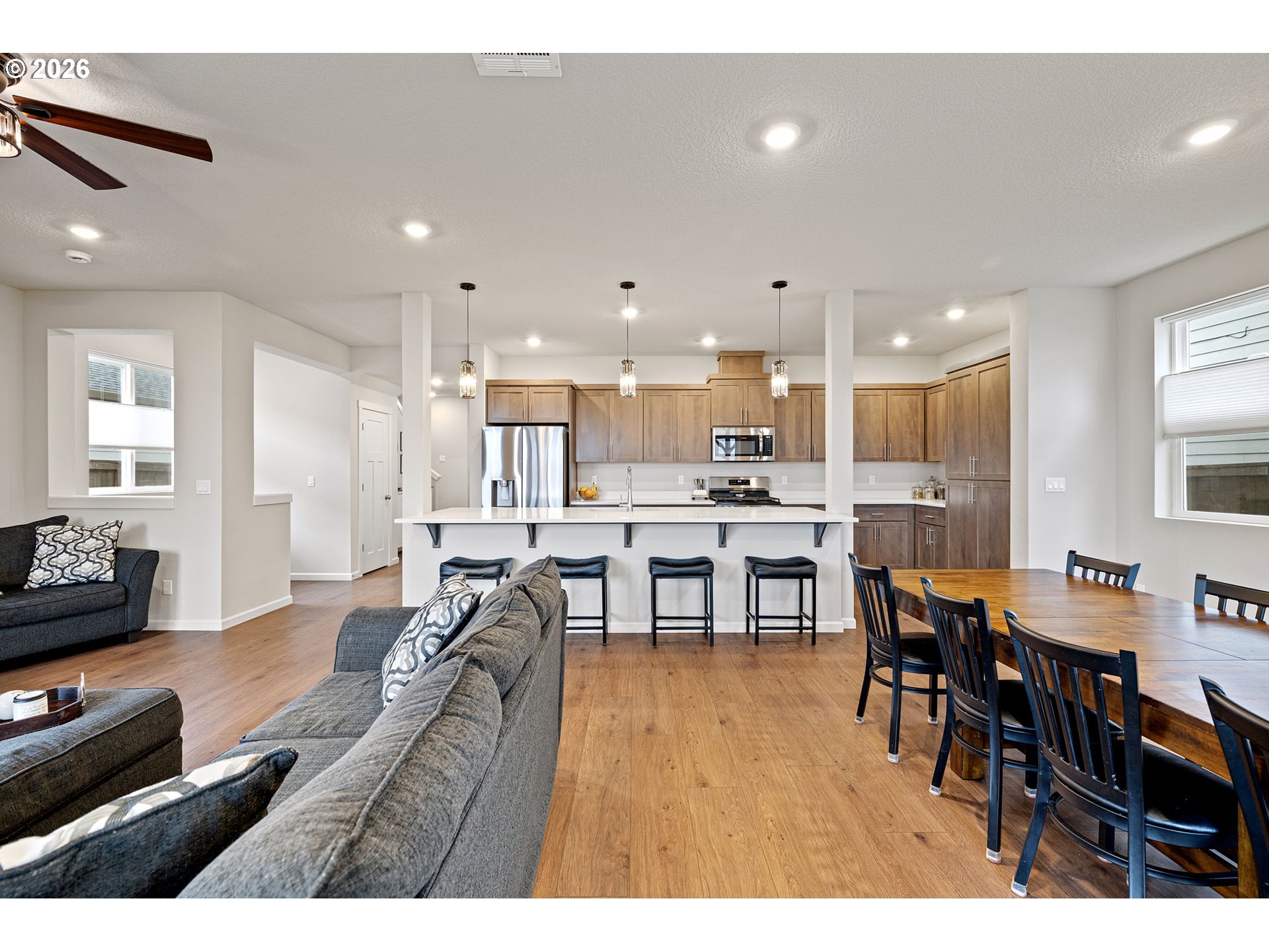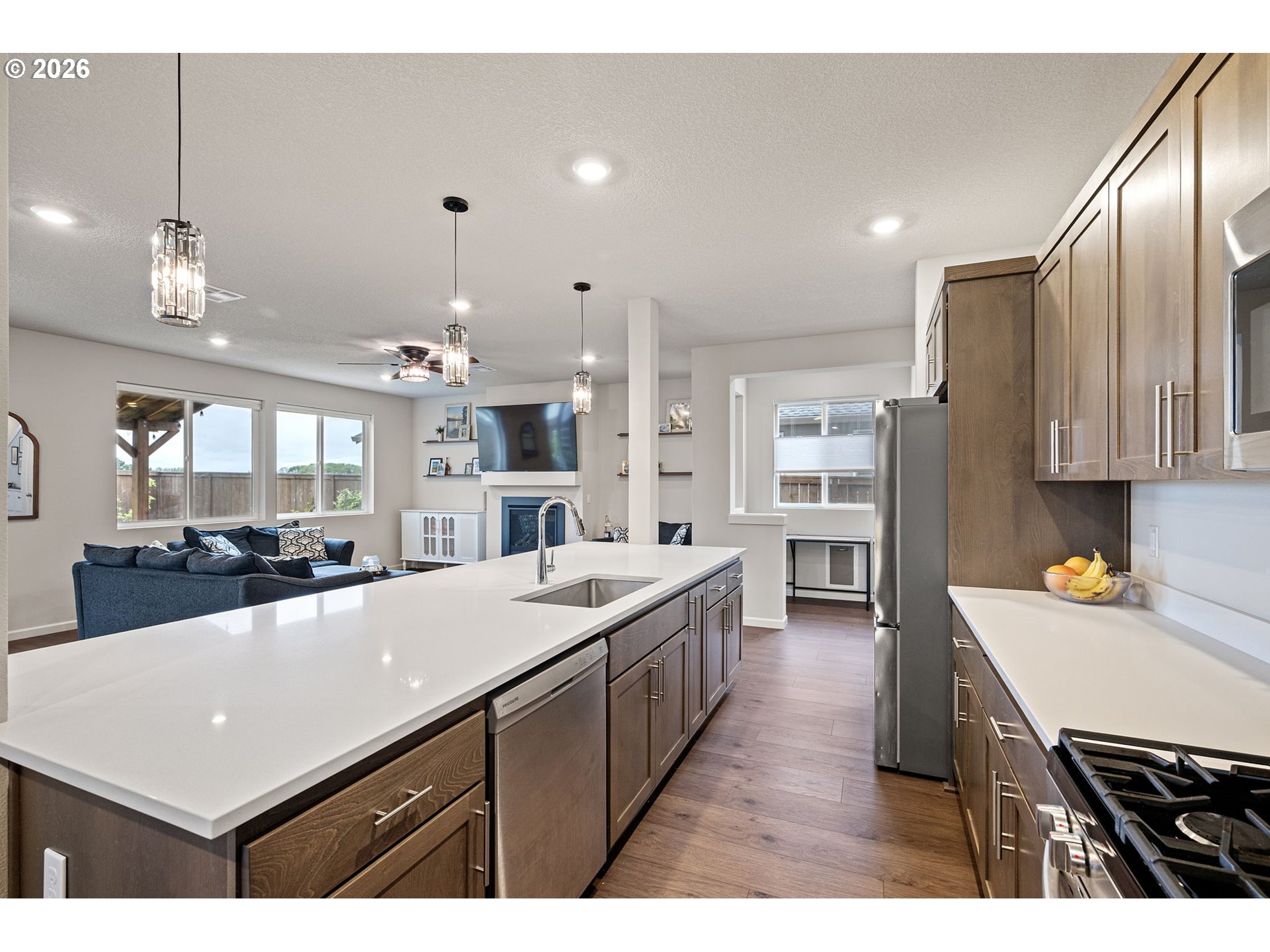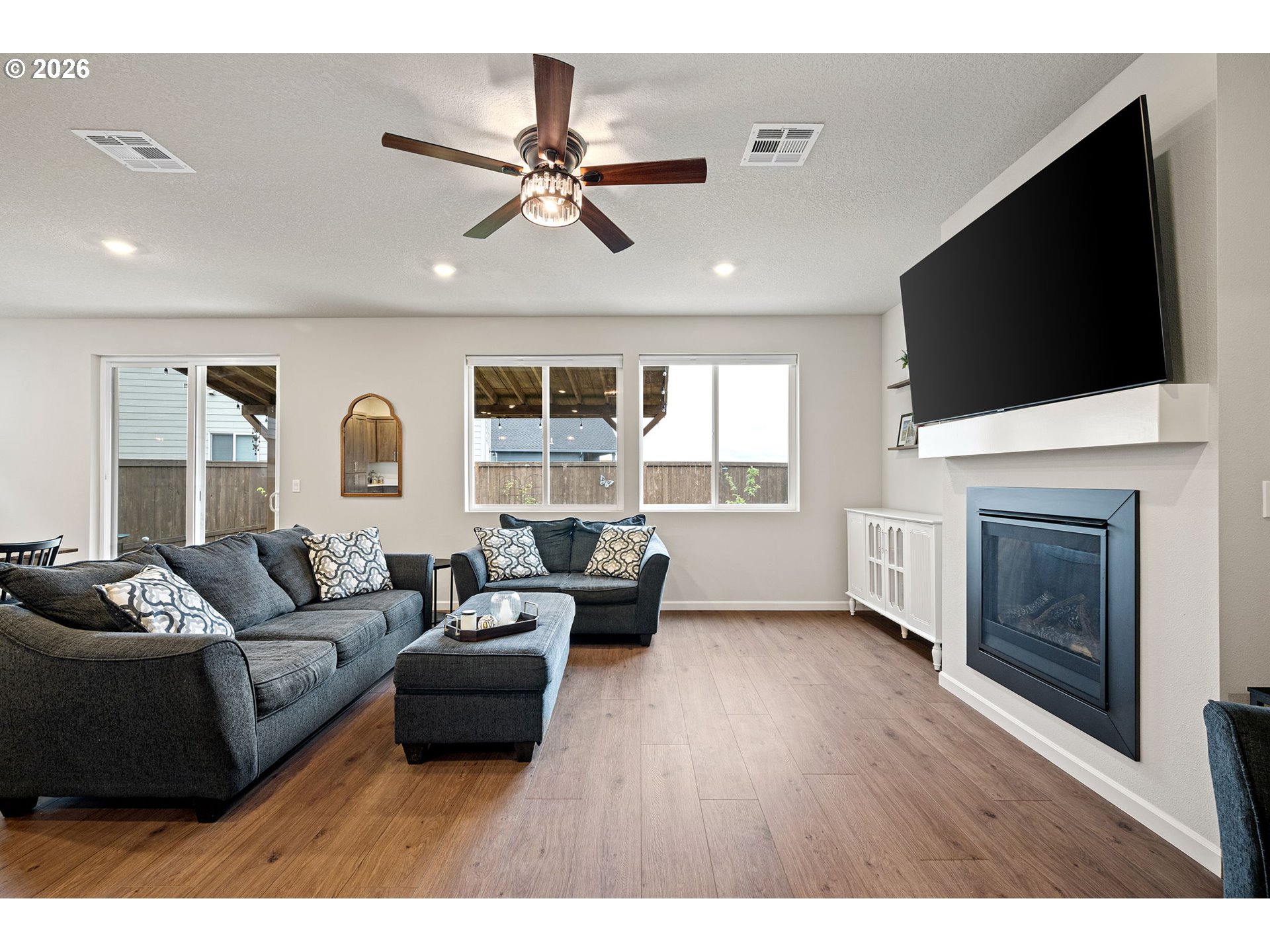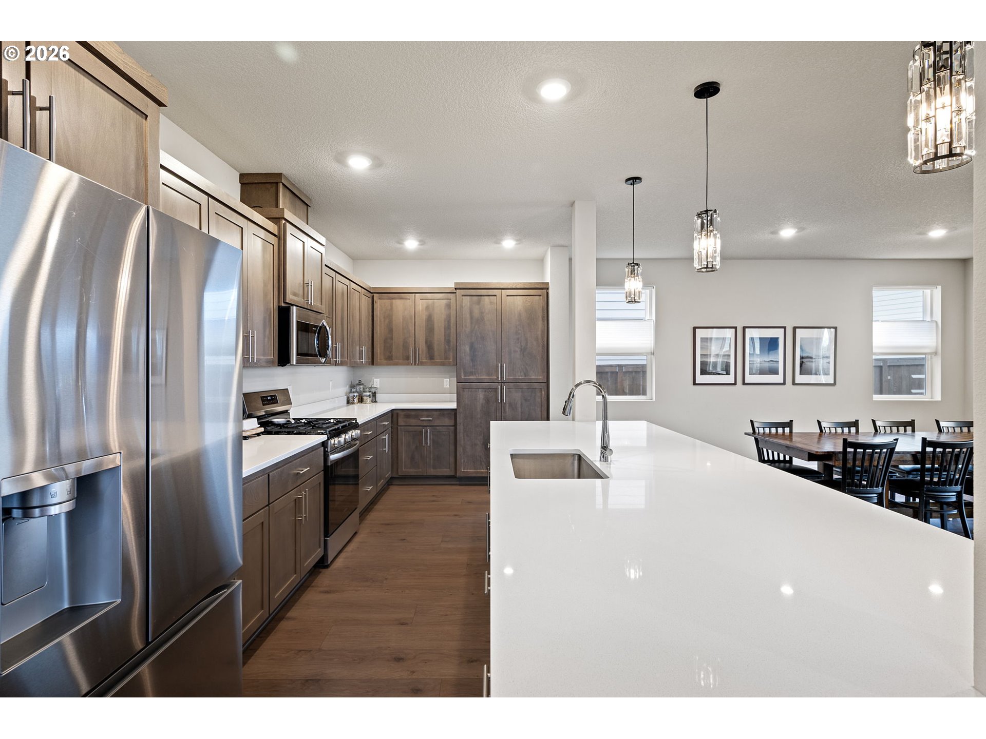 Why wait for new construction when you can have this? This spacious 4 bed, 2.5 bath home offers modern comfort with thoughtful upgrades throughout. The open layout features upgraded LVP flooring, quartz counters throughout, stainless steel gas appliances, and abundant natural light. Enjoy year-round comfort with A/C, gas furnace, and tankless water heater. The primary suite offers a peaceful retreat where you can take in beautiful sunset views. Step outside to a beautifully finished backyard complete with a custom extended covered patio featuring redwood posts, sunshades, and composition roofing. You'll also find fruit trees, a dog run and underground sprinklers. Located on a quiet dead-end road with city-owned land behind the home and no plans to build, offering added privacy and peace of mind.