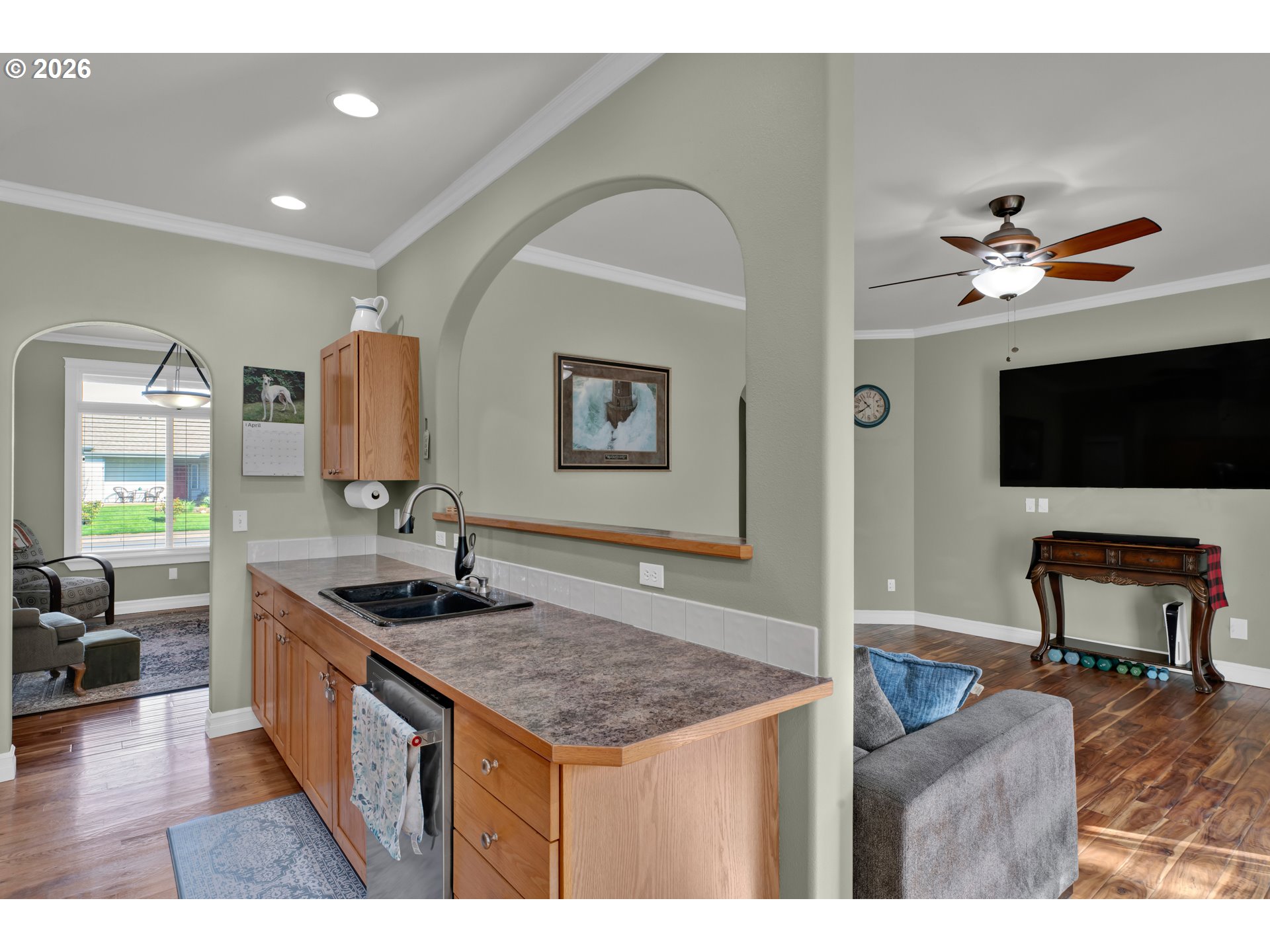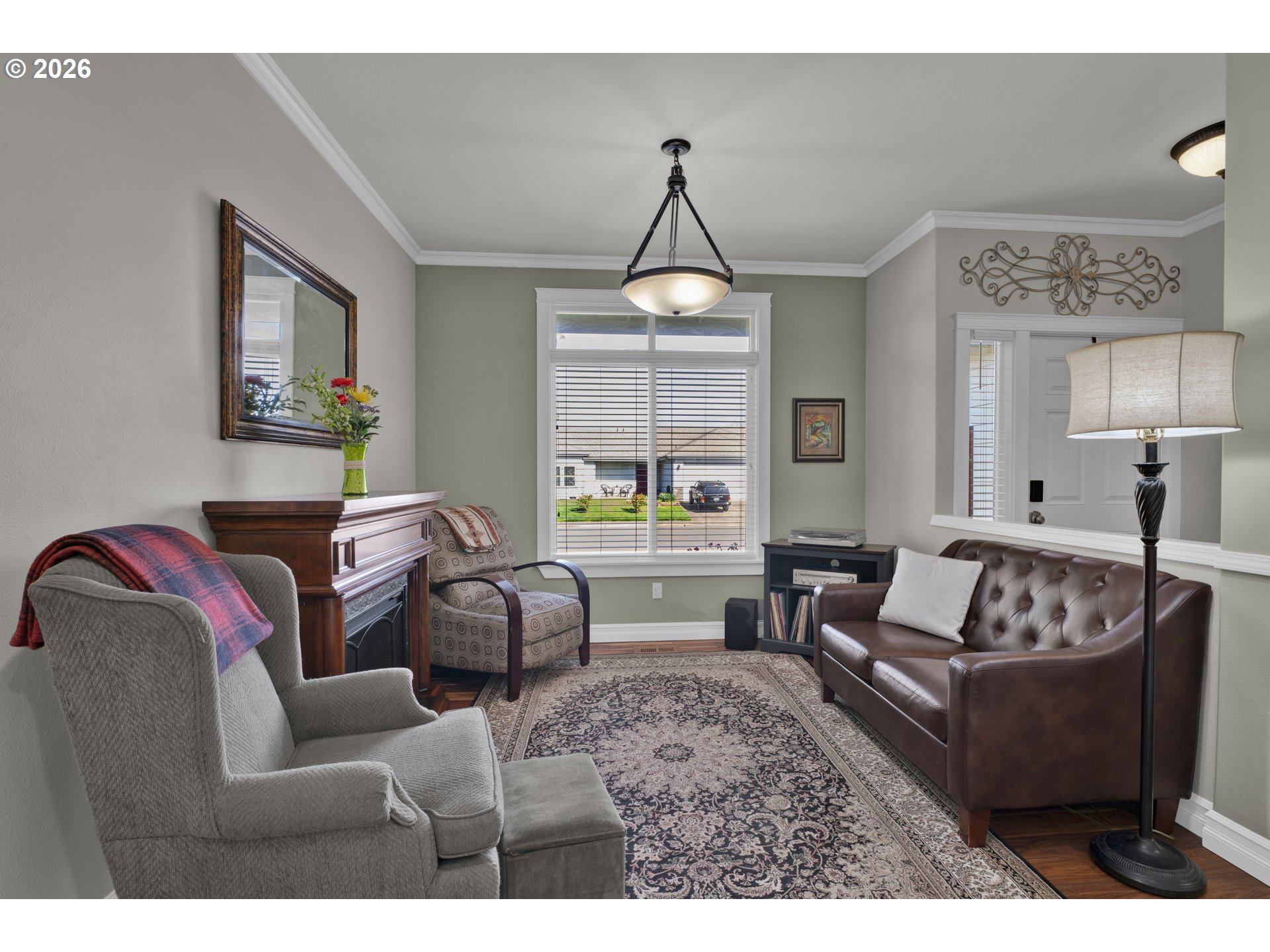 Tucked in SW Albany, this 1,487sf single-level 3bd/2ba by Schneider Homes offers a vaulted great room, gas FP & crown moulding. Split bedroom plan w/private primary suite - 2 BRs on opposite side of house. Kitchen features abundant cabinets, built-in desk, bkfst nook & a formal dining/sitting room. Mud/utility rm off a 3-car garage that features overhead storage. Fenced yard w/lg patio, shed, UG sprinklers & easy-care landscaping. Less than 1 block to park; easy commute to Lebanon, Corvallis & Interstate 5.