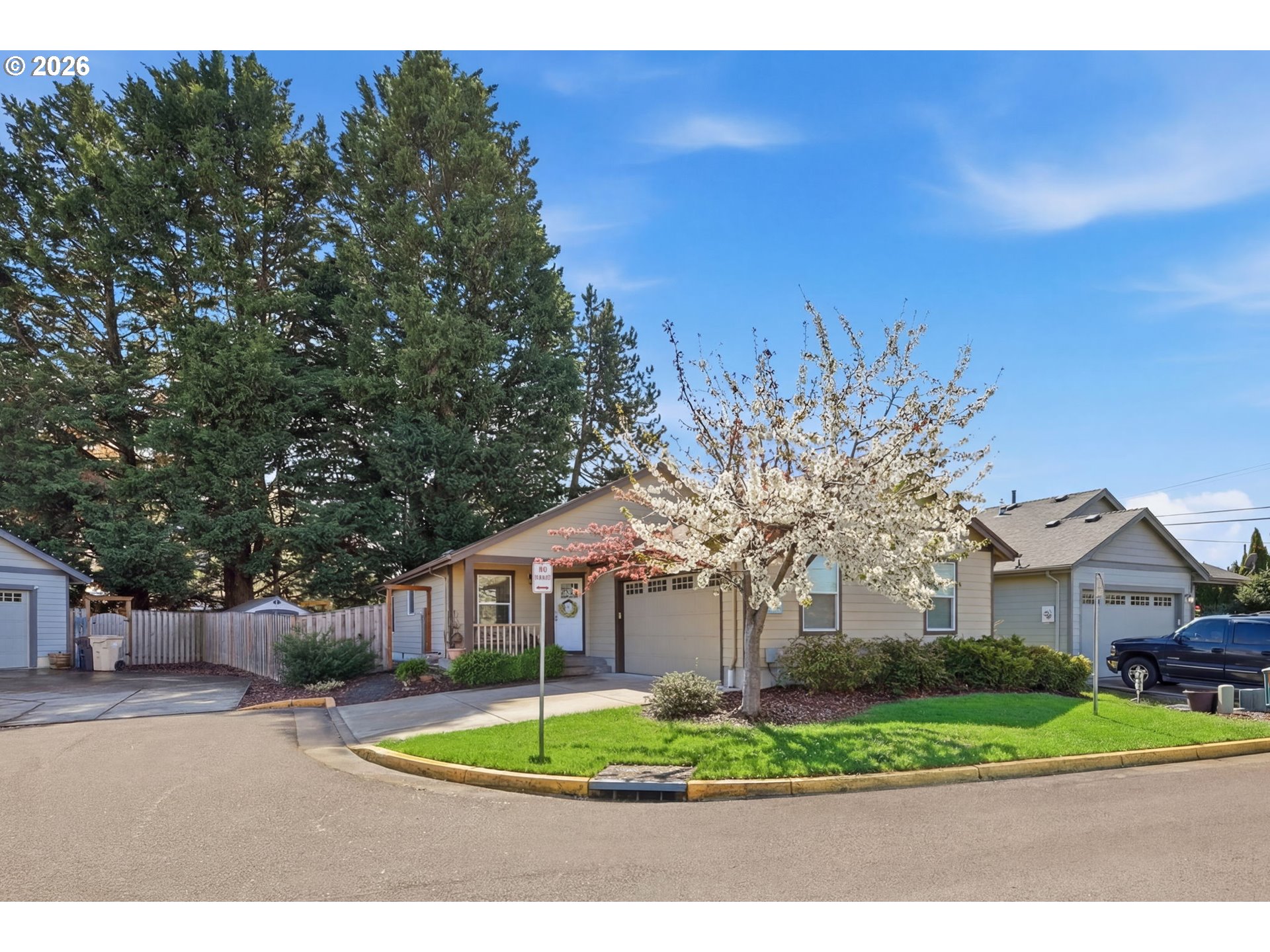 Welcome to this beautifully maintained single-level home tucked into a quiet neighborhood on a desirable corner lot. Featuring an open-concept layout, the light-filled living space flows seamlessly into the dining area and kitchen—perfect for both everyday living and entertaining. The home offers comfortable living with thoughtful updates, abundant natural light, and a warm, inviting feel throughout.Step outside to a private backyard retreat with mature trees, a patio area ideal for outdoor dining, and space to create your own garden or cozy outdoor oasis. Conveniently located near parks, shopping, and local amenities, this home offers the perfect balance of comfort, simplicity, and potential.