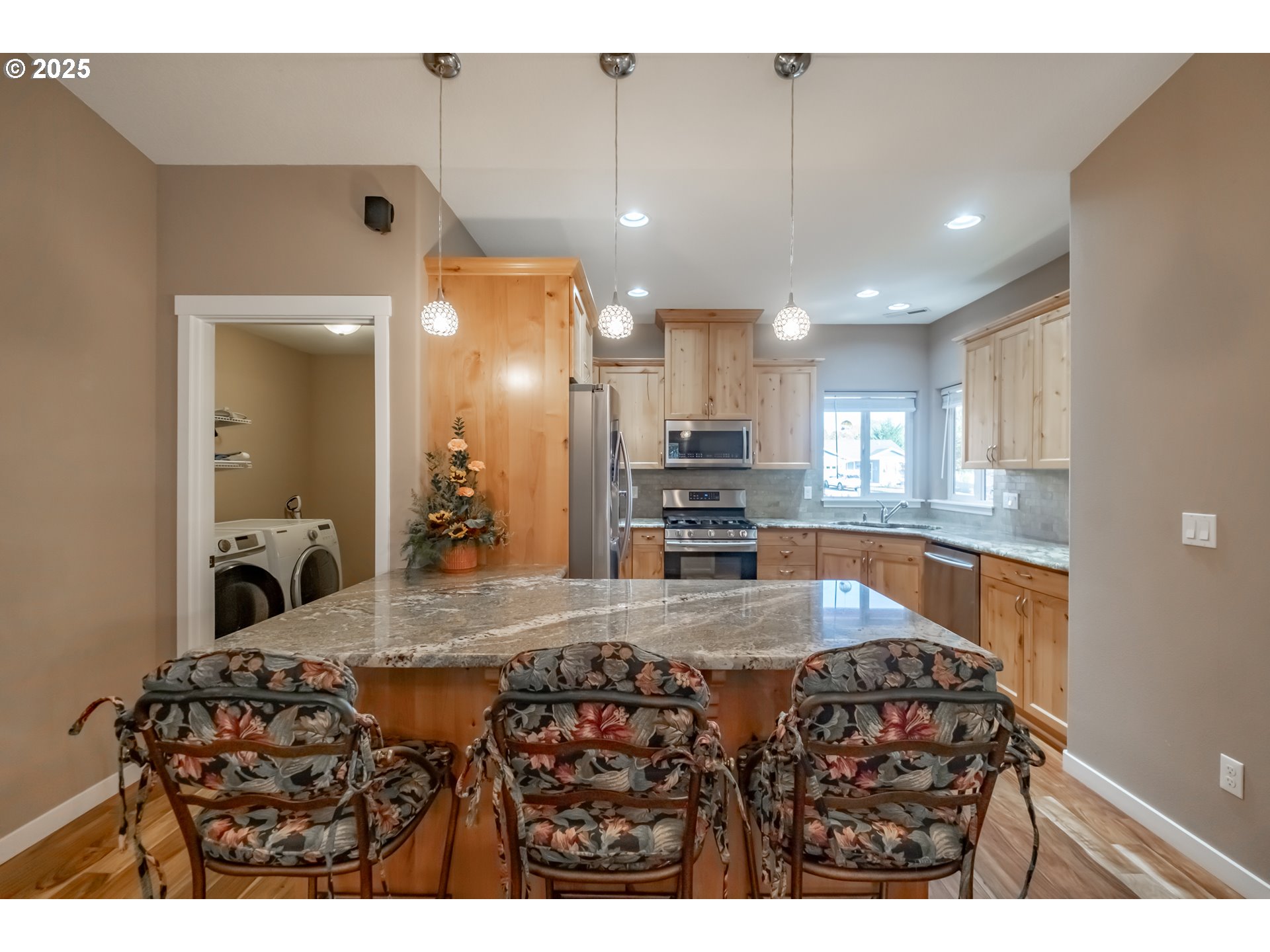 Wonderfully-maintained 3 bed, 2 bath home in a fantastic neighborhood. Built in 2015, home offers Hardi-plank siding with stone accents. Inside features hardwood and tile floors, stunning hickory cabinets, granite counters, a cozy up-bar area, & stainless steel appliances. The spacious primary suite offers a large walk-in closet, & separation from 2guest beds on opposite side. Enjoy the covered patio plumbed for a gas BBQ, fenced yard, & concrete RV pad—perfect for comfortable living and entertaining.