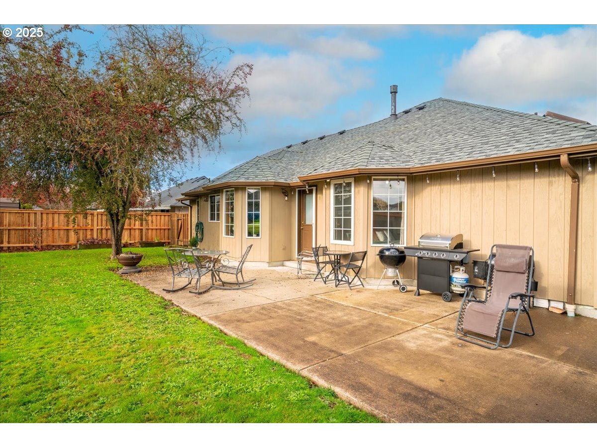 Welcome to 3248 18th Ave SE in Albany—a wonderfully maintained single-level home in a highly desirable neighborhood just minutes from Lehigh Park and I-5 access. This home offers a comfortable and functional layout with two spacious living areas, abundant natural light, and a cozy gas fireplace that warms the main gathering space. The kitchen provides generous counter space and plenty of storage, including a custom pantry cupboard. The primary suite includes a convenient walk-in shower, and the home also features a dedicated laundry room, gas water heater, and forced heating and cooling for year-round comfort. Outside, enjoy a well-manicured fenced backyard with a large patio—ideal for entertaining, gardening, or relaxing. Additional side parking offers flexibility for extra vehicles, equipment, or toys. With its thoughtful features, inviting layout, and prime location, this home is move-in ready and a fantastic find!