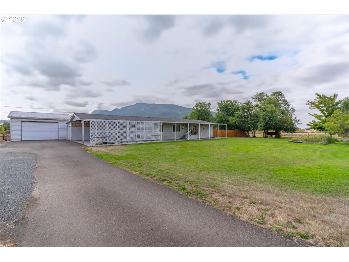 Just Listed! This 39-acre Farm! 35 acres Water Rights! 2 high-producing Wells. Underground irrigation. Courtney/Holcomb Loam soil. Outbuildings include a 2,520 sq' loft Barn with 1,080 sq' Lean-to, a 1,080 sq' Shop, and a detached 576 sq' Garage. The 4-Bed, 2-Bath manufactured Home Offers a smart floor plan, Heat Pump, 840 sq' Carport, and scenic mountain views. Horses, Cows, Goats, Pigs, Grass Seed... whatever your farm is.. Let's Farm!