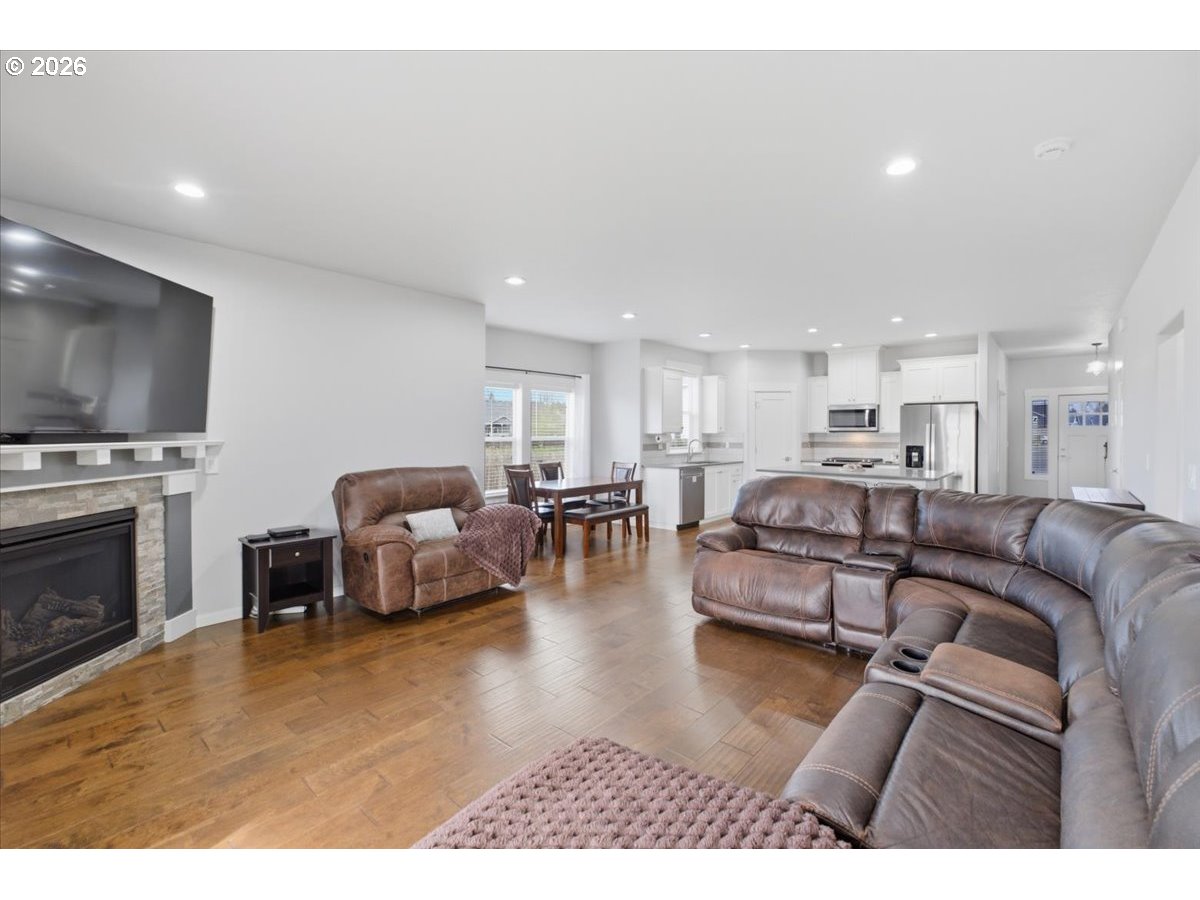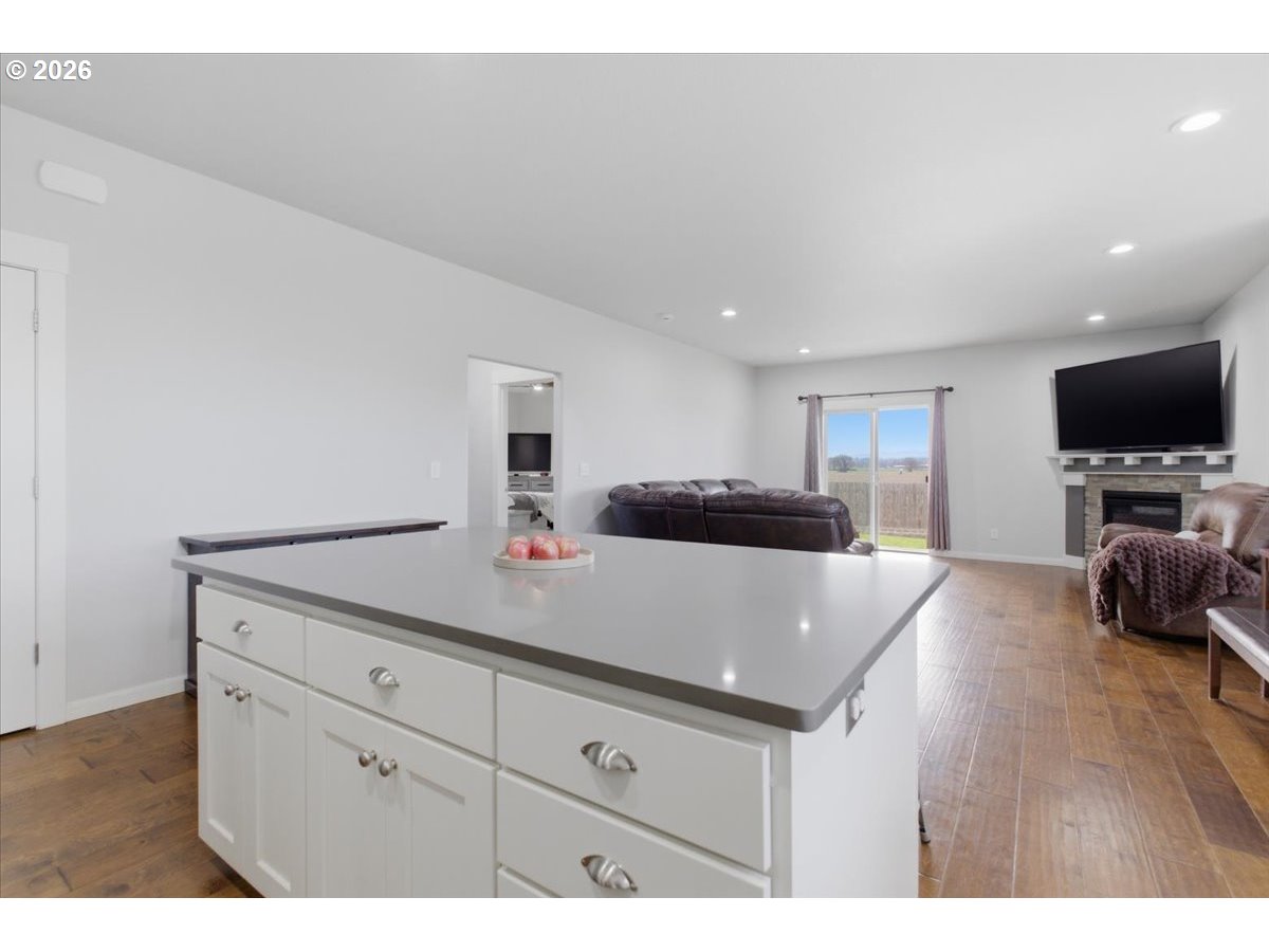 Modern, move-in ready 3 bed, 2.5 bath home with office and bonus room. Open-concept design with main-level primary suite featuring soaking tub, walk-in shower, and spacious closet. Stylish kitchen with quartz countertops flows into the living area with a cozy gas fireplace. Enjoy beautiful sunset views from the extended covered patio. RV parking, powered shed with generator, and updated lighting throughout add function and appeal. Flexible living spaces and thoughtful upgrades make throughout. A must visit!
