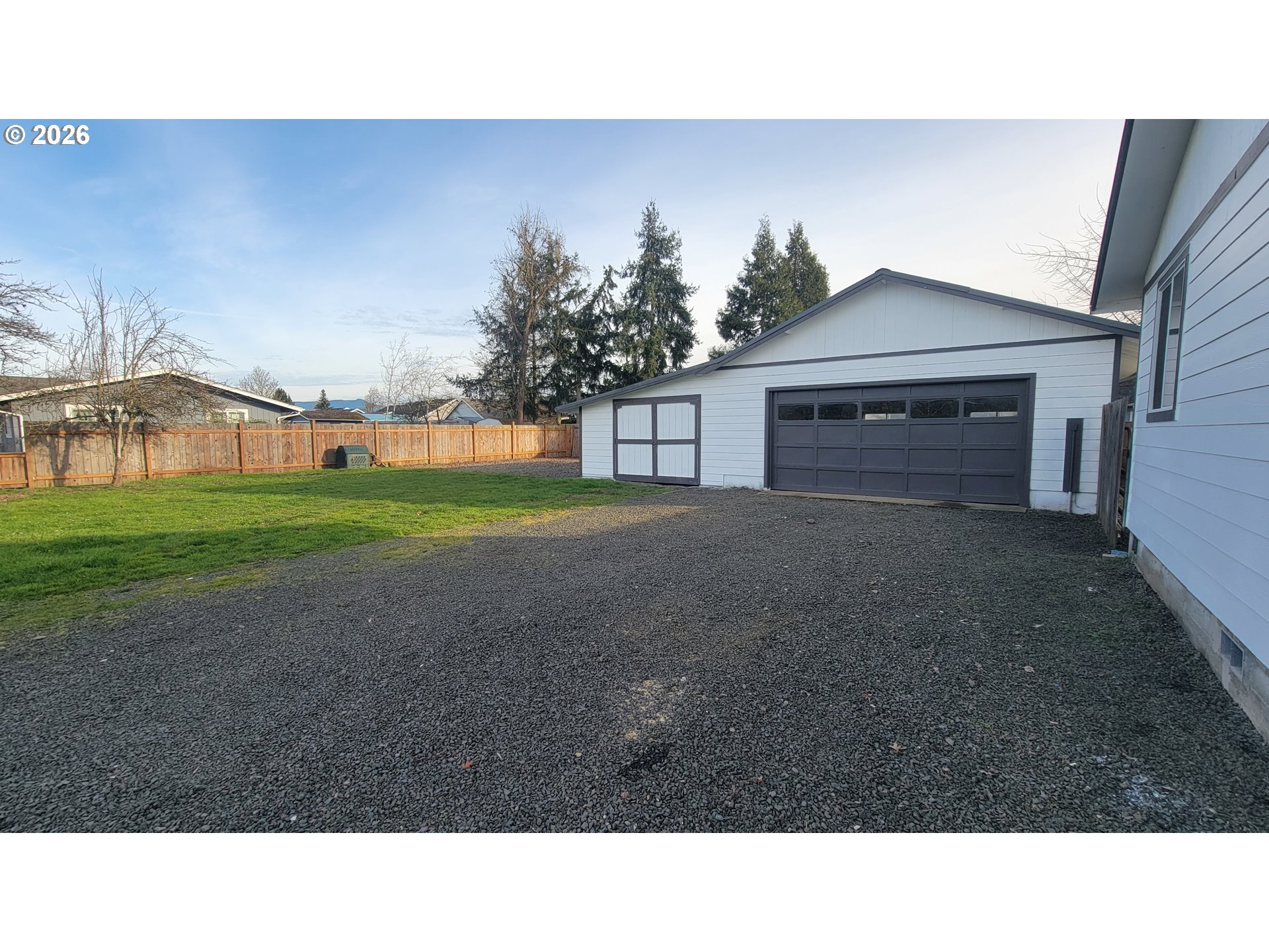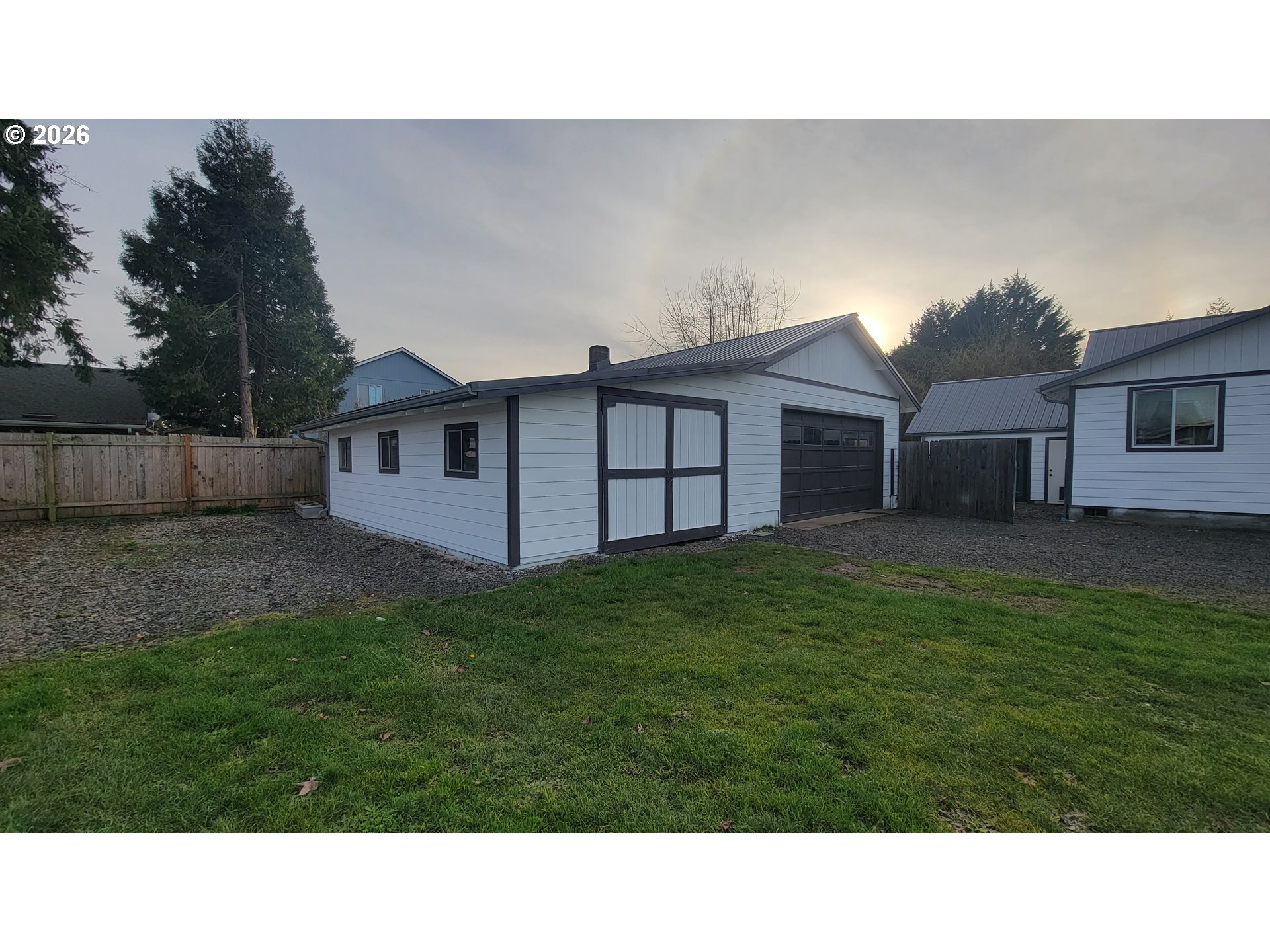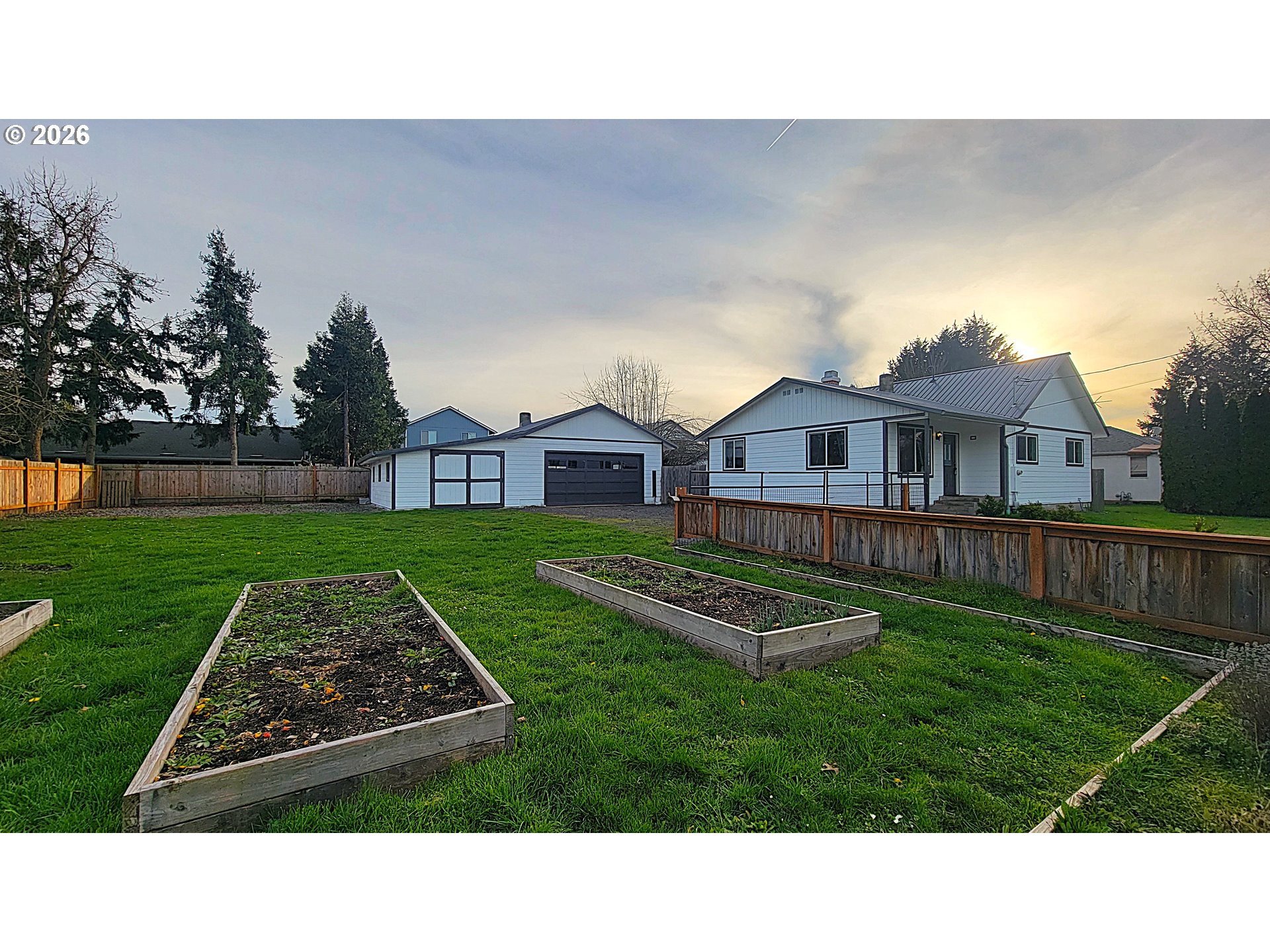 This beautifully updated home has been thoughtfully improved over the past six years and is truly move-in ready. The entire property is fully fenced, providing privacy and security, and includes convenient RV parking. The outdoor space is enhanced by raised garden bed, mature plum, pear, and apple trees, adding natural beauty and seasonal enjoyment to the yard.A standout feature is the impressive 25x28 shop, complete with 220-volt outlets, a newer dedicated electrical panel, convenient loft storage, and an additional 16x28 attached garage. This versatile setup is ideal for hobbies and projects. Inside, you’ll find a spacious bonus room with high ceilings and a walk-in closet, offering exceptional flexibility. It can easily be a third bedroom or family room. Extensive upgrades provide lasting peace of mind, including a durable metal roof and gutters, newer fiber cement siding, vinyl windows, updated interior and exterior electrical panels, and new front and rear doors. Fresh interior and exterior paint, along with newer flooring throughout the home, creates a clean, modern aesthetic.The kitchen is both stylish and functional, featuring stainless steel appliances and beautiful walnut butcher block countertops, a warm and inviting space perfect for cooking and gathering. Year-round comfort is ensured with a high-efficiency 93% natural gas furnace and heat pump, which includes six years remaining on a transferable warranty. Blending quality craftsmanship, thoughtful upgrades and versatile space, this property is ready for its next owner to enjoy.