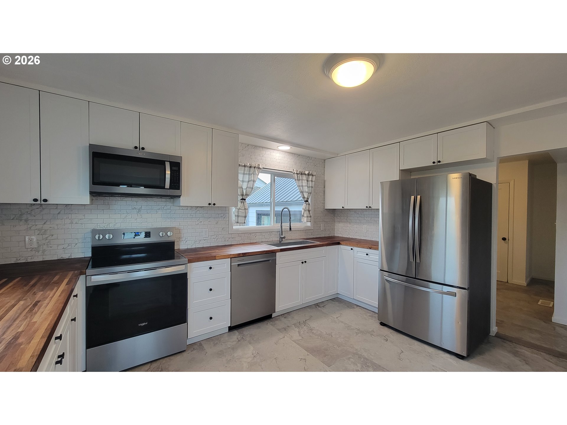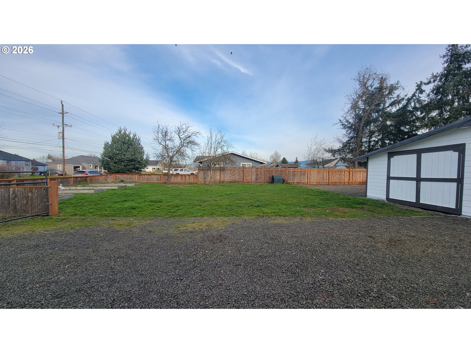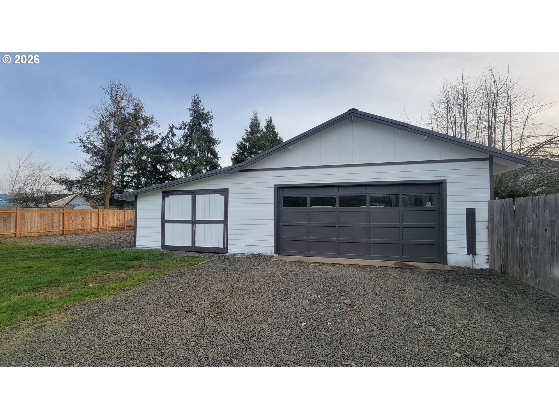 This beautifully updated home has been thoughtfully improved over the past six years and is truly move-in ready. The entire property is fully fenced, providing privacy and security, and includes convenient RV parking. The outdoor space is enhanced by raised garden bed, mature plum, pear, and apple trees, adding natural beauty and seasonal enjoyment to the yard.A standout feature is the impressive 25x28 shop, complete with 220-volt outlets, a newer dedicated electrical panel, convenient loft storage, and an additional 16x28 attached garage. This versatile setup is ideal for hobbies and projects. Inside, you’ll find a spacious bonus room with high ceilings and a walk-in closet, offering exceptional flexibility. It can easily be a third bedroom or family room. Extensive upgrades provide lasting peace of mind, including a durable metal roof and gutters, newer fiber cement siding, vinyl windows, updated interior and exterior electrical panels, and new front and rear doors. Fresh interior and exterior paint, along with newer flooring throughout the home, creates a clean, modern aesthetic.The kitchen is both stylish and functional, featuring stainless steel appliances and beautiful walnut butcher block countertops, a warm and inviting space perfect for cooking and gathering. Year-round comfort is ensured with a high-efficiency 93% natural gas furnace and heat pump, which includes six years remaining on a transferable warranty. Blending quality craftsmanship, thoughtful upgrades and versatile space, this property is ready for its next owner to enjoy.