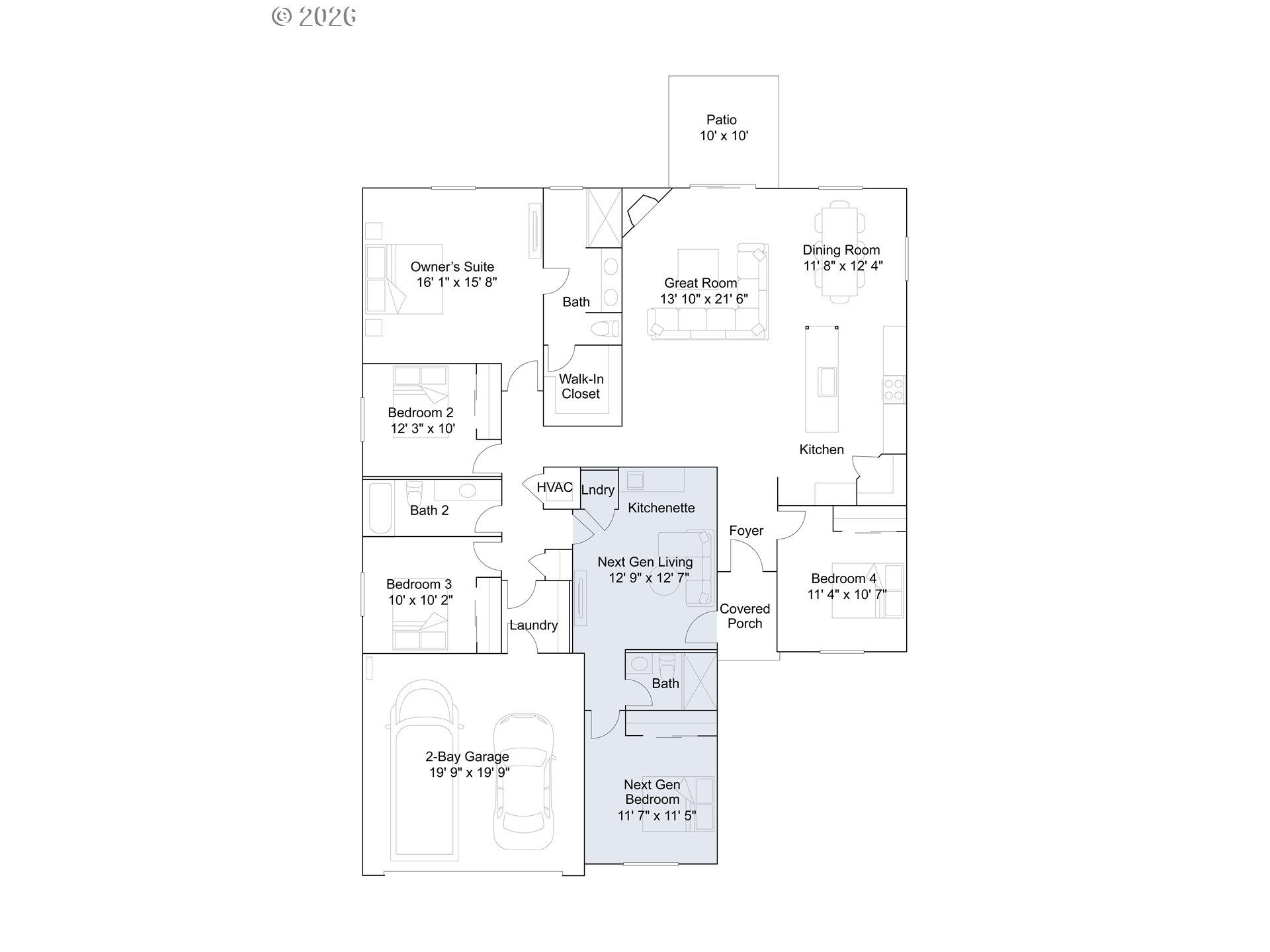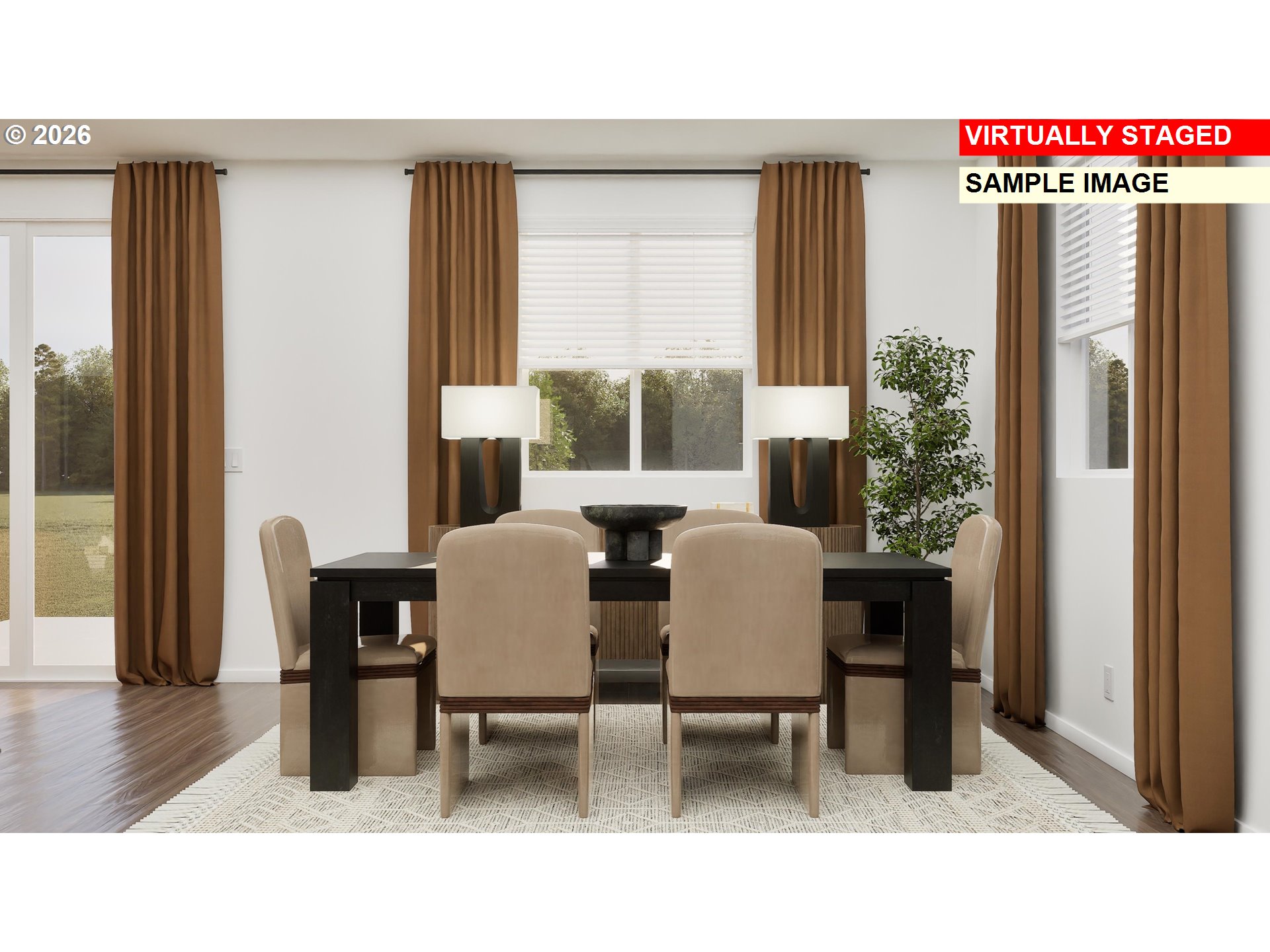 Discover the perfect blend of flexibility, comfort, and modern design in this thoughtfully designed single-level home in Woodburn, Oregon—featuring a Next Gen® suite. With its own separate entrance and living area, the suite offers incredible versatility while still being connected to the main home. Inside the main living space, an open-concept layout creates a warm and inviting atmosphere. The spacious Great Room is anchored by an electric fireplace and flows seamlessly into the dining area and kitchen, making it perfect for everyday living or entertaining. The kitchen is beautifully appointed with quartz countertops, shaker-style cabinetry with crown molding and matte black hardware, and a full suite of stainless steel appliances—including refrigerator, slide-in electric range, microwave, and dishwasher—all included in the sale. LED recessed lighting completes the polished look. The private owner’s suite offers a relaxing retreat with plush carpeting, a walk-in closet, and a spa-inspired bathroom featuring dual sinks, quartz countertops, matte black fixtures, and a walk-in shower. Additional bedrooms are thoughtfully positioned for privacy and flexibility. Throughout the home you’ll find designer-selected finishes including luxury vinyl plank flooring, stylish interior doors, quartz surfaces in bathrooms, and faux wood blinds. Energy-efficient features such as a heat pump HVAC system, dual-glazed windows, EV-ready outlet, and solar-ready capability add long-term value and comfort. Step outside to a cozy patio—perfect for relaxing or entertaining. With modern finishes, flexible living options, and a smart single-level layout, this home is truly one you need to experience in person. Come see what makes it so special! Photos are an artists conception of the finished product - features & finishes will vary. Estimated completion: Summer 2026.