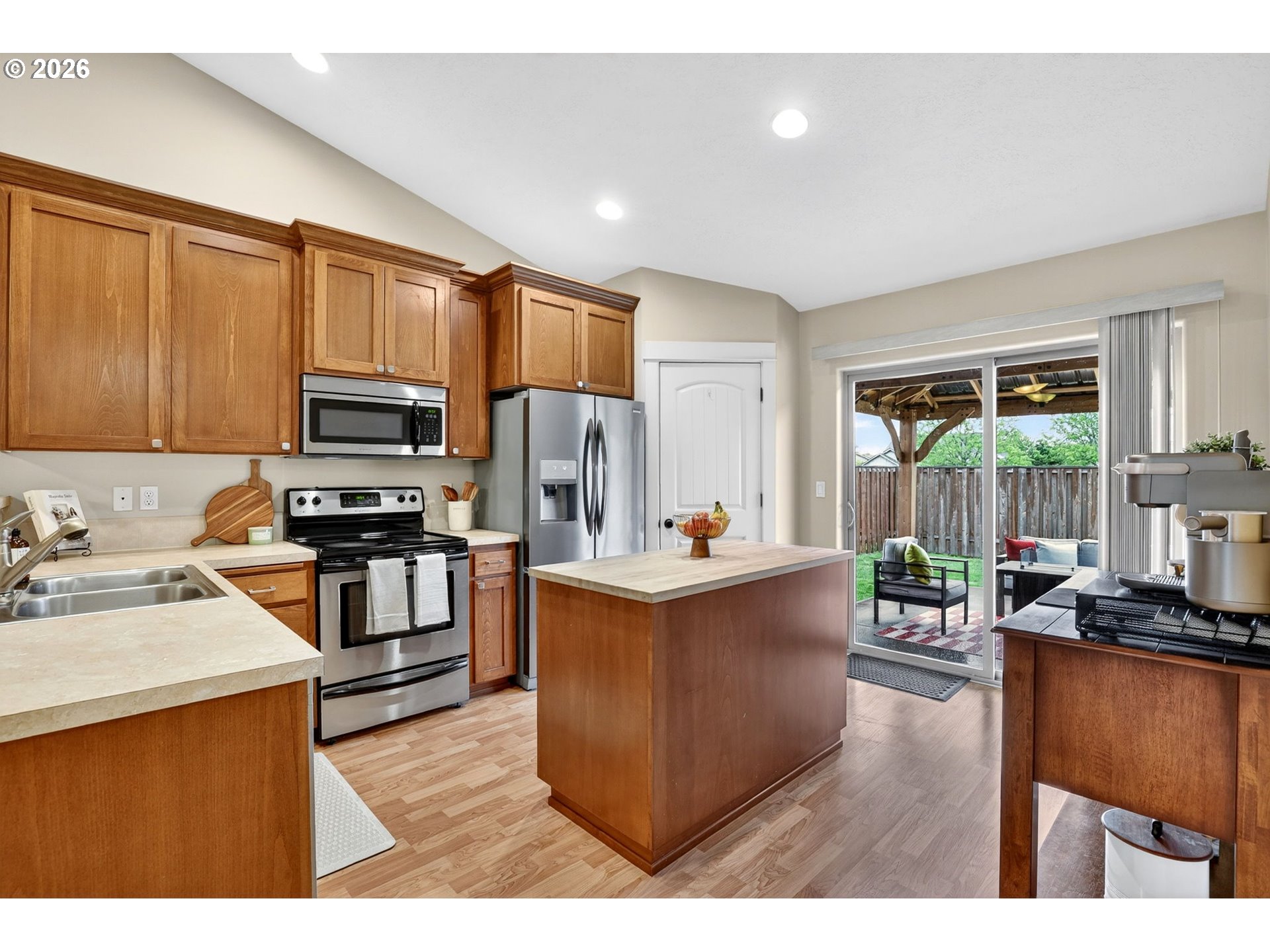 CookIsland, Dishwasher, Disposal, FreeStandingRefrigerator, Microwave, Pantry, StainlessSteelAppliance