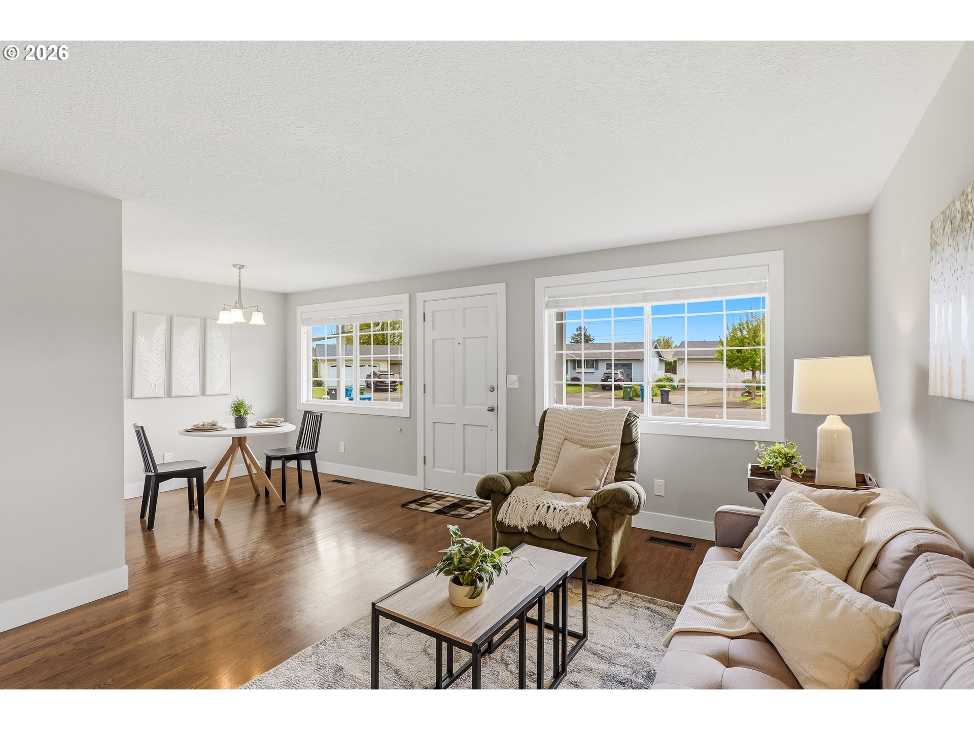 Tucked away in a quiet cul-de-sac in sought-after Woodburn Estates, this beautifully maintained home offers the perfect blend of comfort, convenience, and low-maintenance living.From the moment you arrive, you’ll appreciate the expansive front lawn, inviting porch, and extended driveway with plenty of room for additional parking. Inside, oak hardwood floors flow throughout the home, complemented by a kitchen with quartz countertops, stainless steel appliances, and a generously sized pantry that makes everyday living and entertaining effortless.The bathroom features a clean, timeless subway tile surround, while thoughtful updates—including a newer roof, gutters, and hot water heater—provide peace of mind.Step outside to a covered patio overlooking beautifully designed flower beds and a turf lawn, creating a private outdoor space that’s both relaxing and easy to care for.Living in Woodburn Estates means access to a vibrant community with amenities that enhance your lifestyle, including a pool, hot tub, gym, recreation facility, library, and meeting spaces. Enjoy nearby dining at the local favorite Country Kitchen or spend time on the nearby golf course—everything you need is just moments from your door.This home offers a wonderful opportunity to enjoy a connected, comfortable lifestyle in a welcoming community.