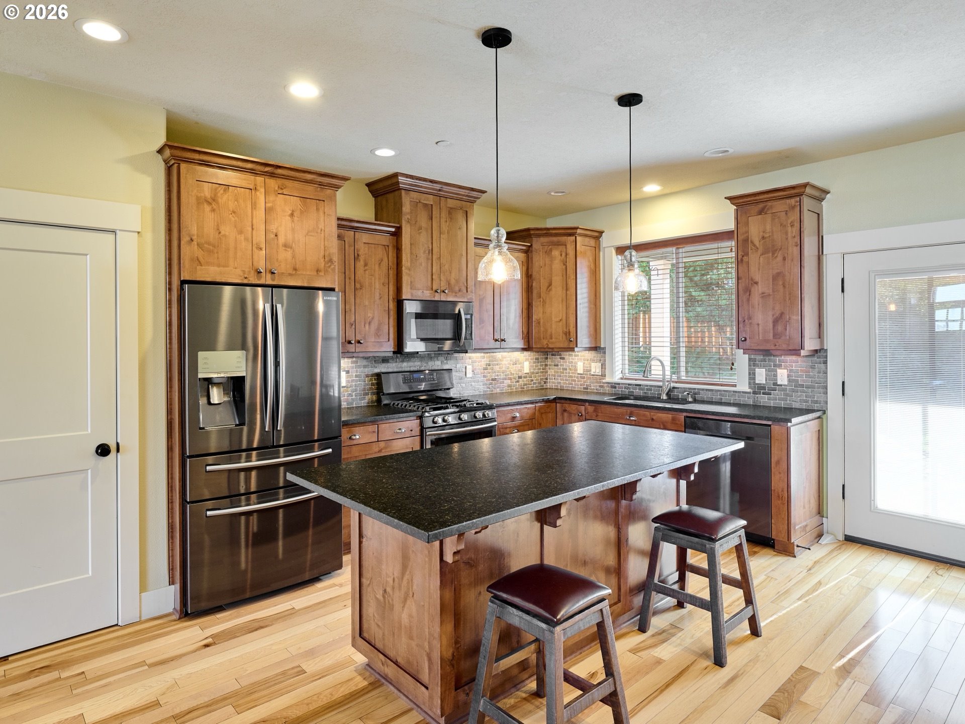 Built in 2016, this well-designed one-level Silverton home sits on a .19-acre lot and offers 3 bedrooms and 2 baths with hickory hardwood floors throughout. The kitchen features alder cabinets and gas appliances, while central A/C adds year-round comfort. Enjoy a professionally landscaped yard with a very private backyard in the summer, plus room for RV parking. A clean, move-in-ready home with thoughtful upgrades inside and out.