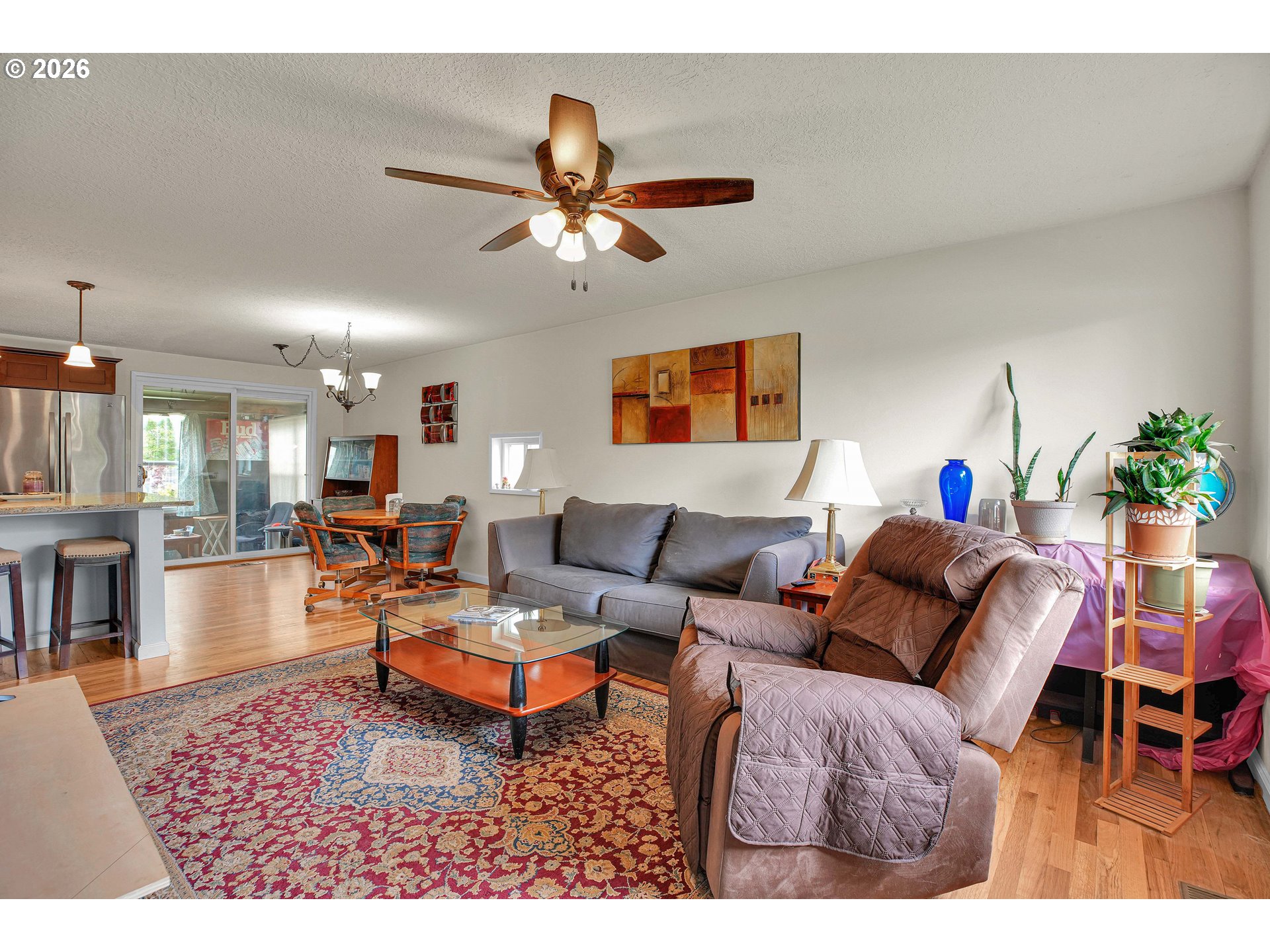 Welcome to easy, low maintenance living in this inviting 2 bedroom, 1 bath home located in a desirable 55+ community in Woodburn. Situated on a quiet street, this well-maintained residence offers a comfortable and functional layout with generous living spaces and abundant natural light. The spacious living room flows seamlessly into the dining area and kitchen, creating an ideal setting for everyday living and entertaining. Both bedrooms are well-sized, with ample closet space, while the full bathroom is conveniently located and thoughtfully designed. Enjoy the benefits of community living with access to nearby amenities, social opportunities, and a peaceful neighborhood atmosphere. Outside, you’ll find a manageable yard space perfect for relaxing or light gardening, along with off-street parking. Located near shopping, dining, and medical facilities, this home provides both comfort and accessibility. Don’t miss this opportunity to enjoy a relaxed lifestyle in a welcoming 55+ community.