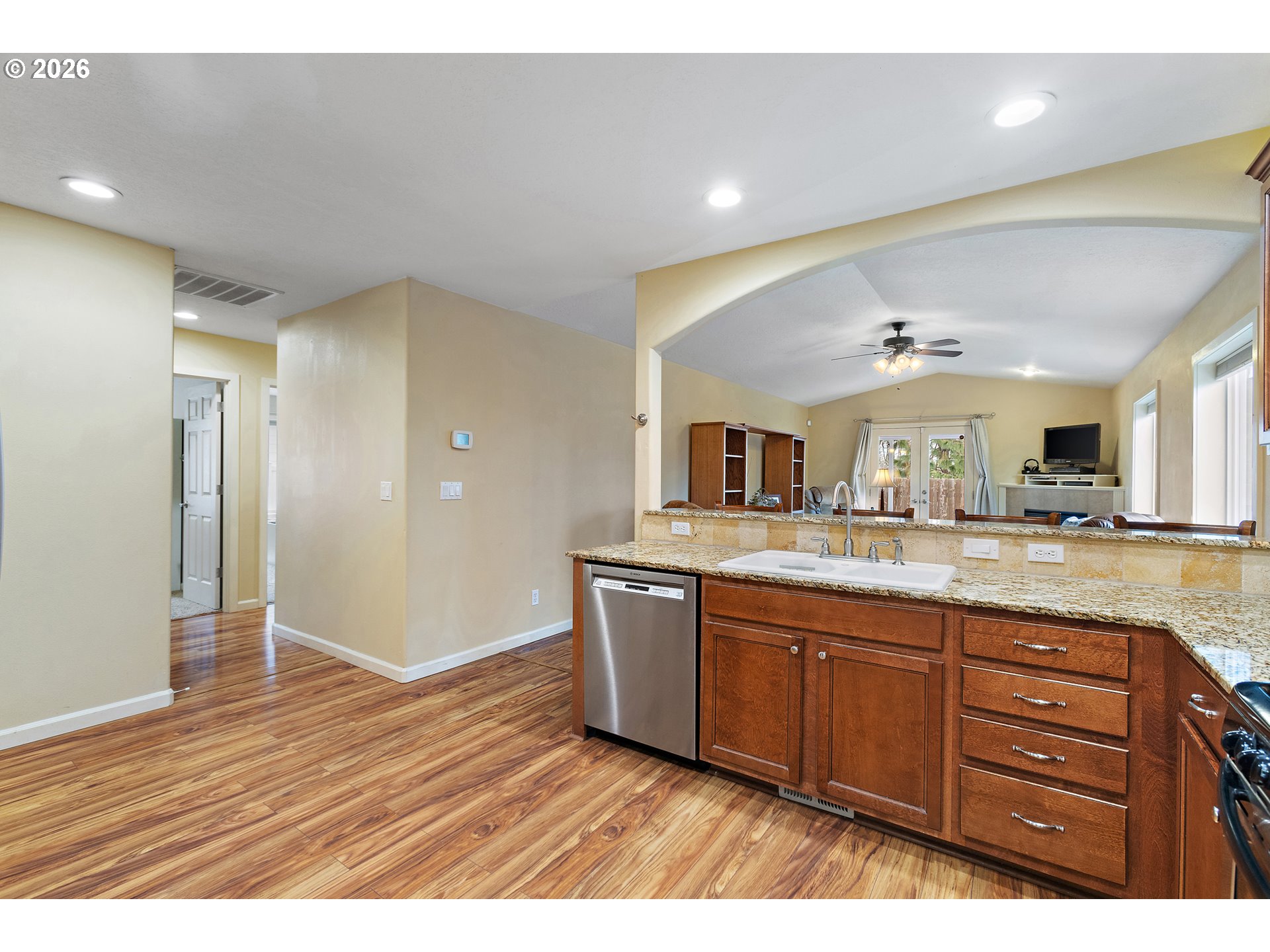 Hard to find updated single level home that is well maintained with 4 bedrooms in the heart of Keizer. 4th bedroom works very well as an office or den. Nice centralized kitchen offers granite counters, stainless appliances, beautiful wood laminate floors throughout, opening up to the living room with a gas fireplace, vaulted ceilings, & offers a formal dining area. The back yard is fenced with a nice patio cover and low maintenance; offering a fire pit to enjoy. Easy access to shopping, but in a quiet area. Comes with a $3000 portable solar generator system.