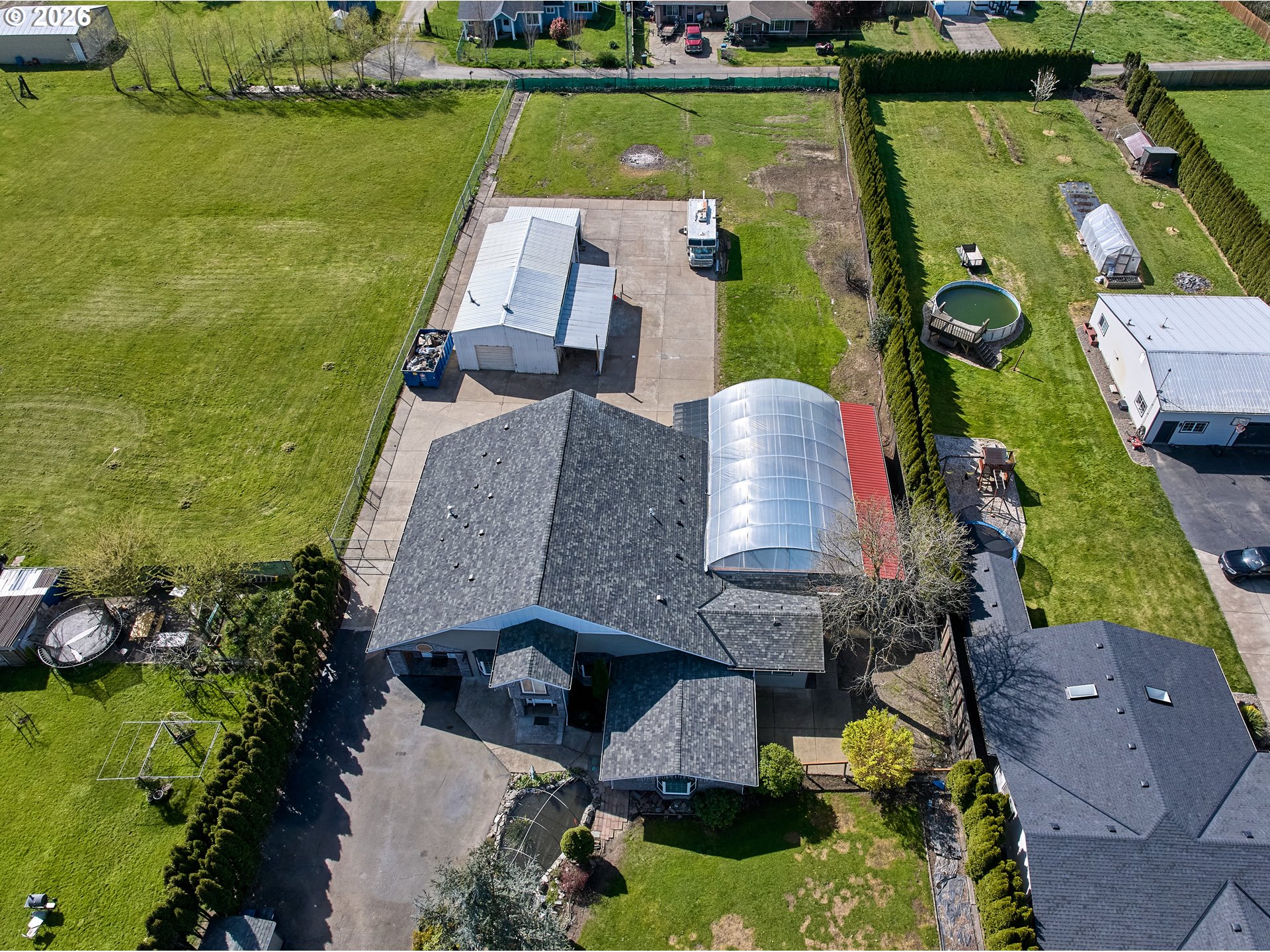 So much room under one roof! Custom-built home on a level one-acre lot just outside city limits. Fully fenced with multiple gated entries for added security and privacy. Main level features three bedrooms (one without a closet), plus a spacious bonus room upstairs ready for your creativity. Flexible layout offers multiple rooms ideal for home offices, hobby spaces, home businesses, or potential generational living. Large shop with metal siding and roof includes two separate shop areas and two carports, providing endless opportunity. Enjoy the covered, heated and filtered pool year-round, along with an unfinished side room ready for your vision. The level lot offers space to entertain, garden, or expand, and welcomes you with a peaceful koi pond at the front entrance.
