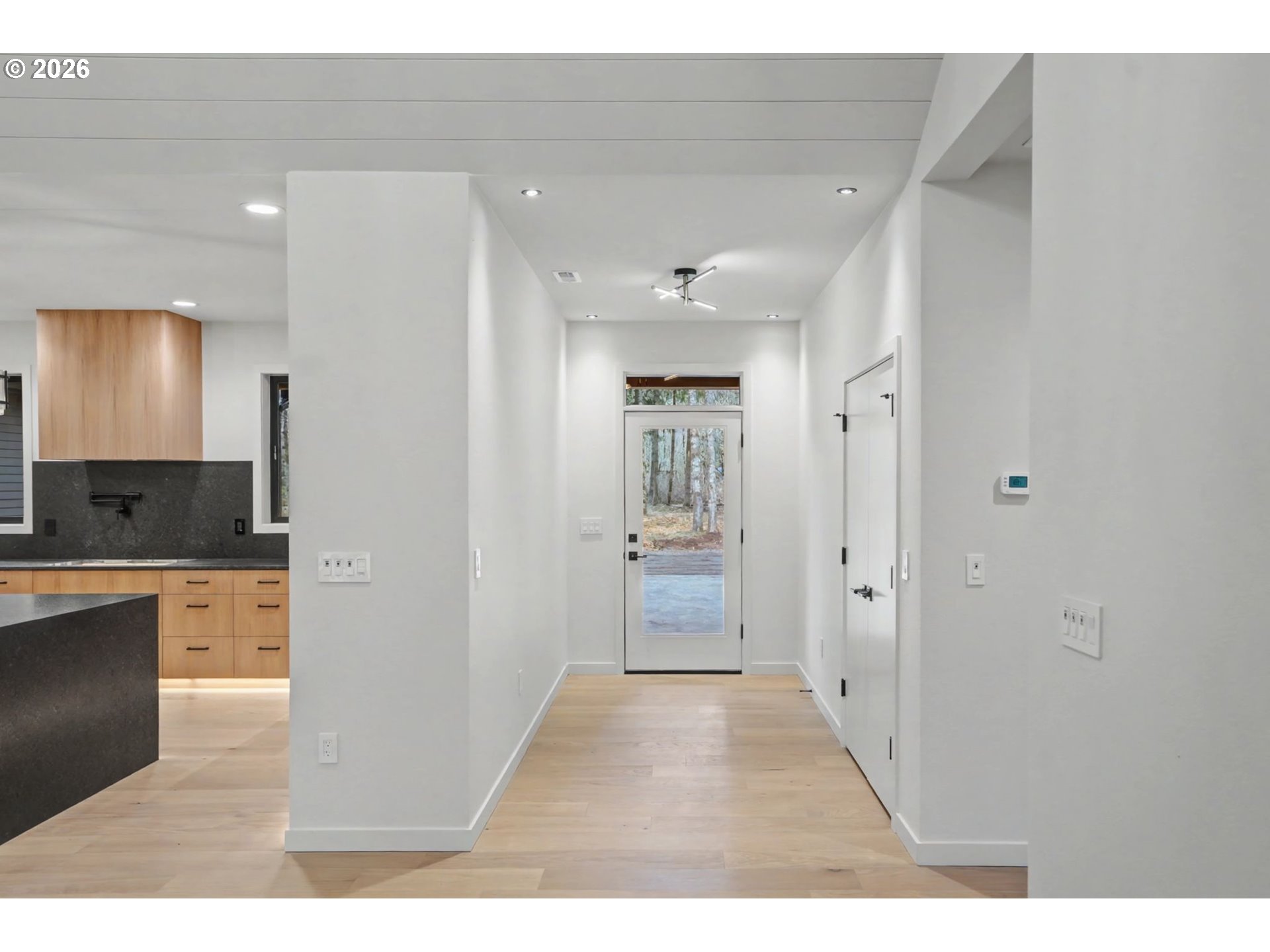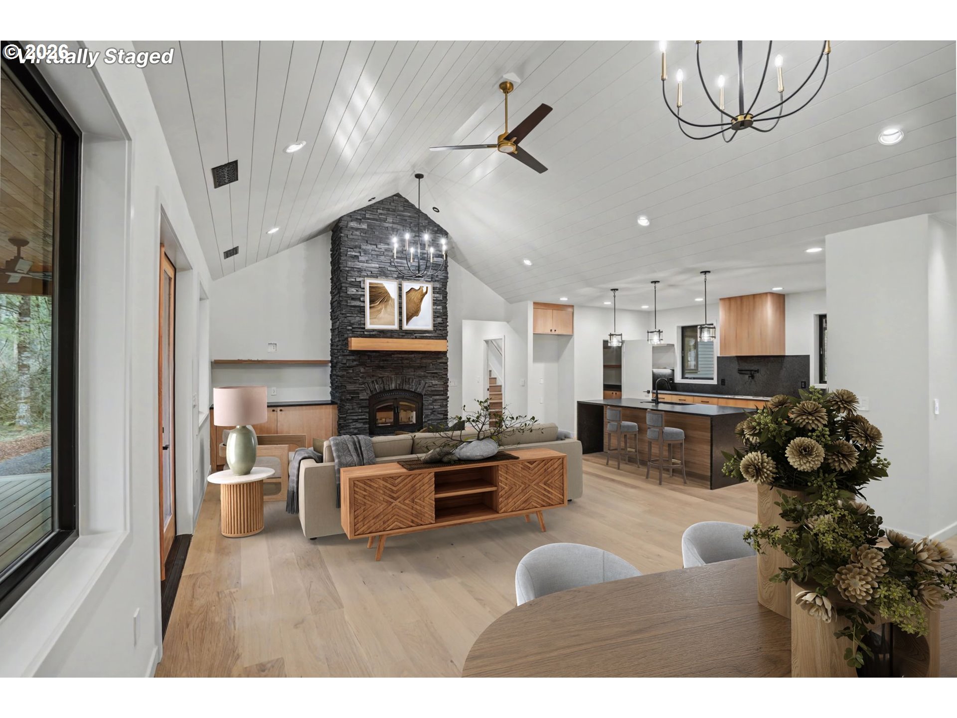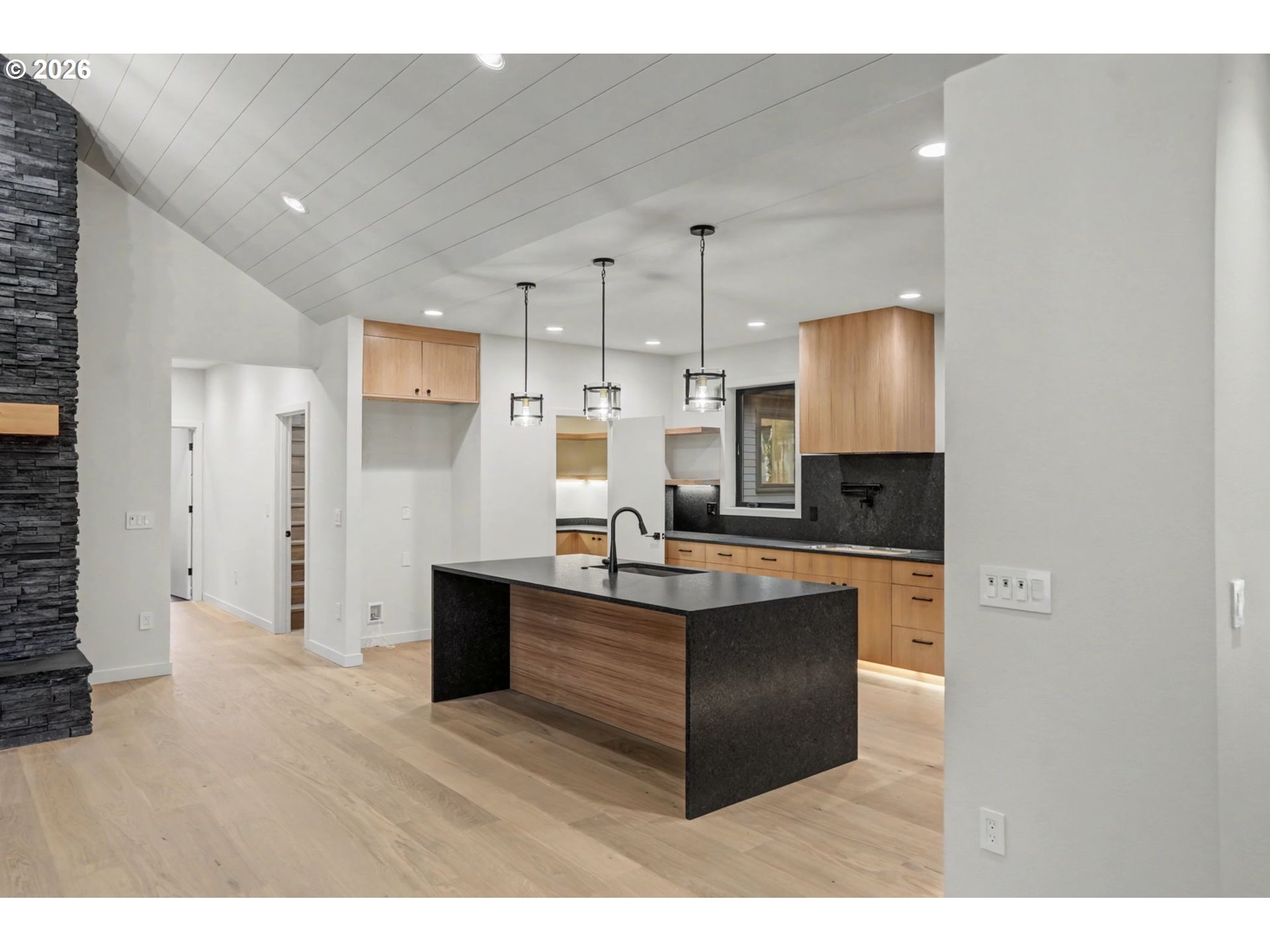 Discover the epitome of modern sophistication in this newly constructed smart home, nestled within four acres of enchanting, wooded retreat near Silver Falls State Park. The property's Scandinavian modern design shines through with an array of exquisite details like hand-built rift white oak grain cabinetry and leather-finished granite counters. The eye-catching waterfall finish on the granite island majestically complements the great-room style living area, complete with a cozy wood-burning fireplace and stone hearth. Double doors lead to a heated back deck, perfect for enjoying the views of the private woods all year round. The spa-like primary bathroom boasts heated floors, top-notch plumbing fixtures, a full tile shower, soothing soaking tub, and a large walk-in closet illuminated by integrated lights in custom shelving. Luxurious solid oak hardwood floors run throughout the house. On the property, a 42x42 shop awaits your projects. Thanks to the smart home features, controlling heat and lighting has never been easier, all manageable from a handy mobile app.