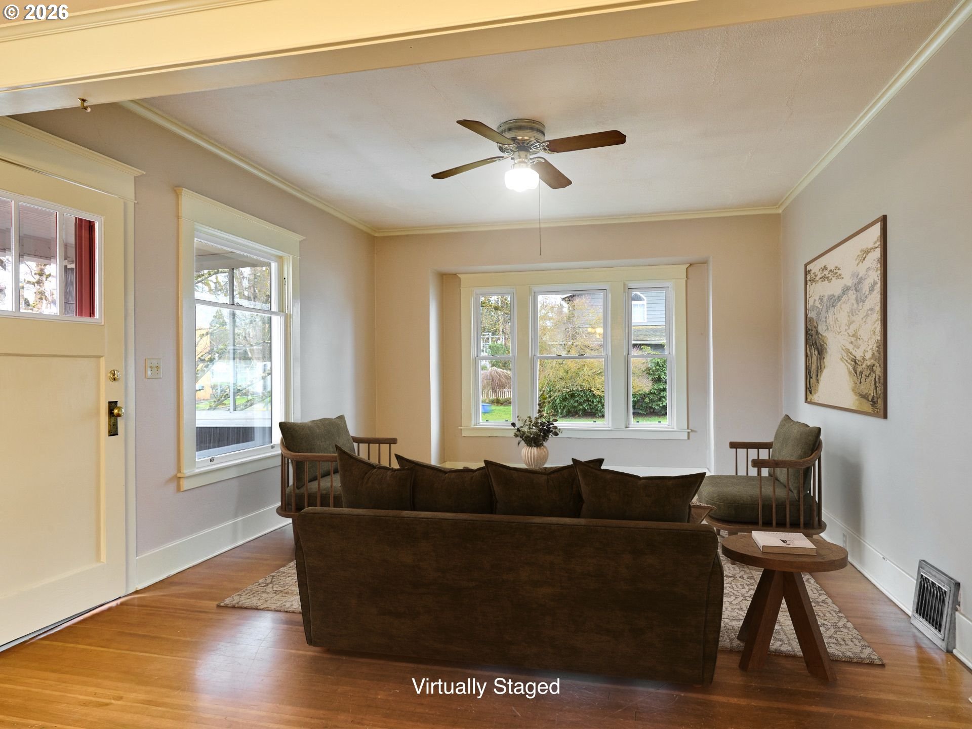 Charming 1920 3 bed 2 bath Craftsman in a great location. Original wood floors flow through the living and dining room, with new wood floors installed in the primary bedroom. Crown molding throughout and built in buffet in the dining room add to the classic feel of this home. Kitchen features solid maple counter tops, newly installed tile backsplash, and a large walk in pantry. Underground sprinklers and fresh mulch makes for a low maintence yard.