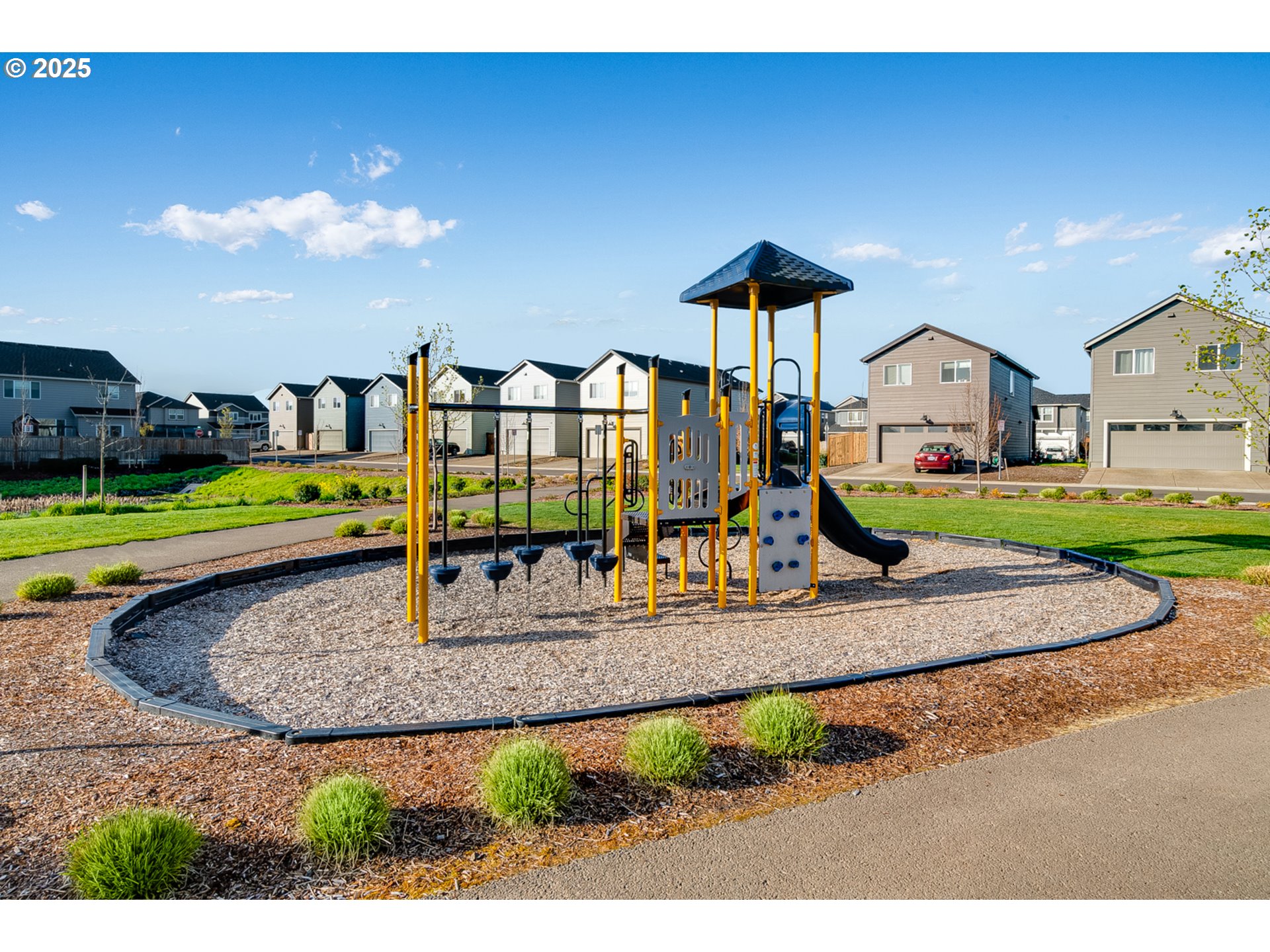Welcome to Smith Creek by Lennar in Woodburn. The Blair plan is a two-story home featuring an open main floor layout that connects the kitchen, nook, and great room—perfect for both everyday living and entertaining—with convenient access to a powder room. Upstairs are three bedrooms, including a generous primary suite with an ensuite bath featuring a double vanity and a walk-in closet. Interior highlights include quartz countertops, shaker-style cabinets, luxury vinyl plank flooring in the kitchen and entry, and luxury vinyl tile in the baths. This home also includes central air conditioning, a refrigerator, washer and dryer, and blinds—all at no extra cost! Smith Creek is conveniently located near I-5, just 7 minutes from Woodburn Premium Outlets and close to parks, golf courses, schools, and vineyards, with easy highway access for smooth commutes. Community amenities include a dog park, multiple playgrounds, picnic areas, trails, and a basketball court. Rendering is artist conception only. Photos are of a similar home, features and finishes will vary. Estimated completion: November 2025. Homesite 580.