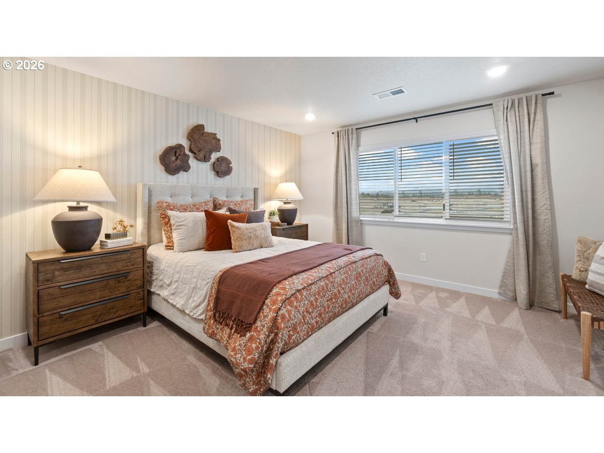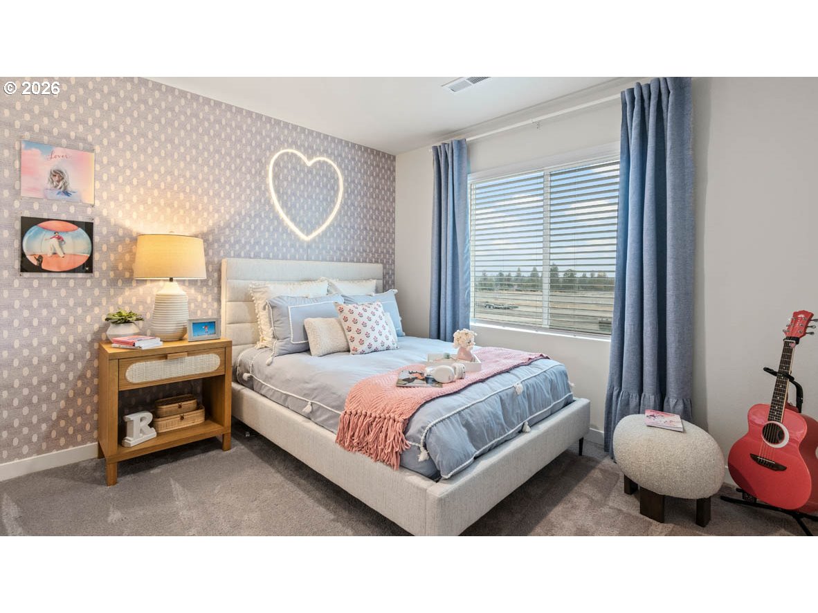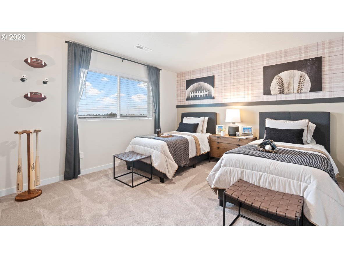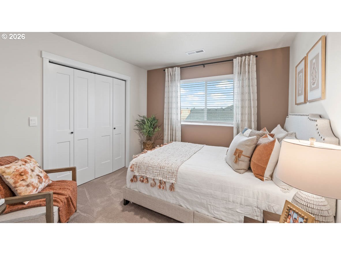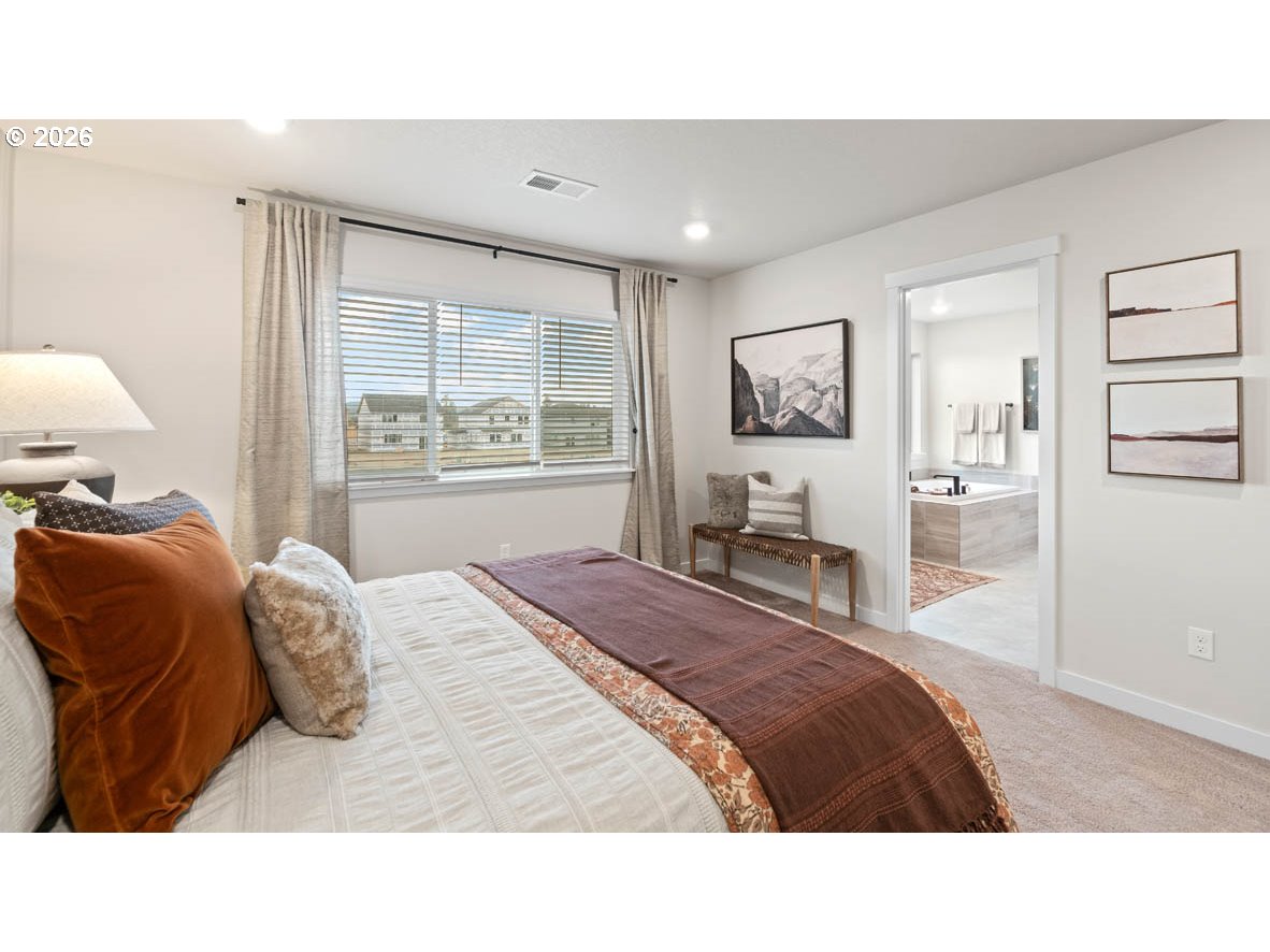 Welcome the Coral floor plan at Sorrento Estates in Salem, Oregon. This beautiful two-story 2,230 square foot floor plan has 4 bedrooms plus a den, 2.5 bathrooms, and an attached 2-car garage. As you walk in, there is a den that provides flexibility for hosting guests. Walking down the hallway and past the extra storage closet, the great room invites you into the open and modern area that includes the dining room and kitchen. A floor-to-ceiling electric fireplace centers the living area. The kitchen offers plenty of space and amenities to create your favorite meals. It features solid-surface countertops, shaker-style cabinets with matte black pulls, stainless-steel appliances, and a pantry for added storage. The upstairs secondary bedrooms each have its own spacious closet, and the third bedroom also include a walk-in closet. The primary bedroom offers a open layout, providing a serene space with an en suite bathroom featuring a double vanity, walk-in shower, a bathtub, a spacious walk-in closet, and a bonus closet for all your clothing! The upstairs laundry room adds convenience to your routine without having to haul your clothes between floors. Receive a closing cost credit with use of builder’s preferred lender, reach out for more details. We know you will love this Coral floor plan. Photos are representative of plan only and finishes may vary as built.