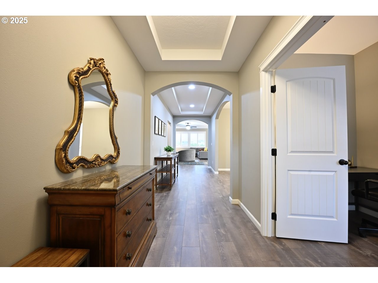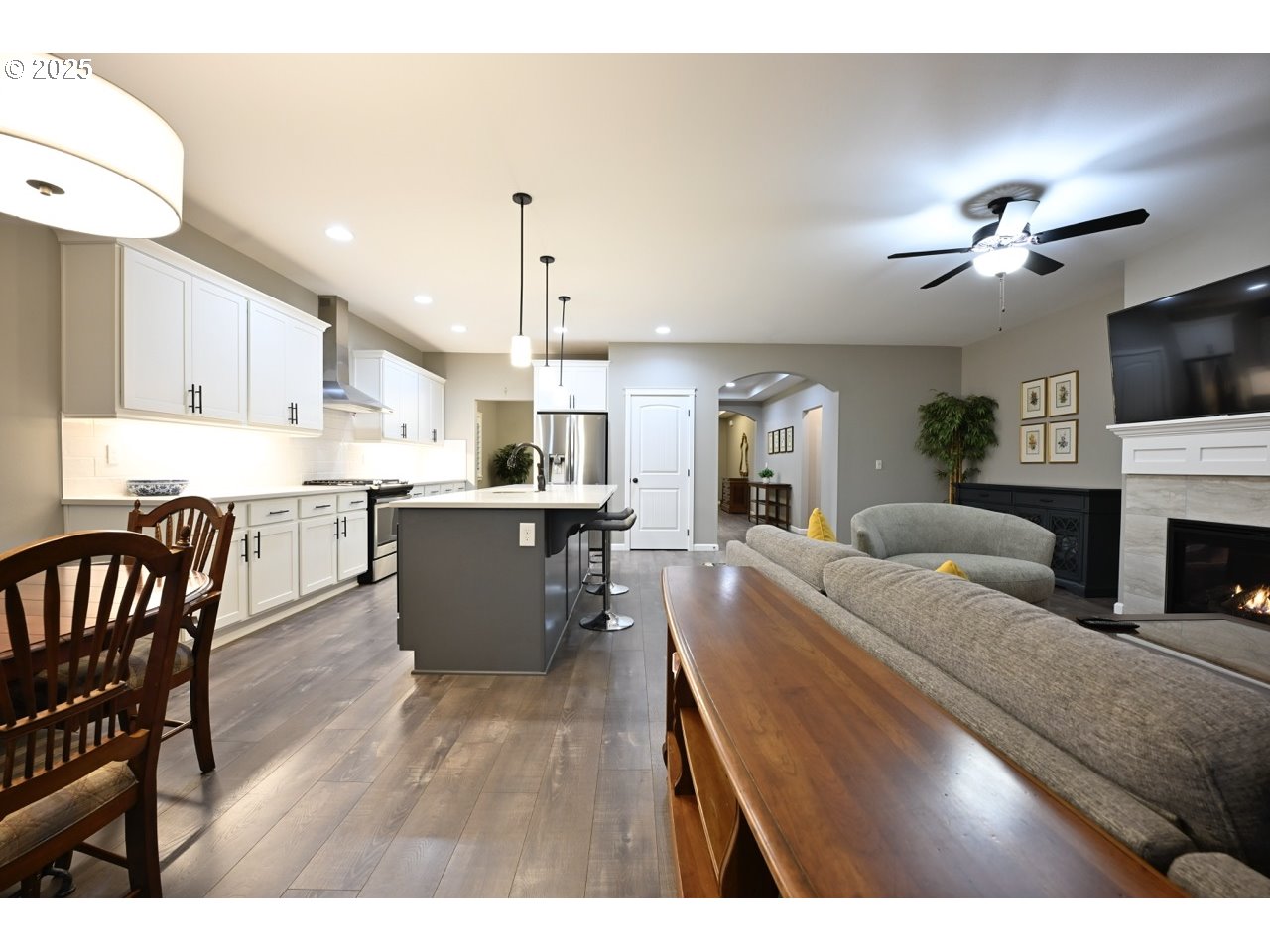 Live beautifully in Tuscany Hills--Ideally located in the highly coveted Sprague School District! This turnkey, 4 bedroom 2 bath home, built in 2020, offers effortless luxury with 9-ft ceilings, open great room w/fireplace, and an elegant primary suite w/soaking tub, tile shower & walk-in closet. Host unforgettable dinners in the gourmet kitchen, then unwind on the peaceful patio surrounded by lush landscaping and raised garden beds. $25K in designer plantation shutters add class and refinement throughout.