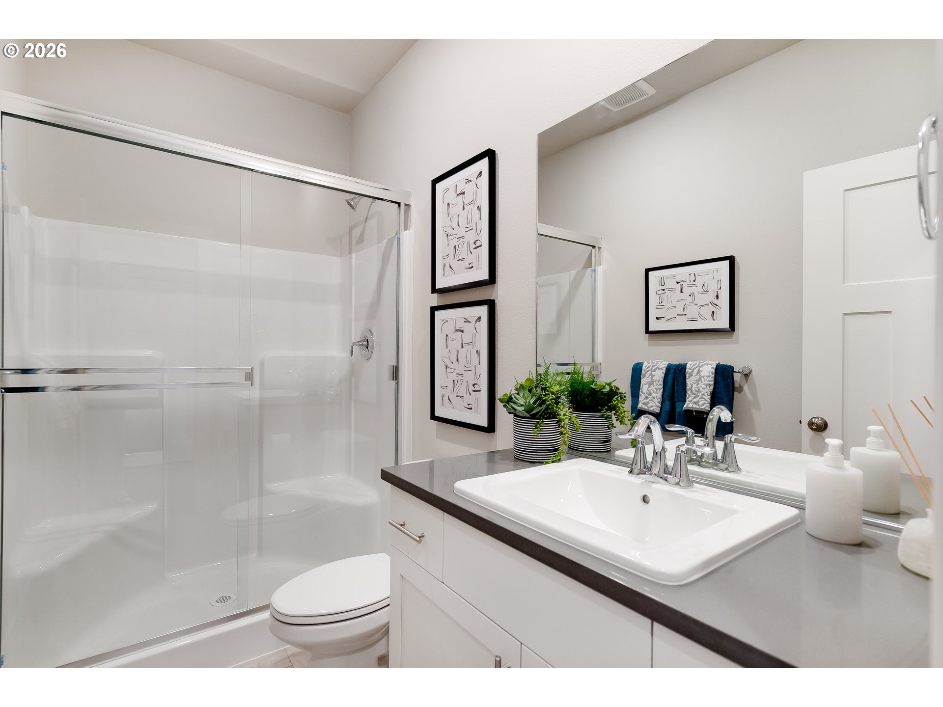 The highly anticipated Coburn Terrace Model Home is now available! This corner lot is dialed in with extra features: In addition to fridge, washer/dryer, a/c and blinds, enjoy custom elegance with beautiful accent walls, light fixtures and curtains. The Jade plan provides two levels of living space with four bedrooms and a spacious bonus room. The main floor features an open great room, dining area, and kitchen with patio access, plus a full bedroom and bath for guests or multi-gen living. Upstairs, the private primary suite offers a soaking tub, walk-in closet, and spa-like bath. Finishes include quartz countertops, upgraded shaker-style cabinets, LVP flooring, a fireplace with floating mantle, two-tone paint, fencing, and landscaping. This home is truly a must-see. Flex credit/closing cost incentive available when financing with preferred lender! Use towards rate buydown and closing costs. Homesite 1. 45 day close.