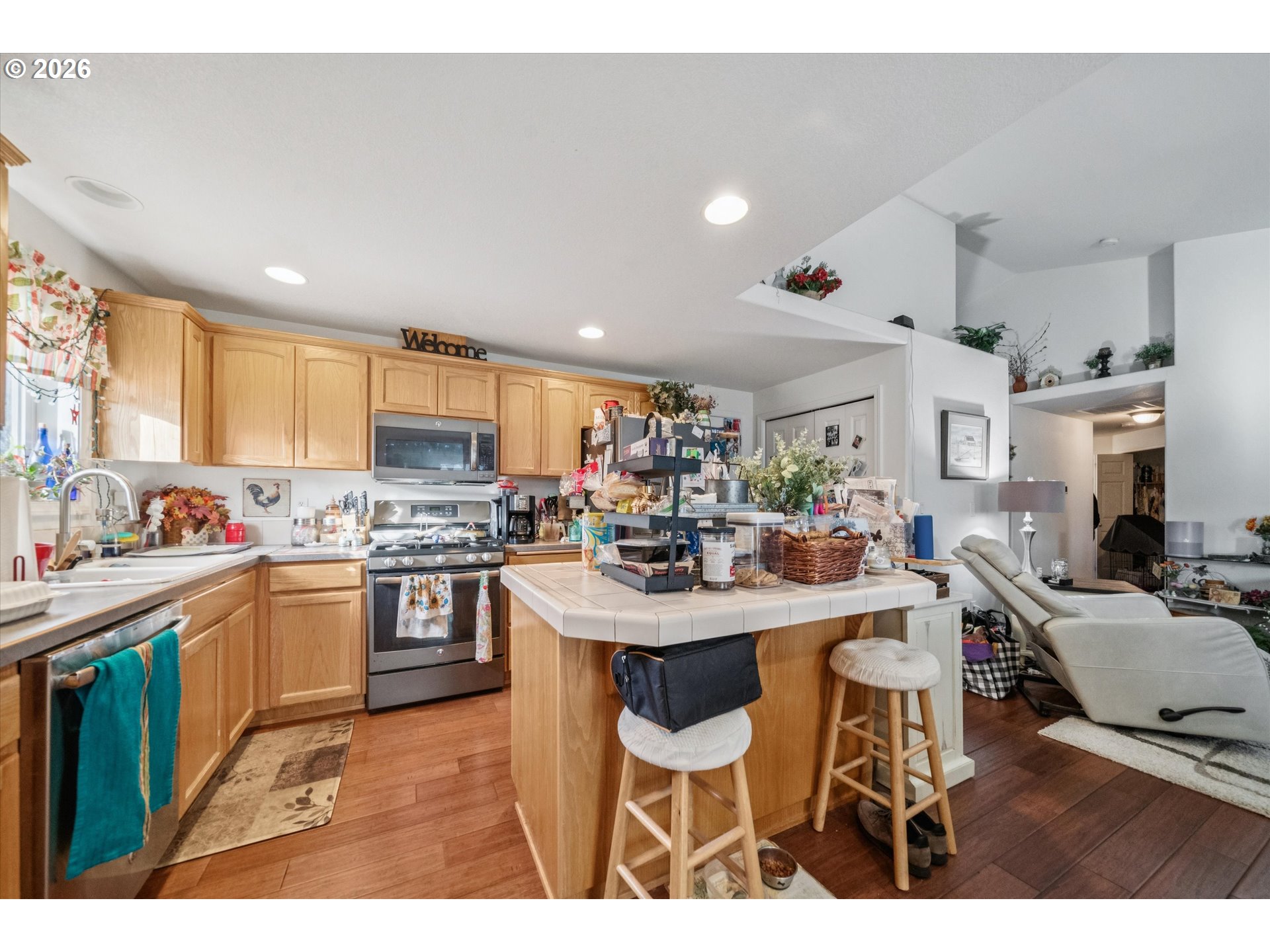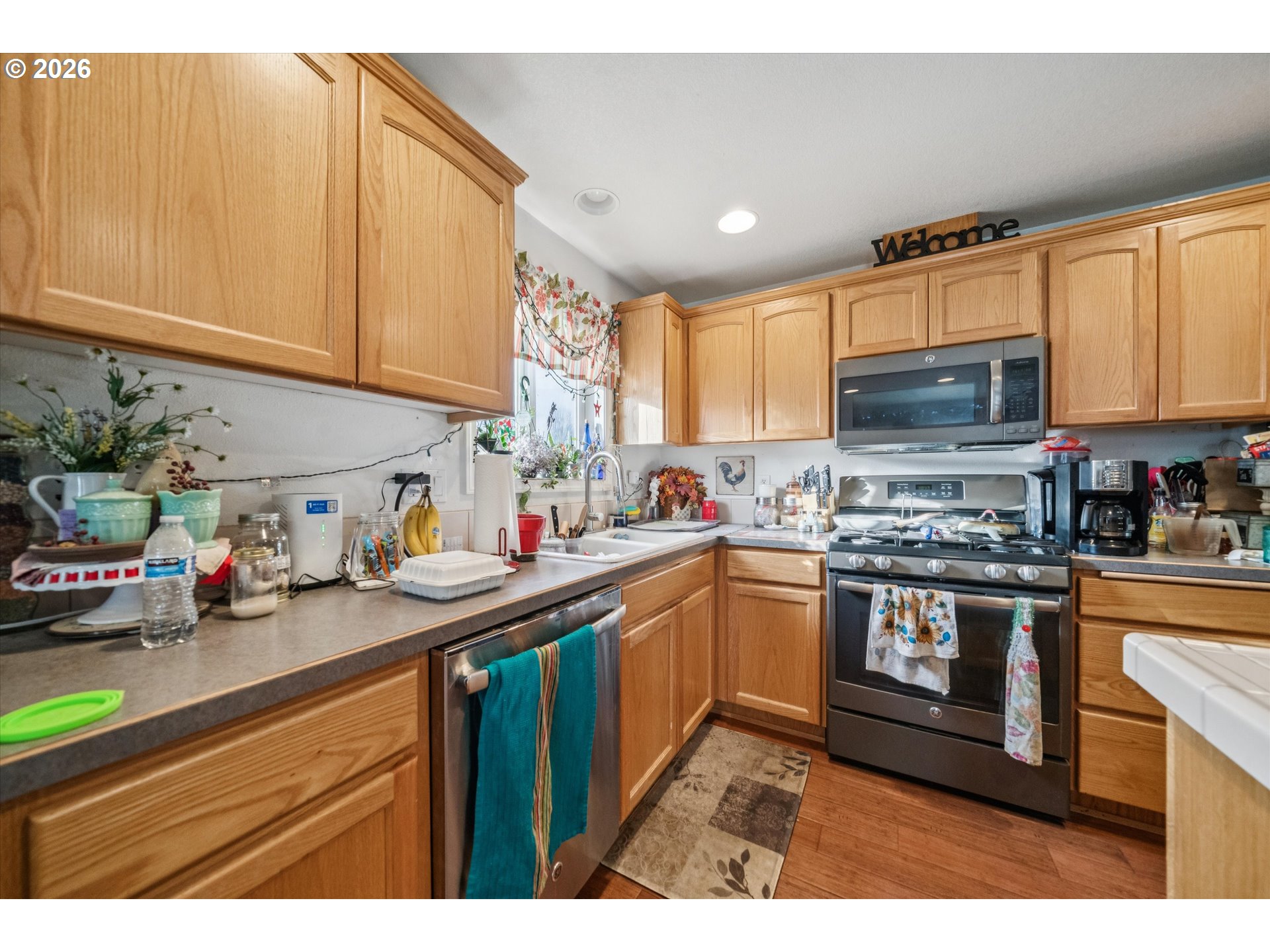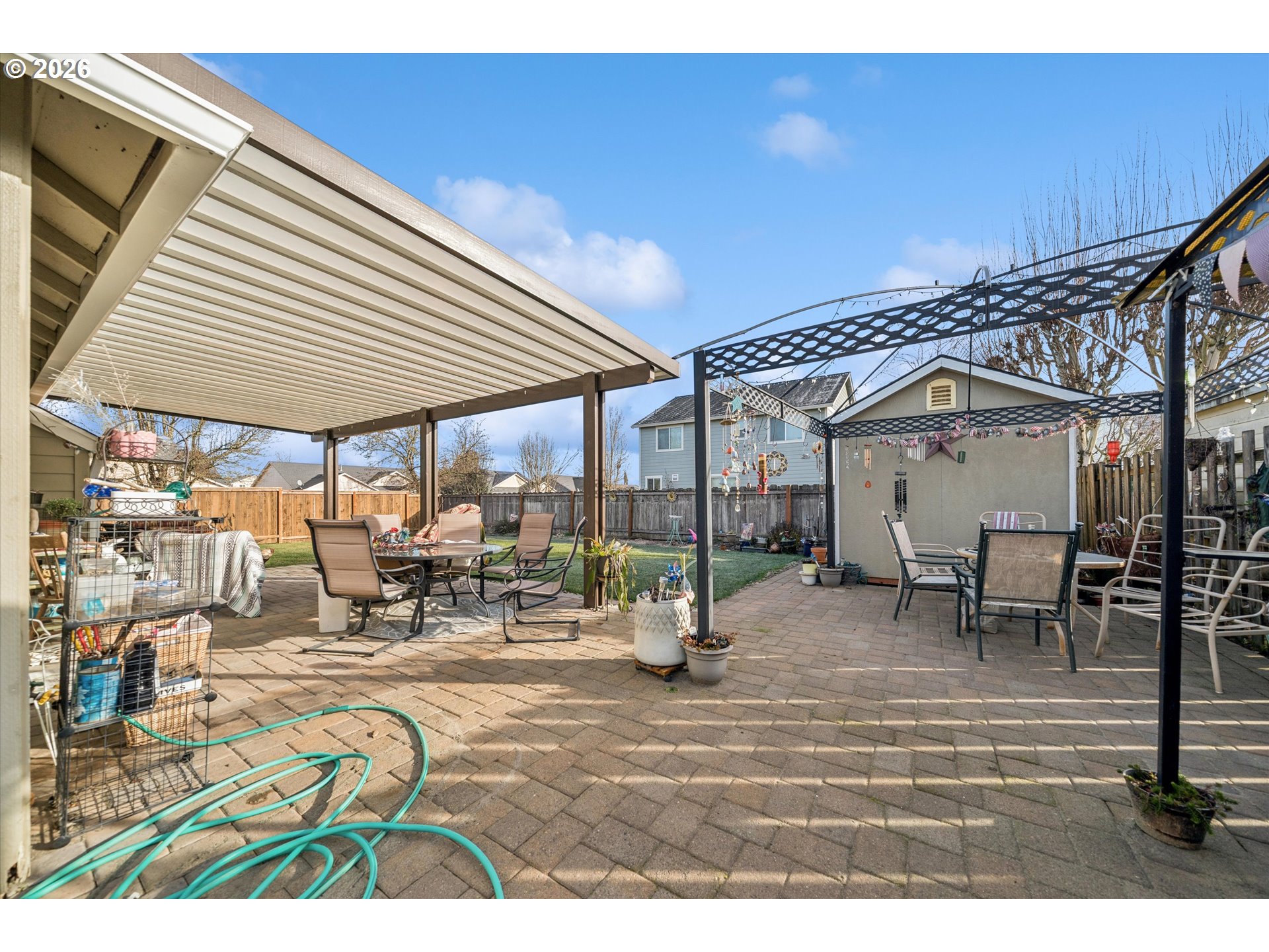 Nicely appointed home on large corner lot in Heritage Park Meadows. Great room floor plan, all stainless appliances in Kitchen are included. Updated bathroom by Jacuzzi of Portland. Engineered bamboo floors, oversized two car garage. Owned solar panels provide low electric bills year round. Covered patio, with pavers leading to garden shed, raised beds, BBQ area, and more. Stunning, landscaped, fenced back yard. This property has it all!