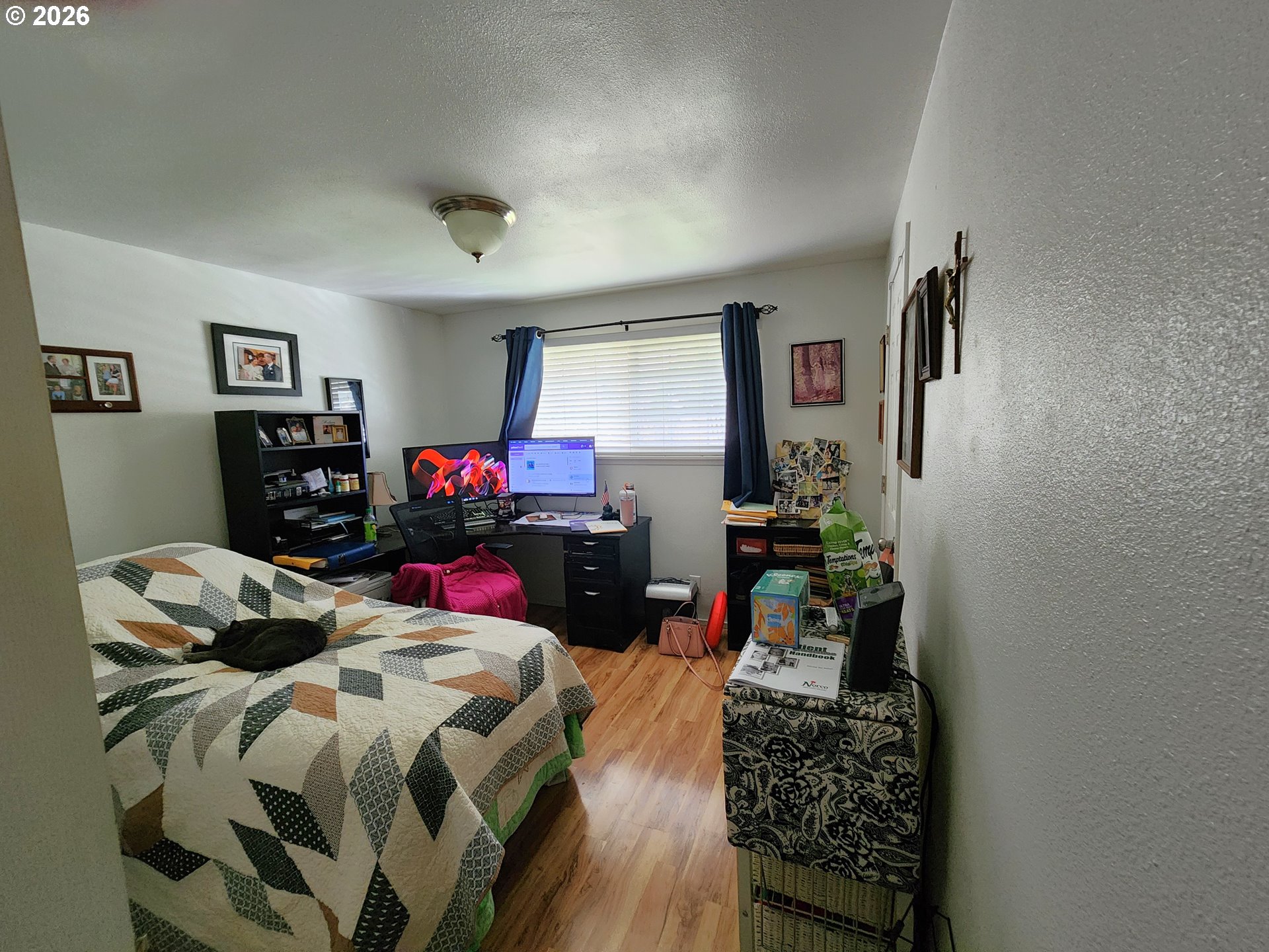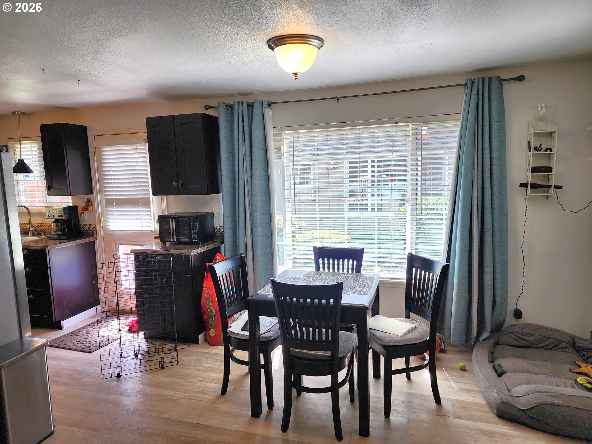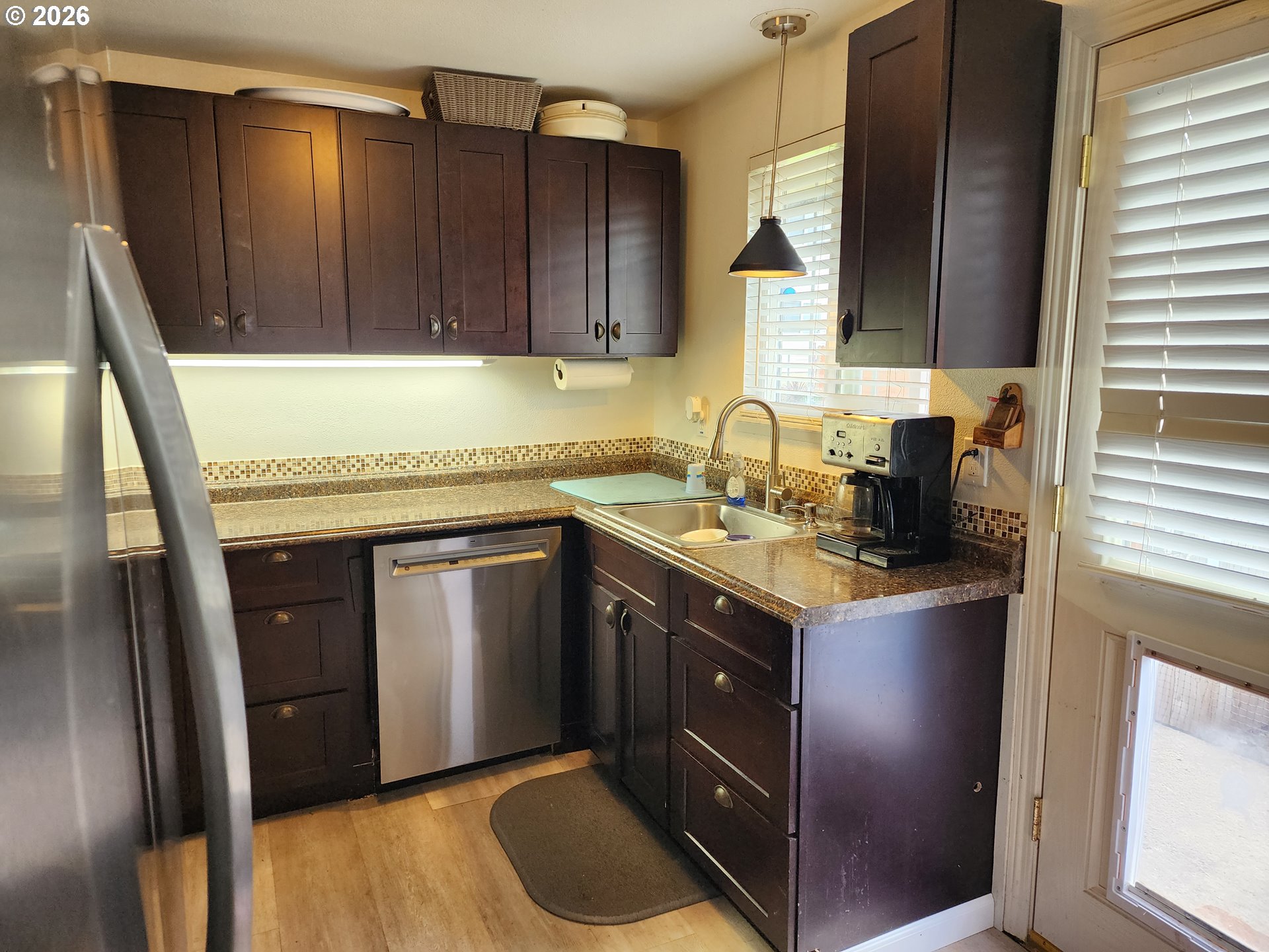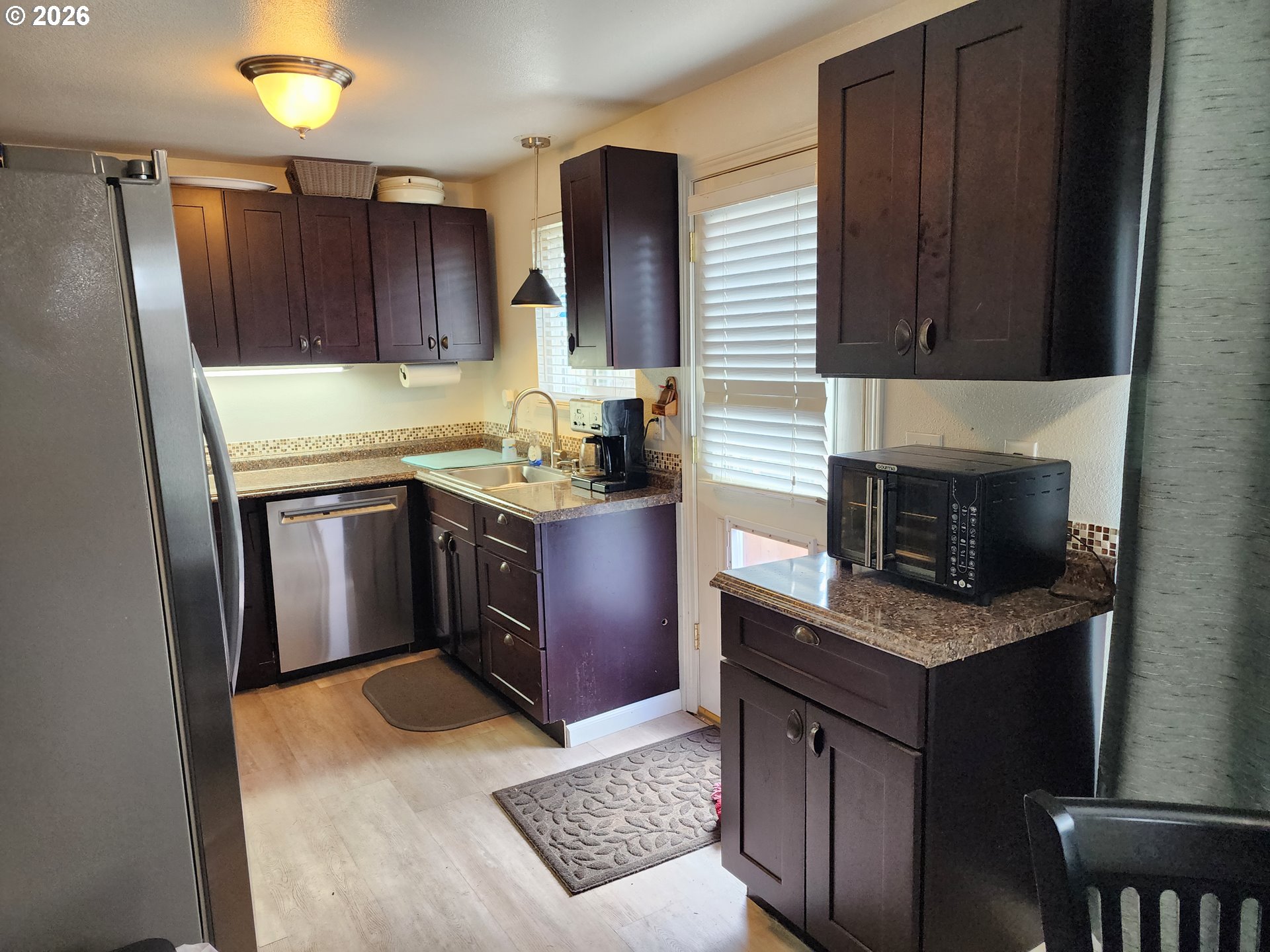 Well-maintained condo in gated community, featuring a primary suite with an ensuite bath and walk-in shower. Includes an updated kitchen with additional cabinetry and newer appliances within the last year. Both bedrooms offer walk-in closets. New roof. Exterior includes a small storage shed and partially fenced yard.