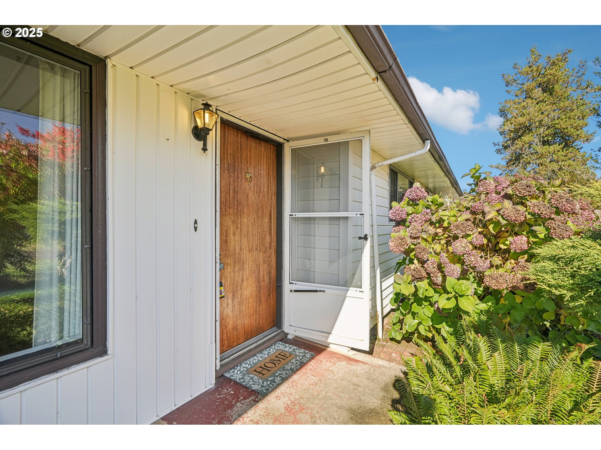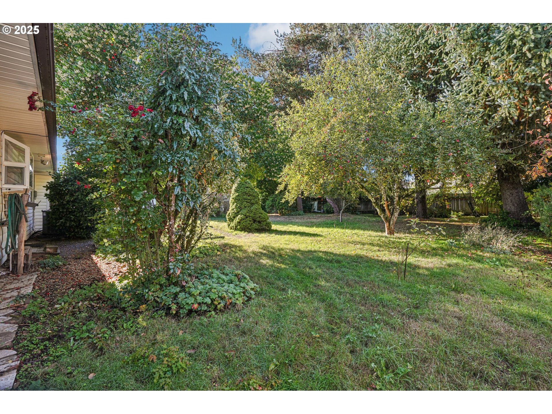 Charming Single-Level Ranch on a Spacious Lot. Welcome home to this inviting 3-bedroom, 2-bath ranch featuring owned solar panels, central A/C, and a newer roof (approx. 10 years old). Enjoy indoor-outdoor living with a screened-in back patio overlooking lush greenery, mature landscaping, and fruit-bearing apple trees, berries, and grapes. Situated on a private .26-acre lot, this home offers comfort, efficiency, and natural beauty — all just minutes from shopping, schools, and less than a 10-minute drive to I-5.
