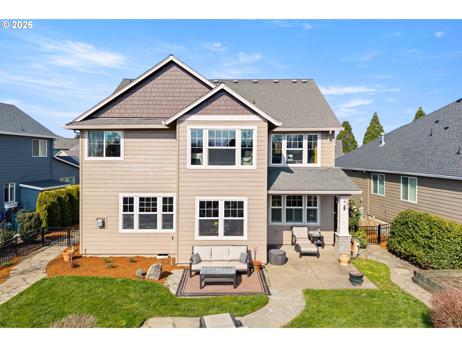 Outstanding Traditional Home in Pristine Golf Community. Located on the 14th Fairway of the OGA Golf Course, this lovely Renaissance home features a Formal Vaulted Living Room with Wall to Wall Carpet, a Formal Dining Room with Brazilian Wood floors, Great Room attached to the Kitchen with eating nook and access to the patio featuring Brazilian flooring, Granite counters, Stainless appliances and Gas Fireplace with Built-Ins and Large Windows with Golf Course views. The upper level has a large Loft for great flex space, as well as a large Primary Suite with Soaking Tub,Large Walk-In Closet, Dual Sinks and so much natural light! Also on the upper level are 2 additional bedrooms with Wall to Wall Carpet and a full bath. Outside, enjoy the double patios, Easy landscape with raised beds and peaceful Views! Front and Rear Landscape is also included in the HOA fees making this a very easy living home.