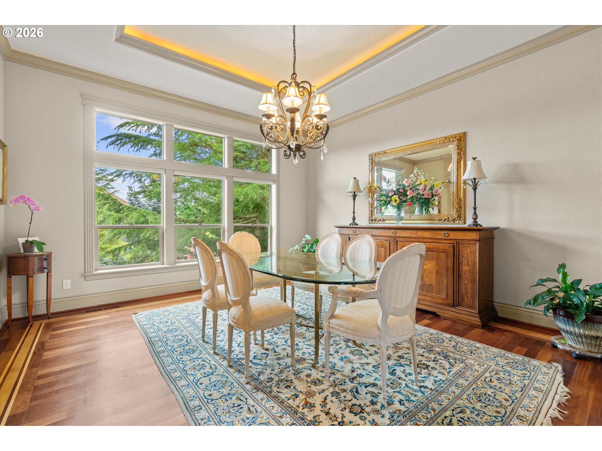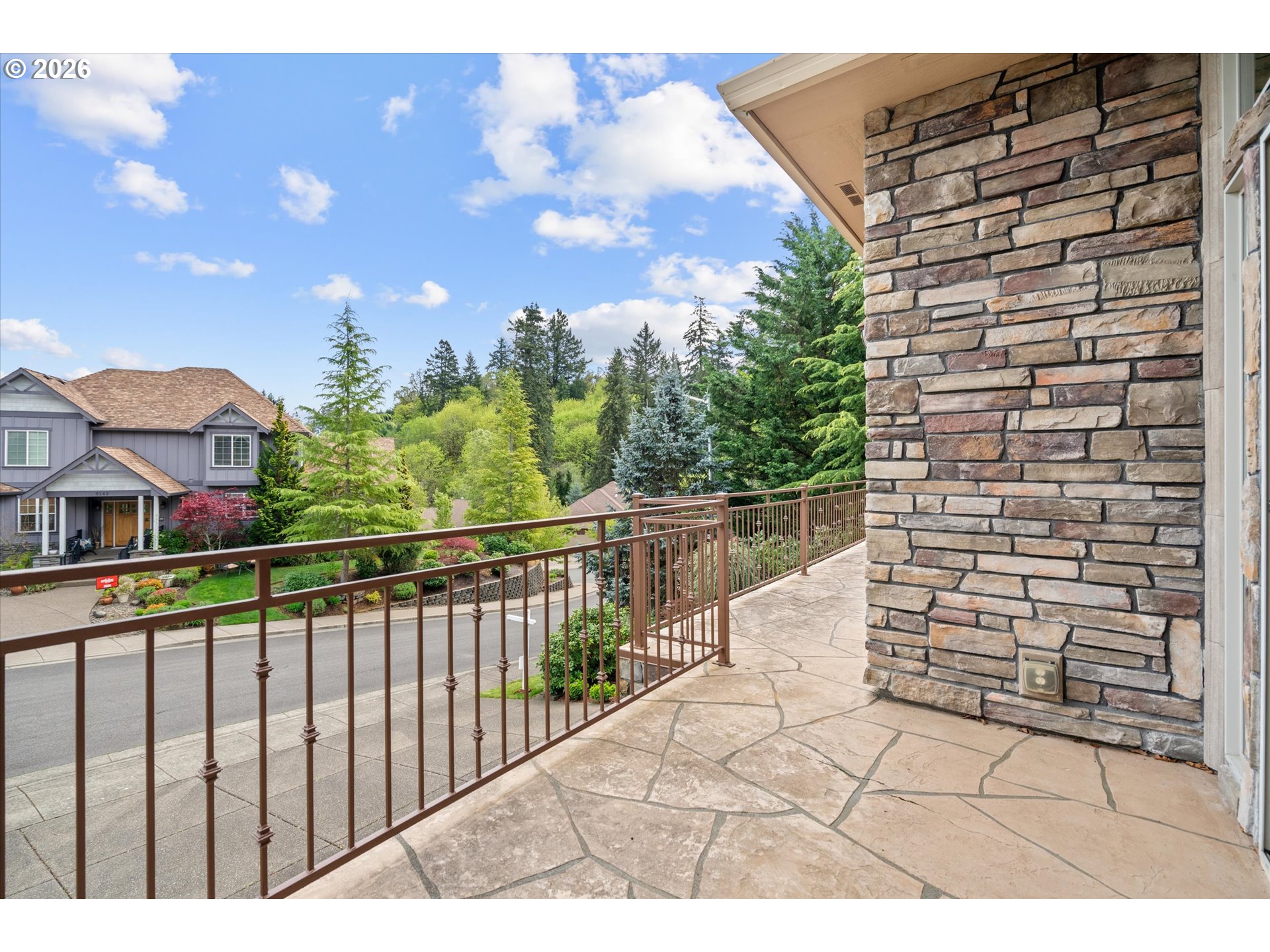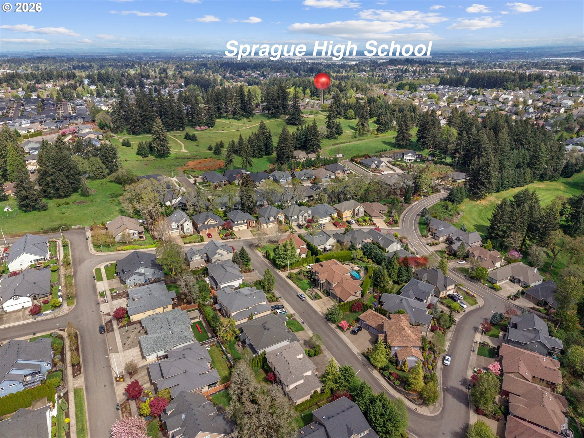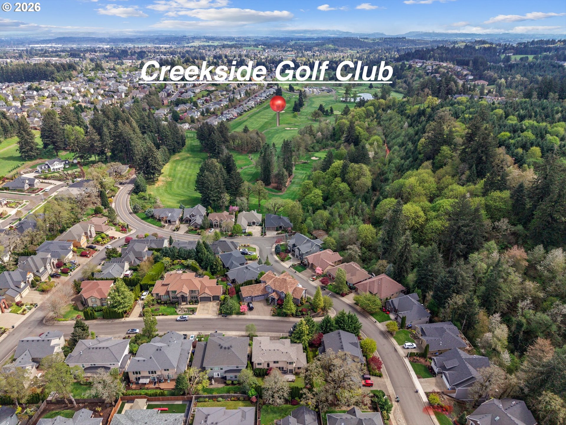 This custom-built home has been meticulously maintained, is built to entertain, and is just blocks away from the Creekside Golf Club. Enjoy sunrise views from the large East-facing views and multiple balconies out of the primary bedroom, office, and living room. On clear days you even get a peek of Mt. Jefferson! The chef's kitchen makes cooking large meals stress free with ample counter space, a large island, a gas range, and built-in stainless steel appliances. Then choose where you relax with dual living rooms and a formal dining room. Three bedrooms are located upstairs, with two true primaries. Both primary bedrooms offer ensuite bathrooms and one has a large walk-in closet. The backyard offers true privacy with mature arborvitae, blueberry, raspberry, and blackberry bushes. Looking for storage for your RV, boat, or ATV? The oversized 4-car garage provides additional storage. A new roof was installed in July 2025 and the sellers are willing to stretch the carpets prior to closing to give this home that brand-new feel.