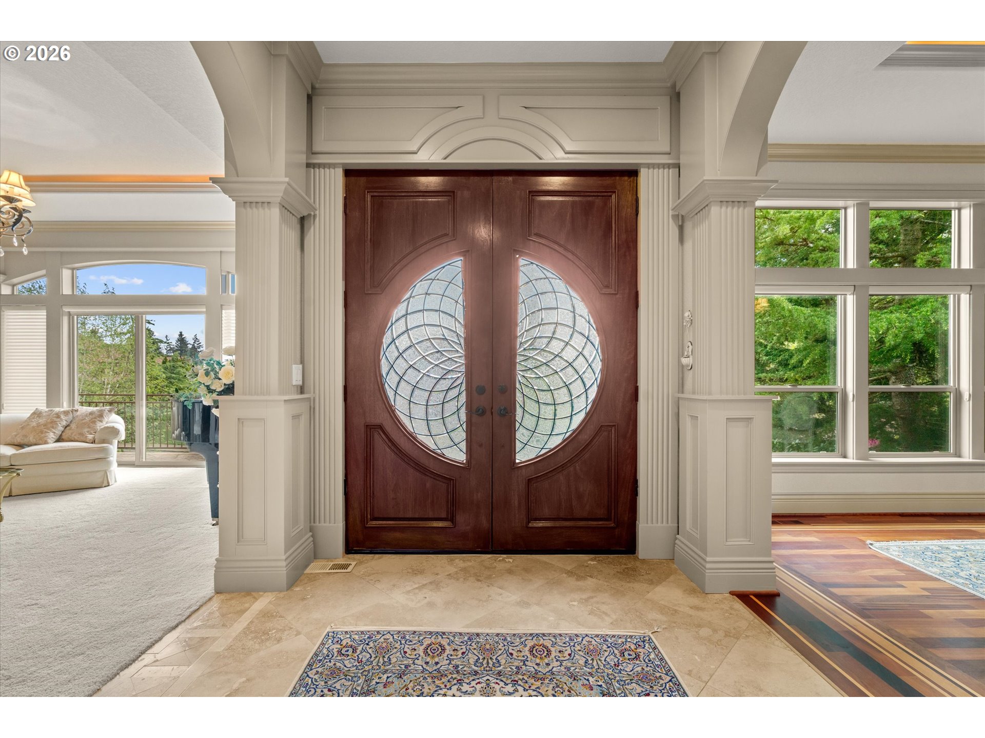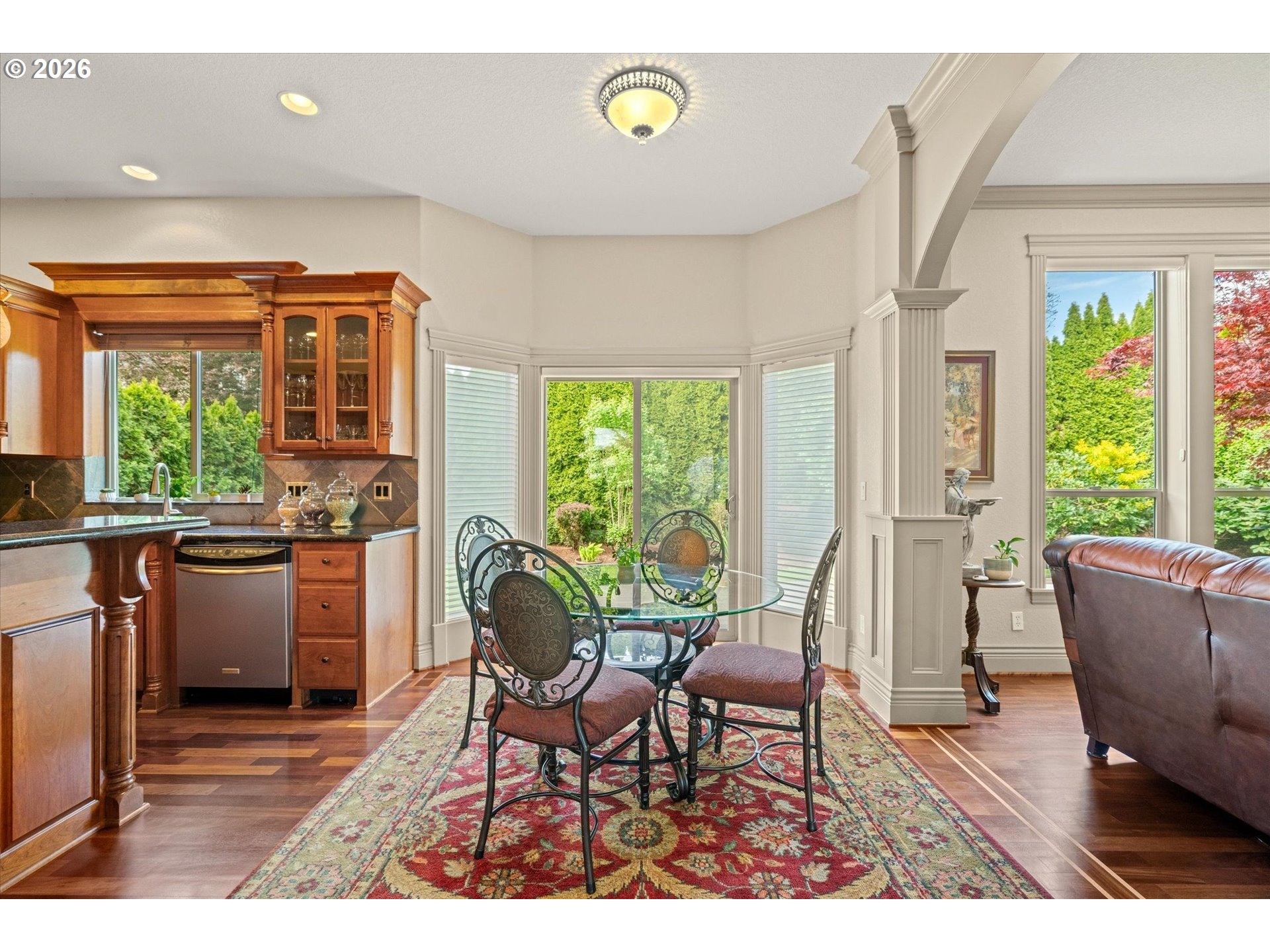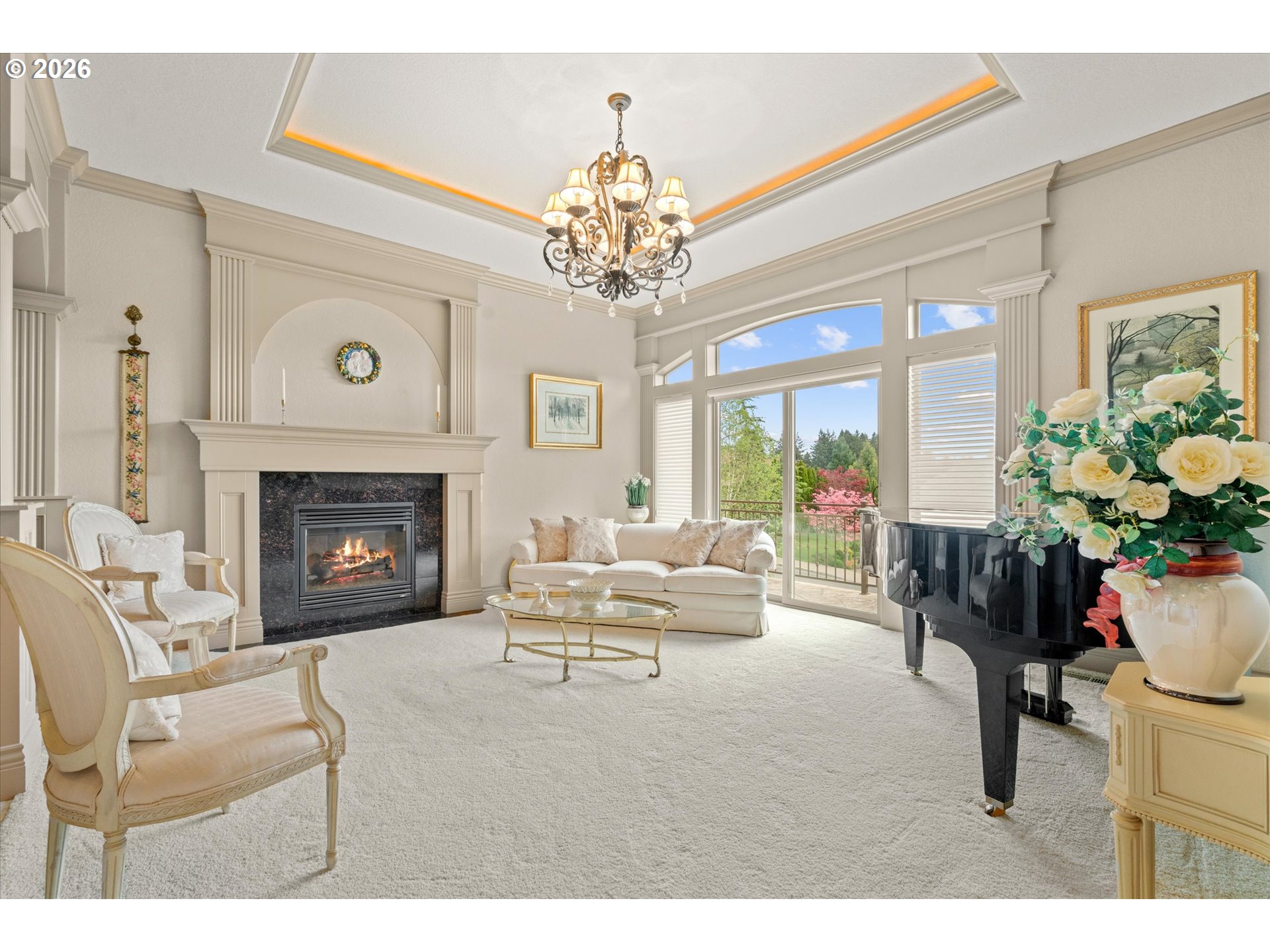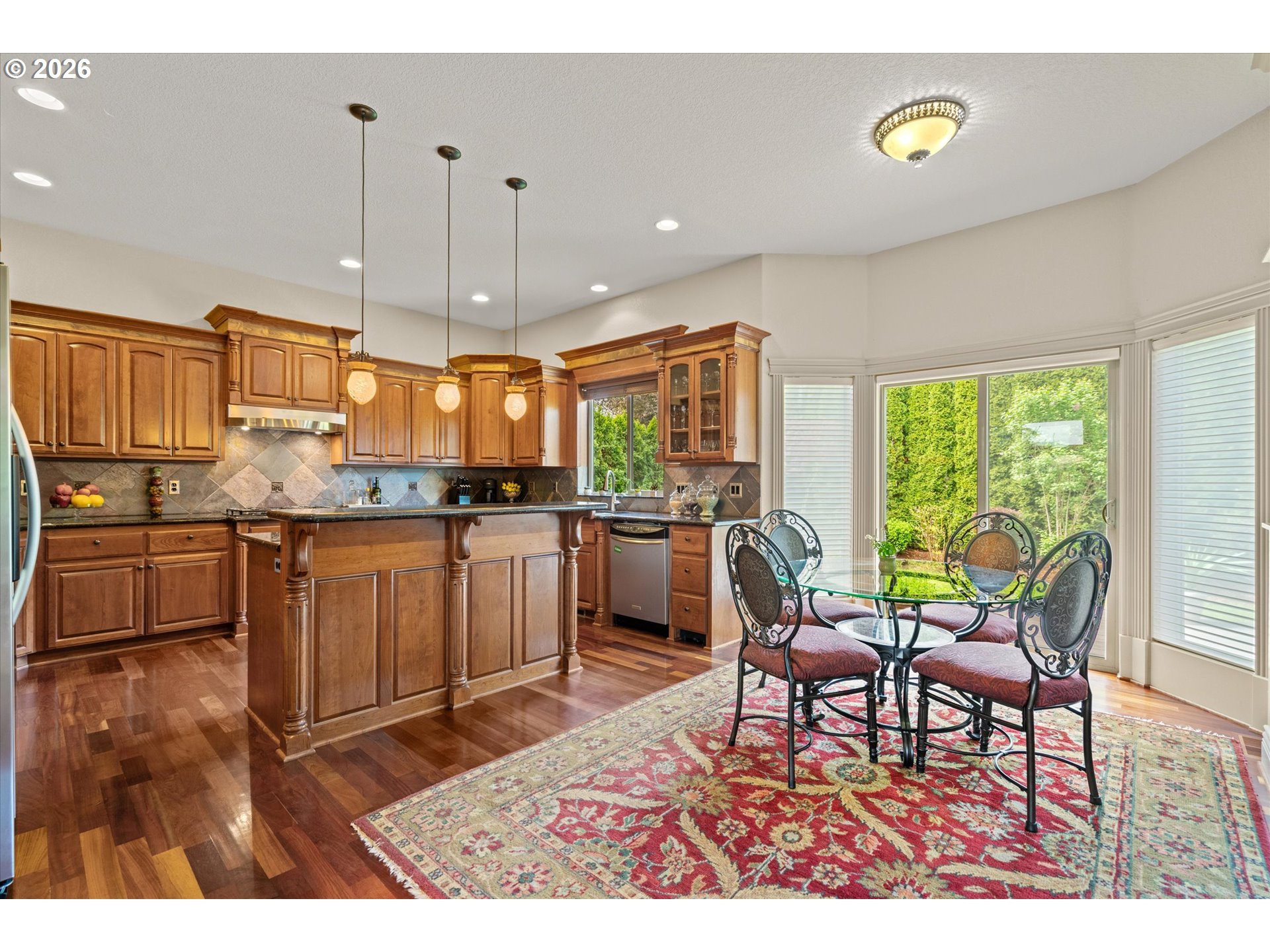 This custom-built home has been meticulously maintained, is built to entertain, and is just blocks away from the Creekside Golf Club. Enjoy sunrise views from the large East-facing views and multiple balconies out of the primary bedroom, office, and living room. On clear days you even get a peek of Mt. Jefferson! The chef's kitchen makes cooking large meals stress free with ample counter space, a large island, a gas range, and built-in stainless steel appliances. Then choose where you relax with dual living rooms and a formal dining room. Three bedrooms are located upstairs, with two true primaries. Both primary bedrooms offer ensuite bathrooms and one has a large walk-in closet. The backyard offers true privacy with mature arborvitae, blueberry, raspberry, and blackberry bushes. Looking for storage for your RV, boat, or ATV? The oversized 4-car garage provides additional storage. A new roof was installed in July 2025 and the sellers are willing to stretch the carpets prior to closing to give this home that brand-new feel.