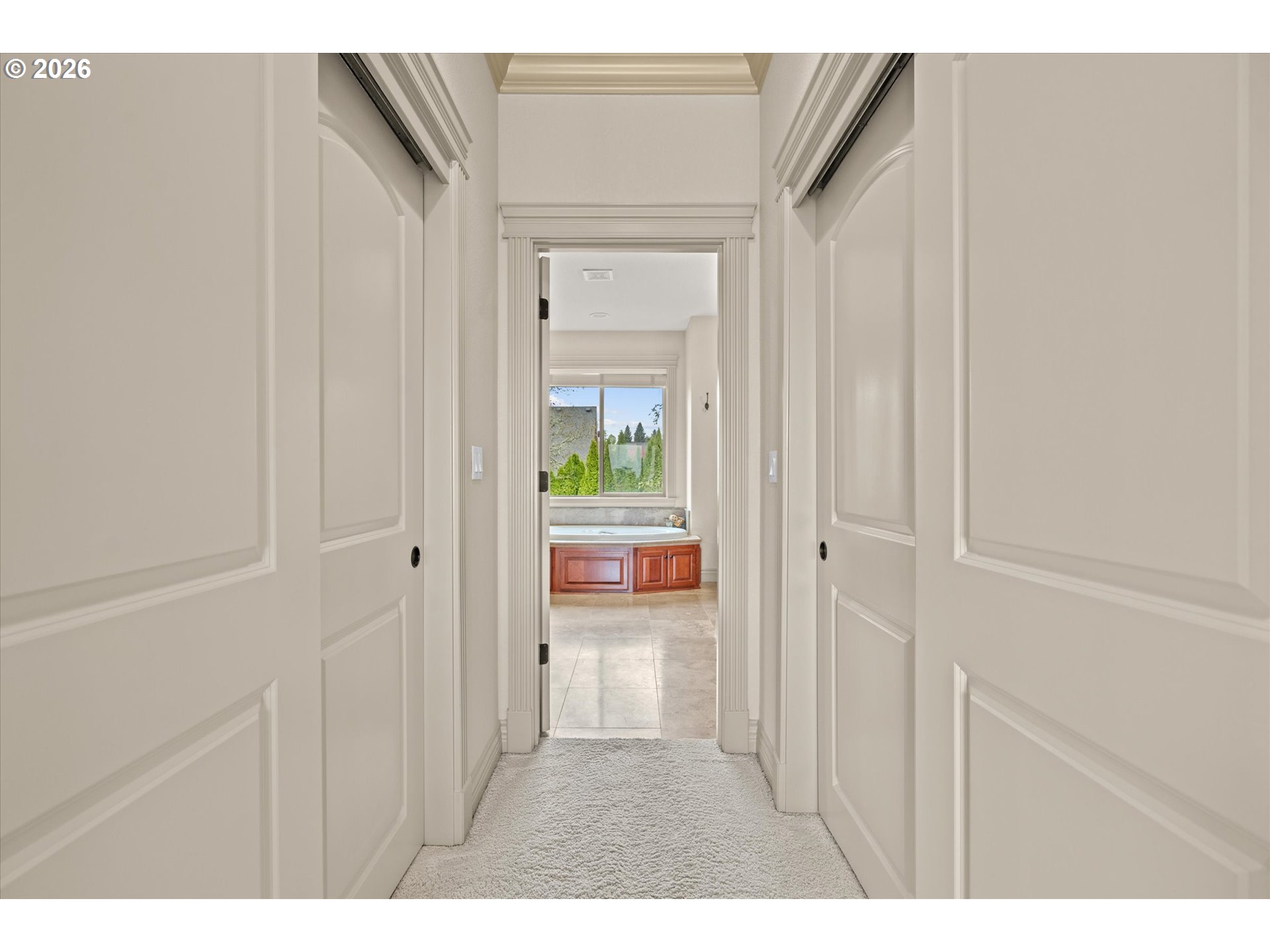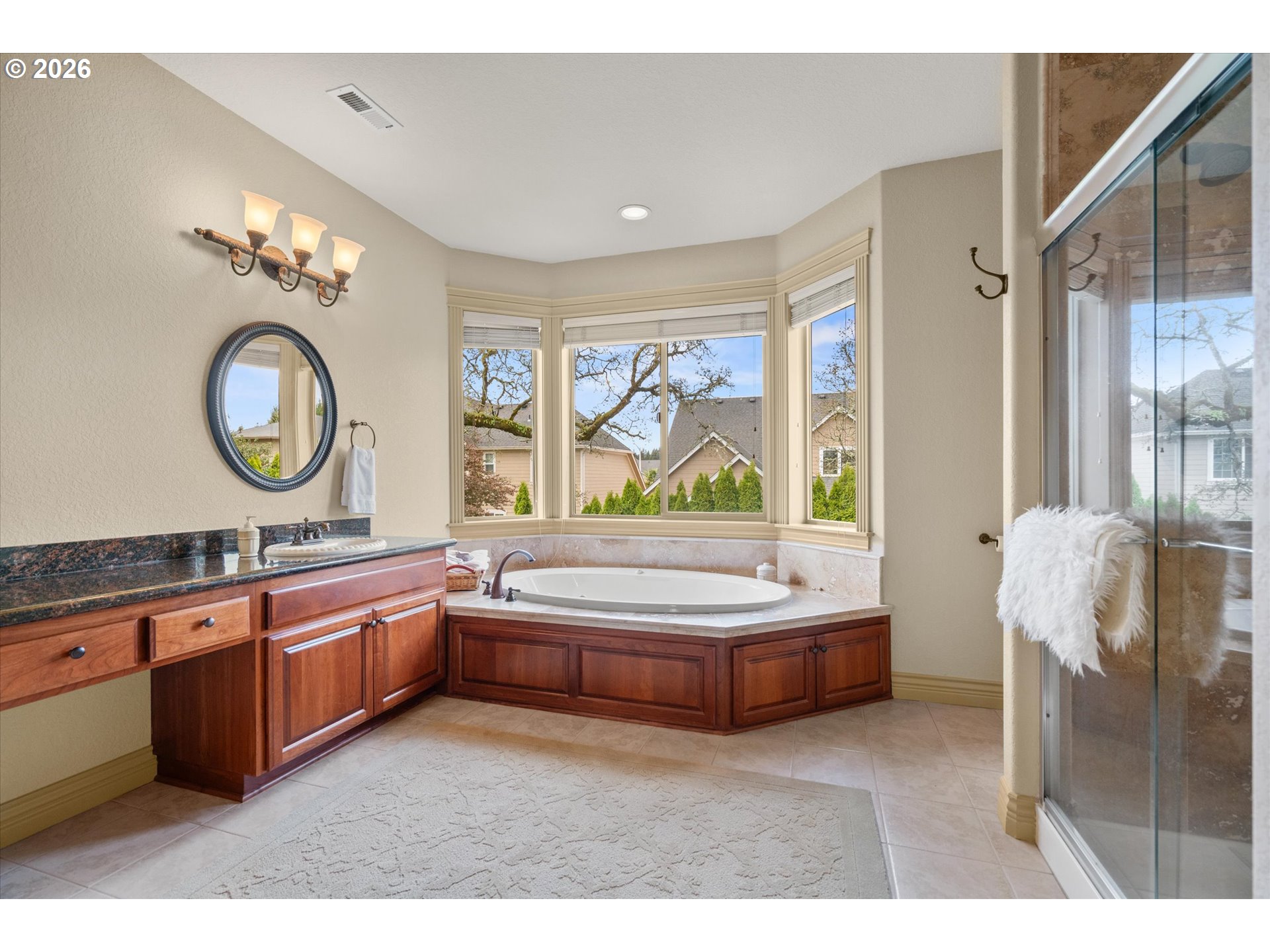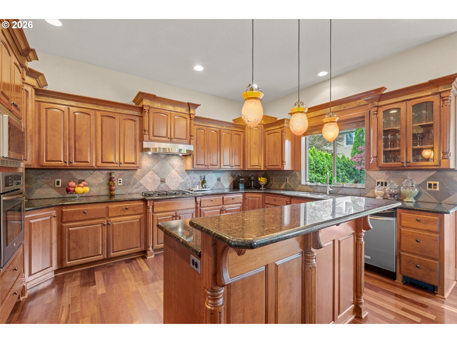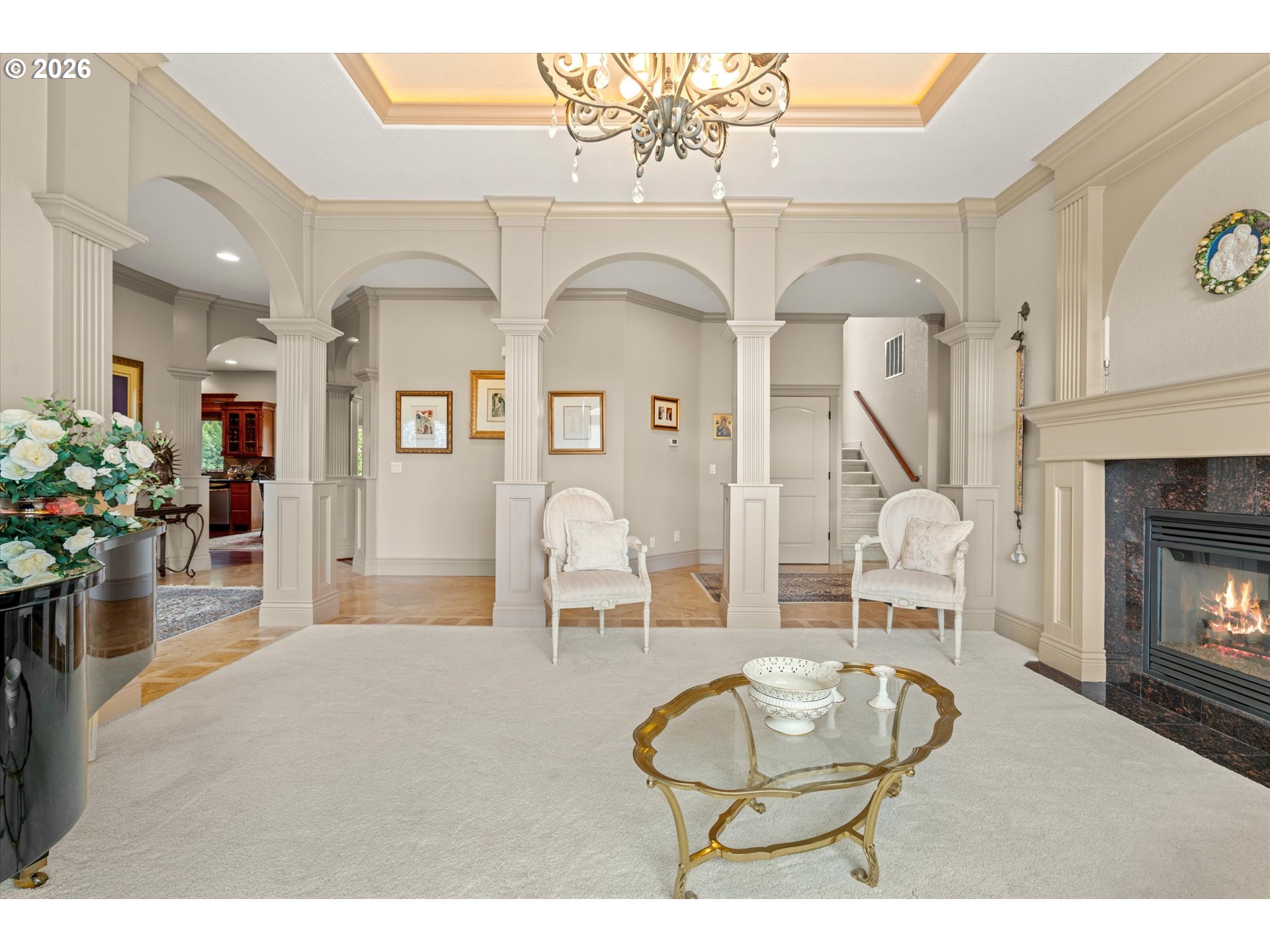 This custom-built home has been meticulously maintained, is built to entertain, and is just blocks away from the Creekside Golf Club. Enjoy sunrise views from the large East-facing views and multiple balconies out of the primary bedroom, office, and living room. On clear days you even get a peek of Mt. Jefferson! The chef's kitchen makes cooking large meals stress free with ample counter space, a large island, a gas range, and built-in stainless steel appliances. Then choose where you relax with dual living rooms and a formal dining room. Three bedrooms are located upstairs, with two true primaries. Both primary bedrooms offer ensuite bathrooms and one has a large walk-in closet. The backyard offers true privacy with mature arborvitae, blueberry, raspberry, and blackberry bushes. Looking for storage for your RV, boat, or ATV? The oversized 4-car garage provides additional storage. A new roof was installed in July 2025 and the sellers are willing to stretch the carpets prior to closing to give this home that brand-new feel.