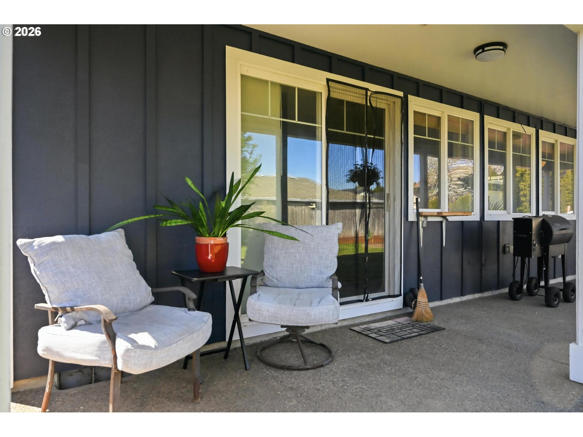 Single-level living at its most functional. This well-maintained 2004 ranch sits on nearly 7,000 sq ft with an oversized 2-car garage, a covered front porch, and dark navy board-and-batten curb appeal that stops the scroll. The layout is open and easy, with the living and dining areas connecting naturally so the space actually lives larger than the square footage suggests.The kitchen was thoughtfully updated with slate-blue shaker cabinets, quartz countertops, a herringbone white tile backsplash, pendant lighting, and a gas range. This is the type of kitchen you would want to use. The living room has vaulted ceilings, a gas fireplace with tile surround, oversized windows that pull in natural light, and laminate wood floors that run through the main living areas. Three well-sized bedrooms and two clean bathrooms round out a floor plan that just works.Set on a flag lot, this property sits well off the street and delivers a level of privacy that is genuinely rare at this price point. The covered front porch, wide concrete driveway, and mature landscaping give the home a presence that feels established and settled.Mount Angel is one of the Willamette Valley's most underrated addresses. It has a German-inspired downtown, the largest Oktoberfest in the Pacific Northwest, and quick access to Silver Falls State Park and the Oregon Garden. This is the kind of move-in-ready home in a community people discover once and never want to leave.