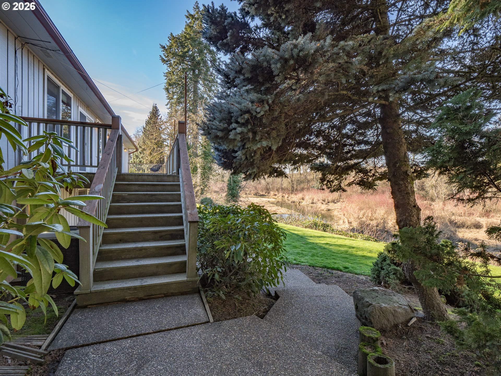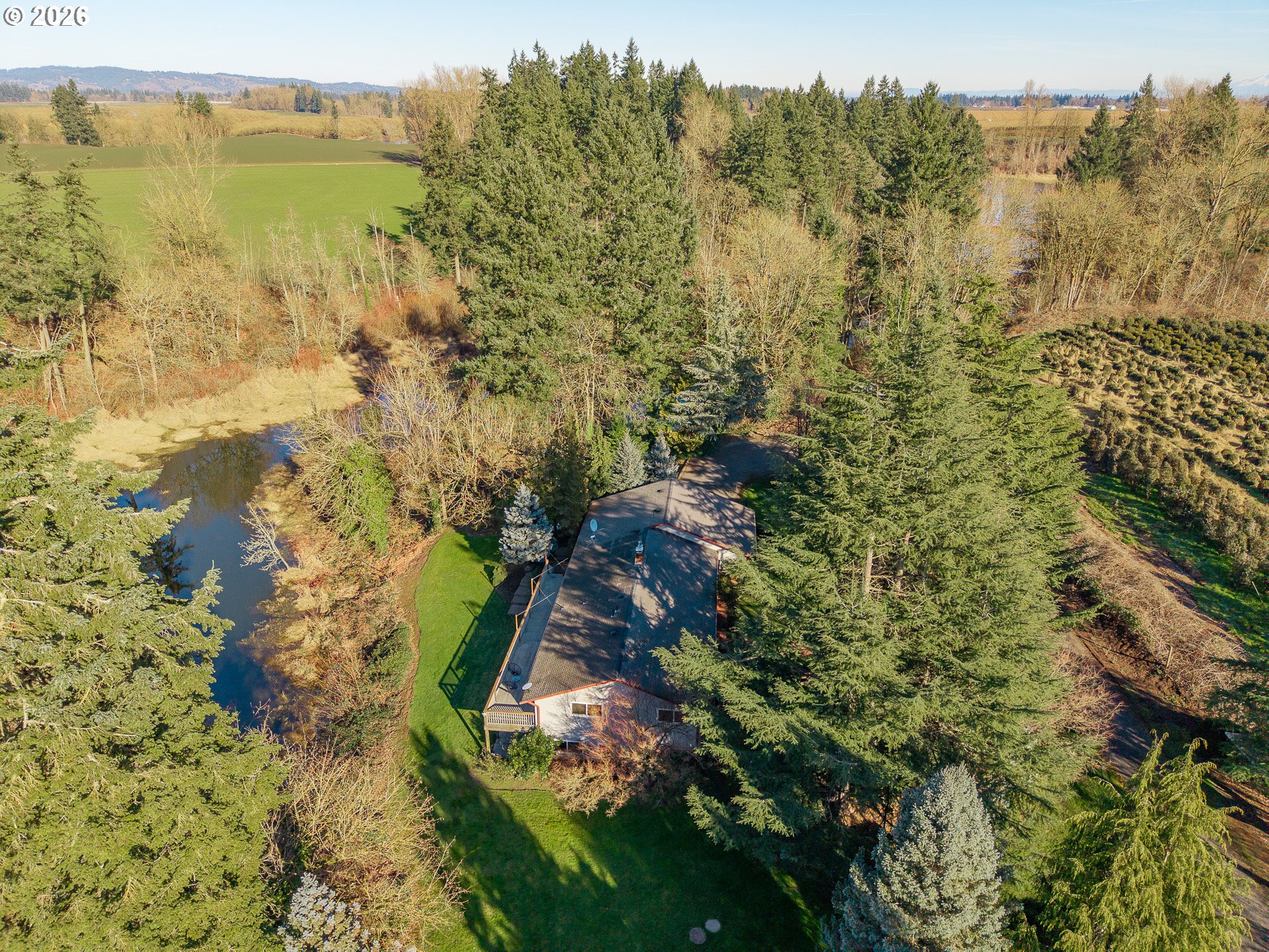 Tucked away at the very end of a quiet dead end road, this French Prairie retreat offers a level of privacy that is increasingly hard to find. With no neighboring homes in sight and nature surrounding you, the setting feels worlds away yet comfortably connected. Much of the acreage is intentionally left wild, creating a low maintenance sanctuary where a year round creek winds through wooded pockets, attracting birds and wildlife and enhancing the sense of peaceful seclusion. It is a property designed to be enjoyed, not worked. The main level is warm and inviting, with a thoughtfully designed floorplan that places the kitchen, dining, living areas, and primary suite all on one level. High end finishes and cozy gathering spaces make the home feel both refined and relaxed. Step out onto the back deck to take in views of Champoeg Creek, enjoy the quiet sounds of nature, or host an easy afternoon barbecue with friends. The lower level adds flexibility with two additional bedrooms, a spacious family room featuring new flooring, and a large full bathroom. Multiple storage closets provide plenty of room to keep gear, supplies, or seasonal items neatly tucked away. From here, step directly onto the covered patio and wander through the manicured lawn, framed by mature landscaping that adds to the home’s sense of calm and care. An office attached to the garage creates an ideal work from home setup, while the garage itself is equipped for EV charging, making modern convenience feel effortless in this serene setting. Private, peaceful, and surprisingly accessible, this retreat is just minutes from everyday amenities yet feels like a true escape. If you have been searching for a home where nature, privacy, and comfort coexist, this one is worth experiencing in person. Schedule a showing today!