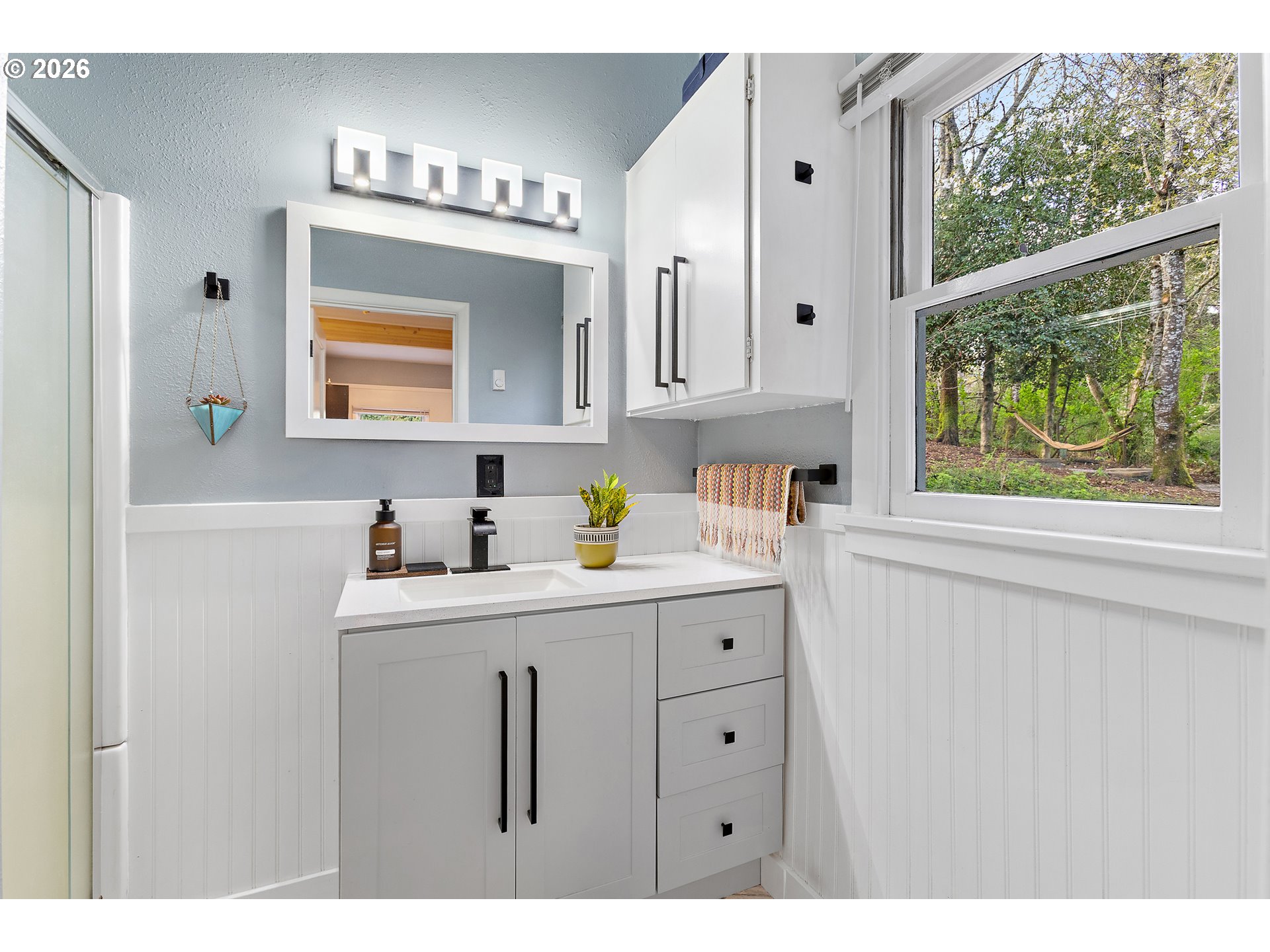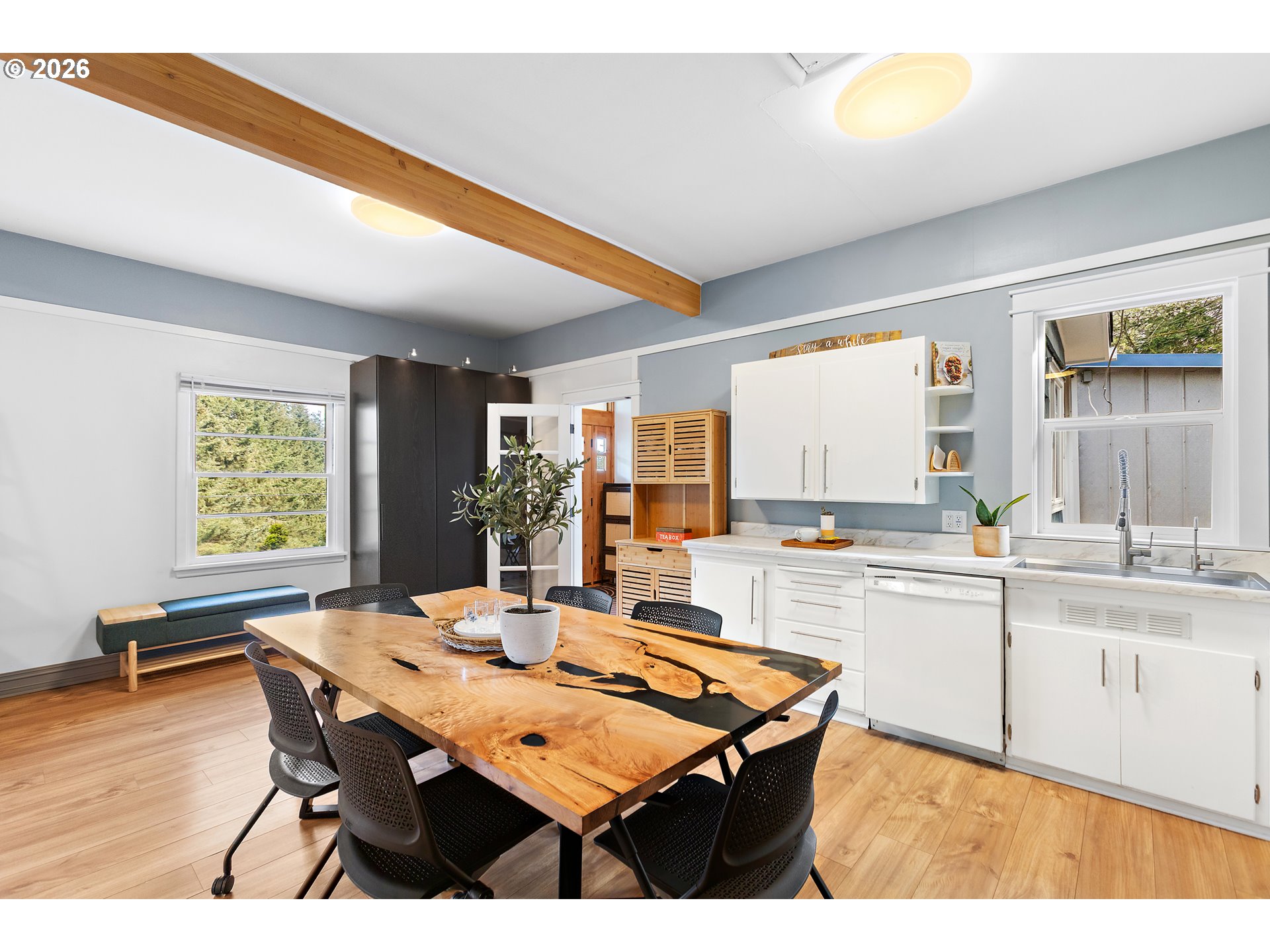 Updated cottage in peaceful setting surrounded by nature just outside city limits. Open floorplan, studio-style interior with beautiful finishes. New roof and gutters in 2025, exterior paint 2026. Other features include expansive parking, underground cellar, unfinished attic, low-voltage landscape lighting. This is move-in and comfortable living ready!