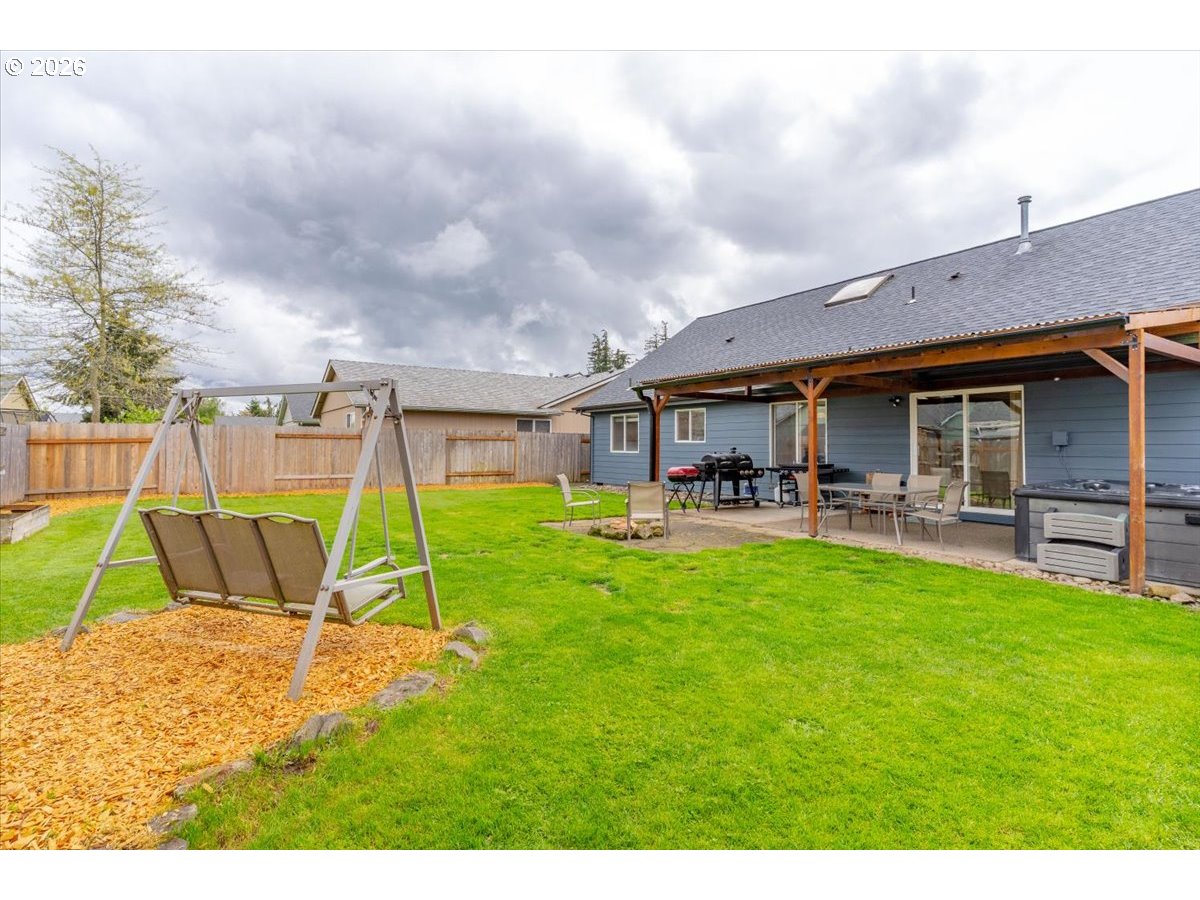 Welcome to this versatile and inviting home, thoughtfully designed for comfortable living. With aliving area on each floor, you’ll enjoy the flexibility to create a home office or playroom to suityour needs. Step outside to a covered patio with a hot tub and a flat yard- perfect for relaxing orentertaining year-round. Located within the Clearlake, Whiteaker, and McNary school districts