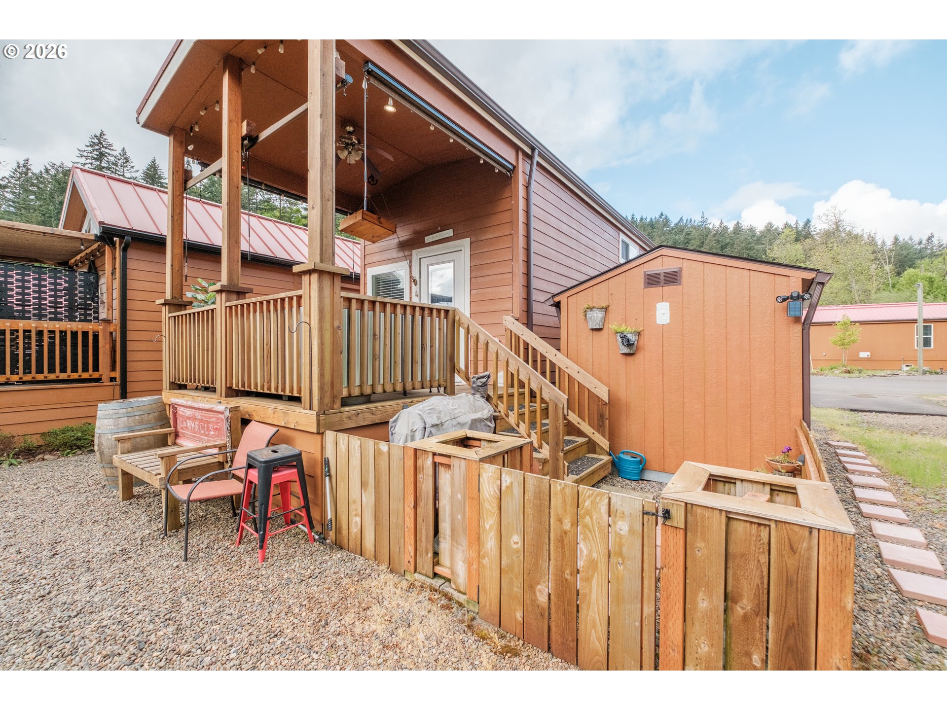 Welcome to this thoughtfully designed 1 bed/1 bath tiny home that blends modern efficiency with cozy charm. Built for comfort and functionality, the home features 50-amp electrical, dual mini splits providing energy-efficient heating & cooling, a beautiful farmhouse sink, stainless appliances, stackable washer/dryer and an oversized loft. Inviting outdoor living with two separate covered decks. Resort living featuring a pool, hot tub, tennis courts, clubhouse, fitness center, walking trails & security gate