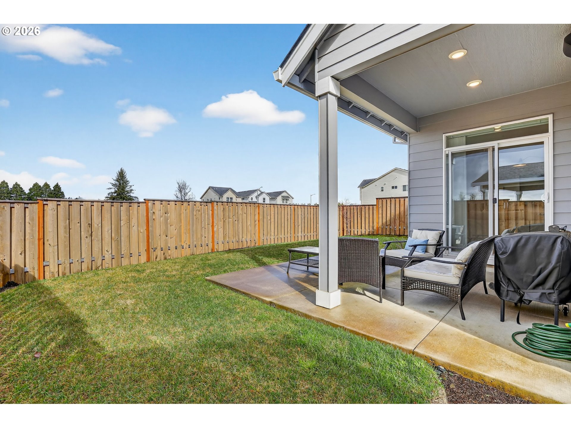 CoveredPatio, Fenced, Garden, PublicRoad, Sprinkler, Yard