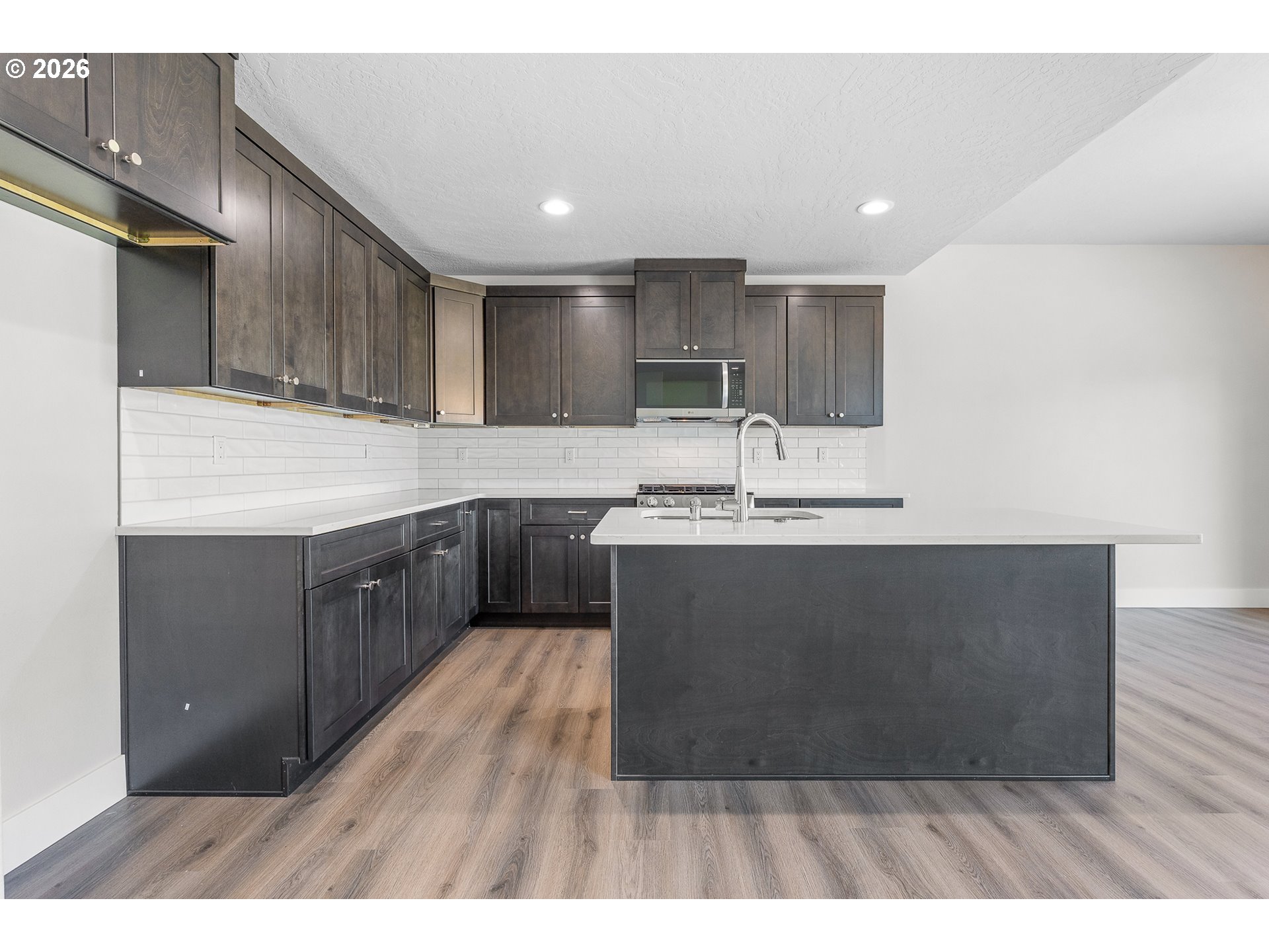 Dishwasher, Disposal, FreeStandingGasRange, Island, Microwave, Pantry, PlumbedForIceMaker, Quartz, SolidSurf