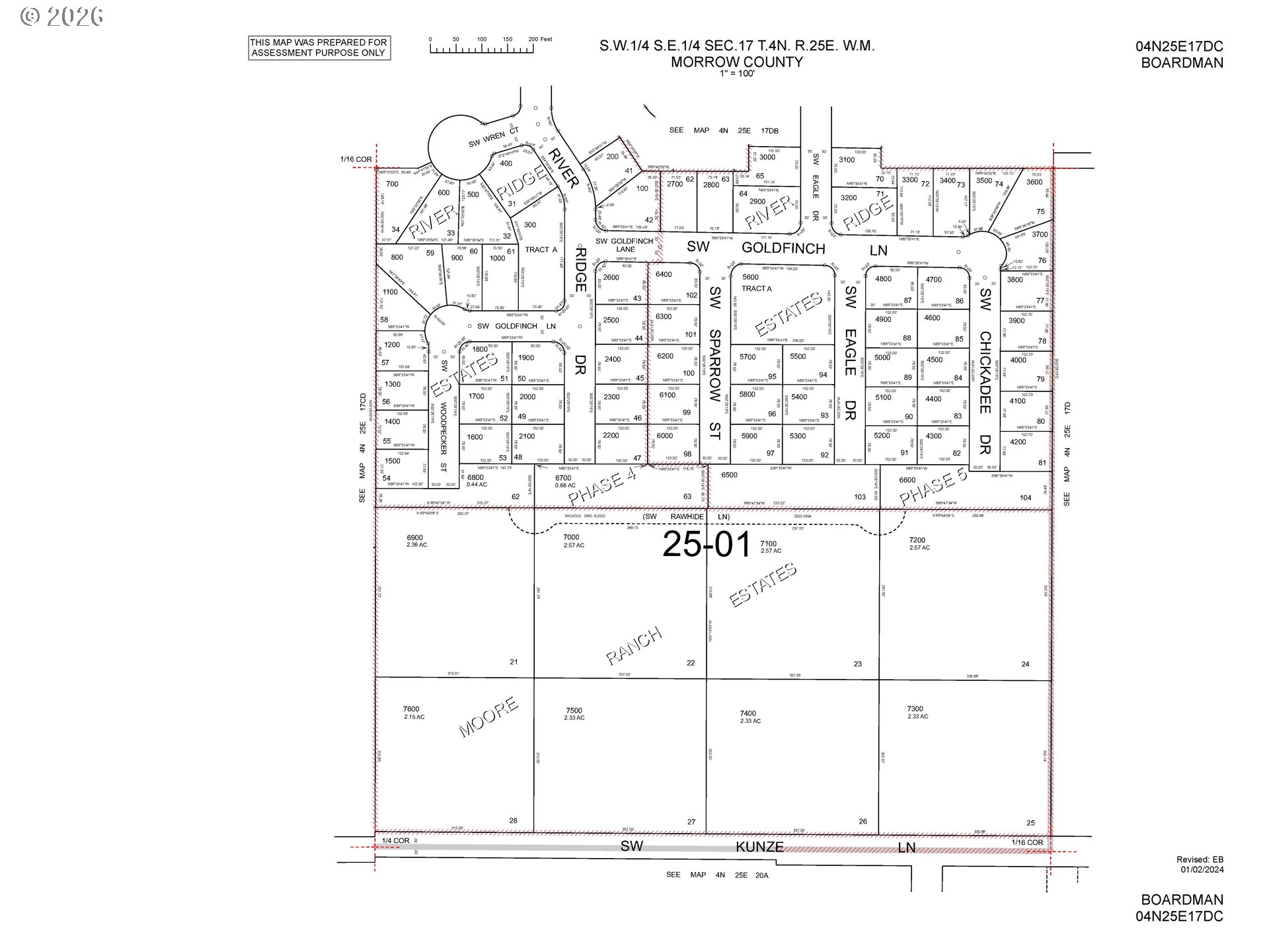 PROPERTY:R9041, MOORE RANCH ESTATES, 25, TAX MAP 04N25E17DC, 6500-7600, PHASES 6 & 7, KUNZE SW