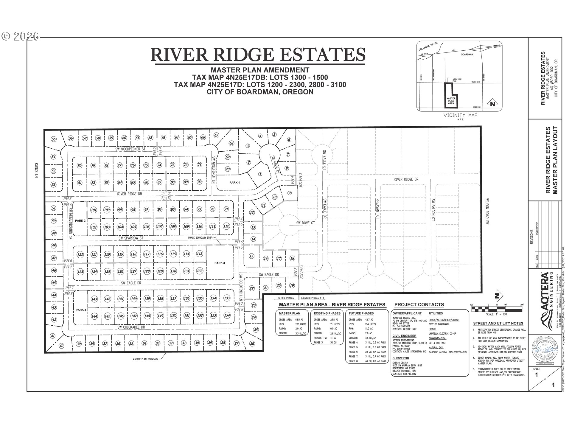 Prime development opportunity in the growing community of Boardman, Oregon. This 29.53-acre property spans 12 parcels and includes 82 paper lots, zoned R-1 with Preliminary Plat Approval already in place—significantly reducing your timeline to build.The site features flat topography and has utilities available at the property, making it highly development-ready. Ideally located in the area of Amazon’s new “Exascale” data center, this area is poised for continued growth and increased housing demand. Whether you're a builder, developer, or investor seeking your next subdivision project, this property offers scale, location, and strong future upside.