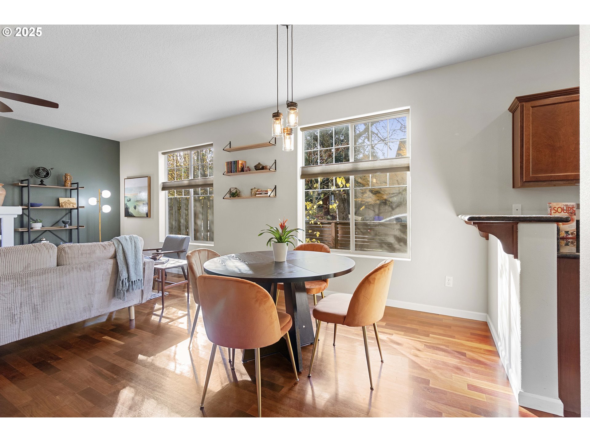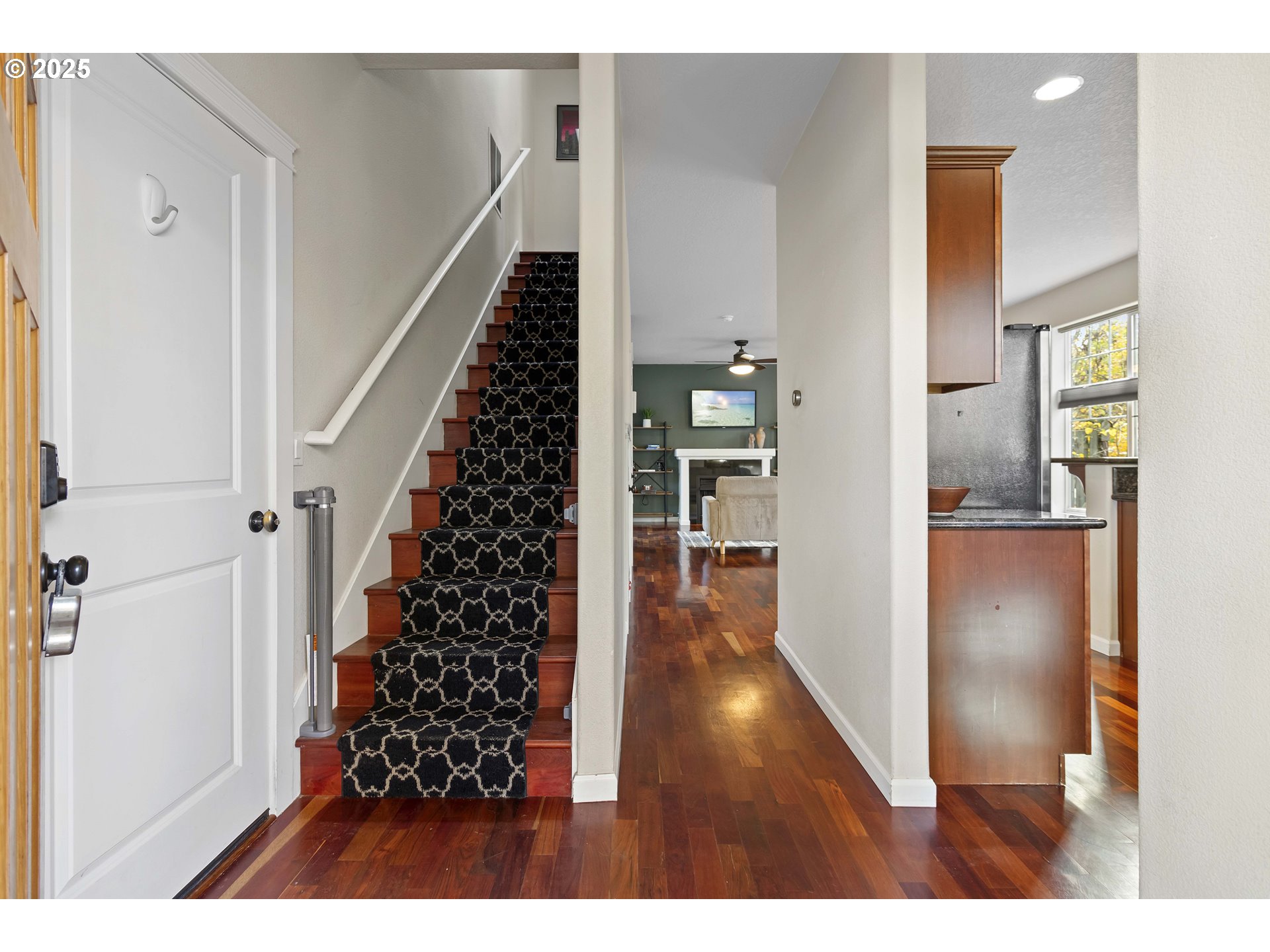 Nestled in the heart of Woodlawn's desirable Dekum Triangle,this 3 bedroom, 2 1/2 bath attached home is move in ready and walkable to the best the neighborhood has to offer. You'll love the open, light-filled layout on the main floor with it's huge windows, gorgeous hardwoods, gas fireplace and a slider to the outdoor patio. The kitchen features stainless appliances, wood finish cabinets, granite counters and an eating bar. The three bedrooms upstairs include the primary suite with walk in closet and full bathroom with dual sinks and shower. The third bedroom offers wood floors and flexibilty with a built-in Murphy bed.Upstairs laundry adds convenience. Enjoy evening sunsets from your front porch, and cocktails on your back patio/deck. Stay cool in summer with the newer A/C unit.The garage is maximized for storage, and there is driveway parking. Walk to amazing dining spots, Woodlawn park, a local brewery and more. Open house Saturday 11/22 from 1-3 PM. [Home Energy Score = 8. HES Report at https://rpt.greenbuildingregistry.com/hes/OR10182667]