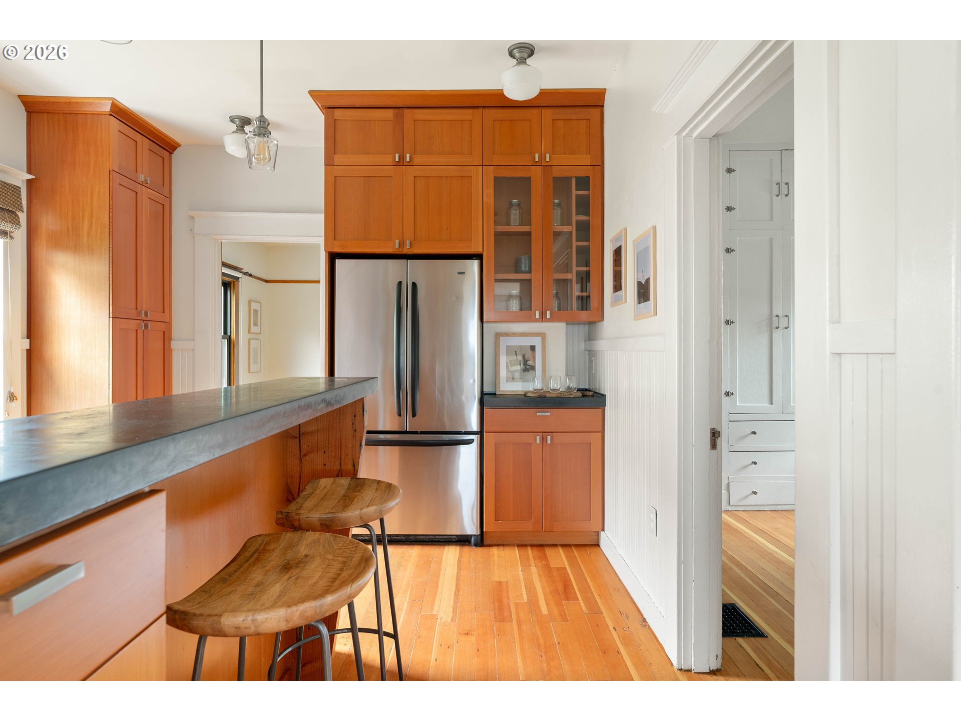 This amazing Portland bungalow is just moments from Alberta’s vibrant restaurants and shops, and has incredibly low property taxes! A welcoming front porch leads into light-filled living and dining spaces where classic charm meets modern comfort. The thoughtfully designed kitchen features custom fir cabinetry, concrete countertops, and a generous breakfast bar ideal for gathering. An enclosed sun porch extends the living space and opens to a private backyard retreat with a dining patio and raised garden beds. A rare urban sanctuary, perfect for effortless indoor-outdoor living and entertaining. [Home Energy Score = 5. HES Report at https://rpt.greenbuildingregistry.com/hes/OR10047433]
