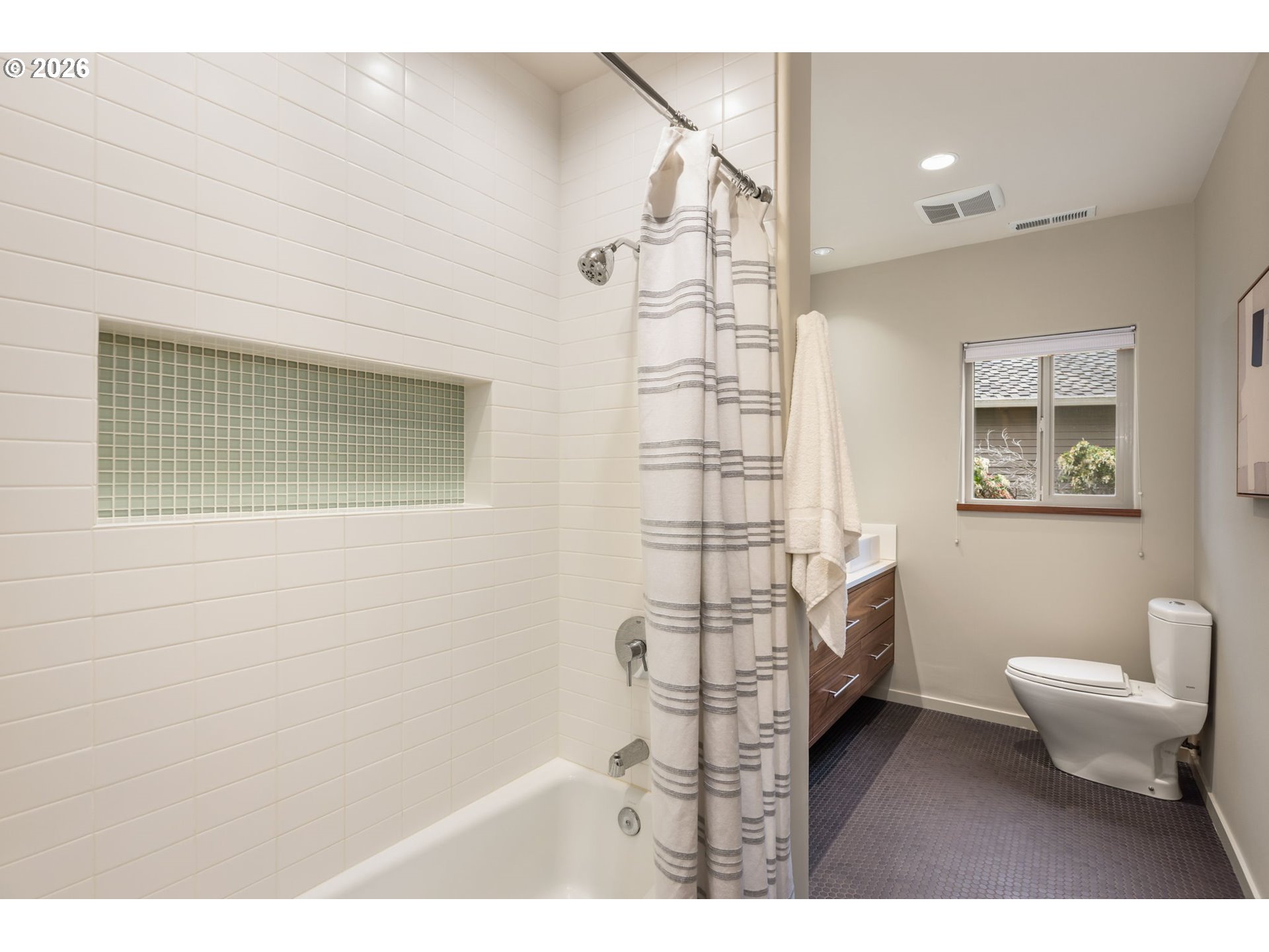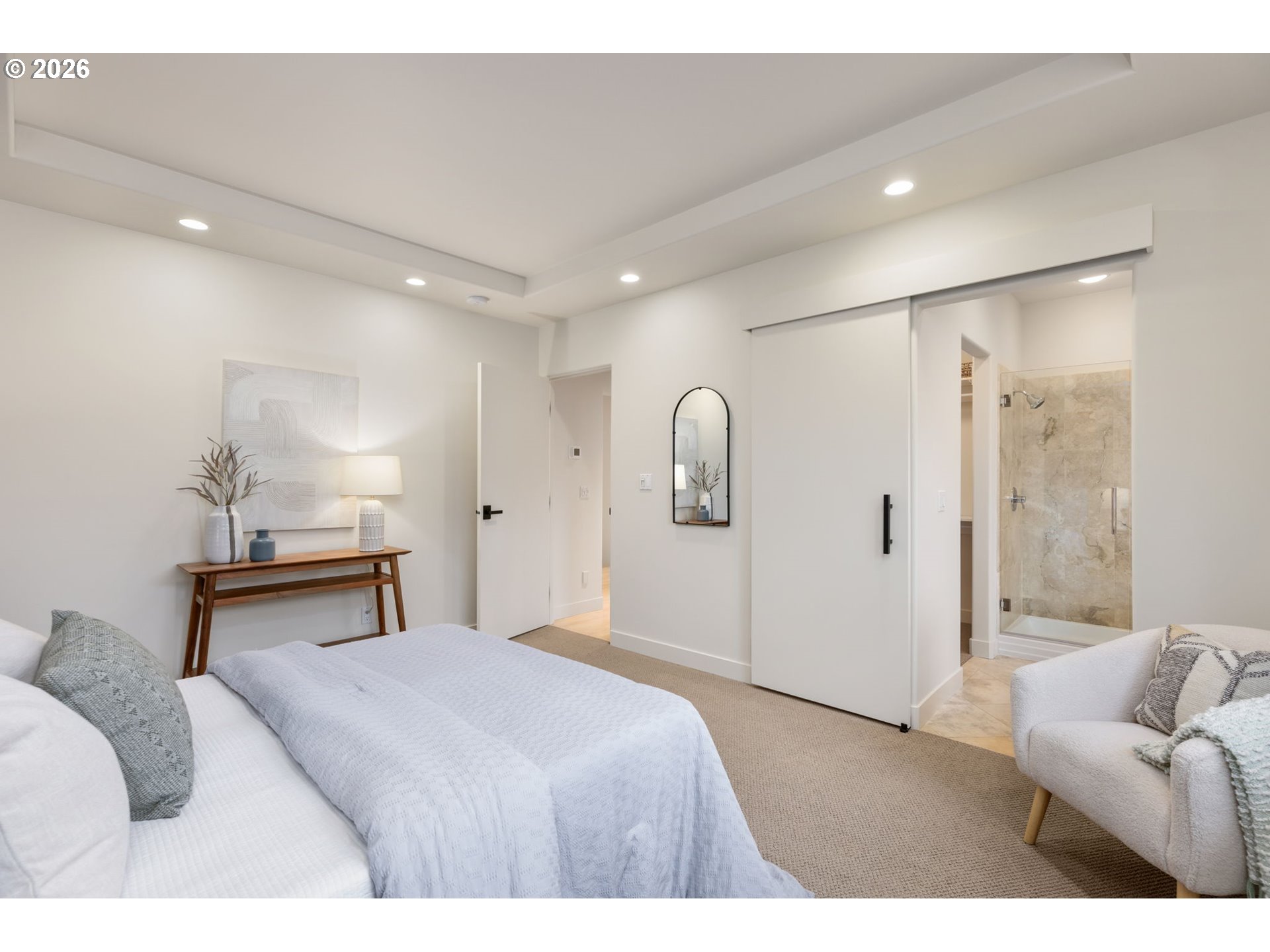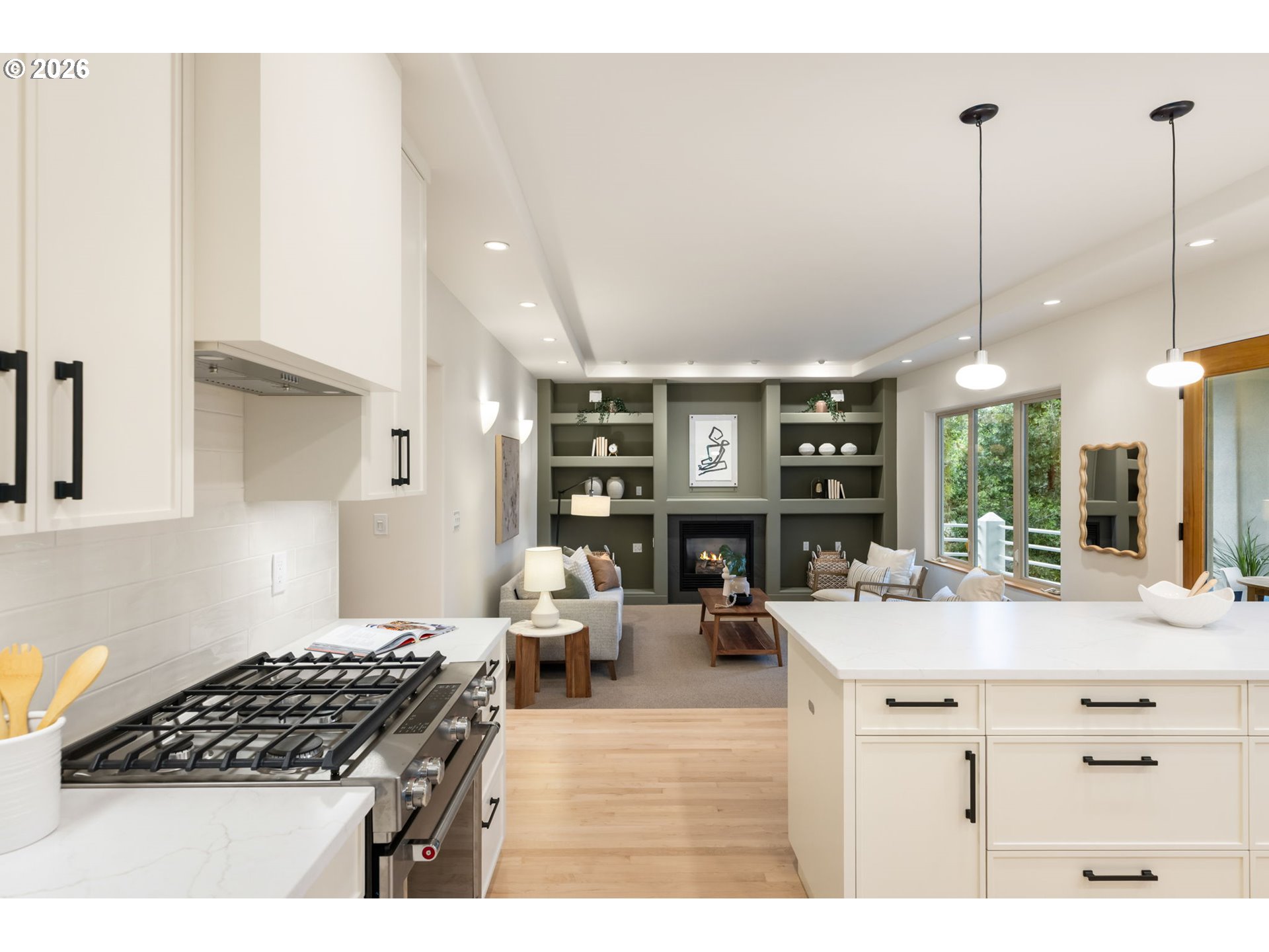 GORGEOUS BRAND NEW professionally designed dream kitchen. Custom slim shaker cabinets and calacatta quartz counters grace an updated cabinet layout with an abundance of storage. Newer appliances are the cherry on top (Too much to list! See Features & Updates List). Freshly painted interior and exterior give this architectural beauty an elegant and tasteful refresh. Designer touches extend to the Primary Suite on the main, with an Instagram worthy feature wall and coordinating new bathroom vanity that add a touch of luxury to this retreat. New carpet and refinished original maple flooring on main coordinate beautifully with lower level heated engineered HW floors. A stunning walnut feature wall and built-ins give the lower level an elevated focal point to this generous, daylight, lower level family room that stays cool in the summer and toasty warm in the winter with heated floors. Start your day with your morning coffee on the covered upper patio, conveniently located off the kitchen (and plumbed for your gas BBQ!). Or lounge on the lower covered patio while you watch the kiddos or pups on the fully fenced back lawn. The lower level features two bedrooms, a full bath with modern finishes and heated floors + two bonus spaces (See Floor Plan). Enjoy two flex options for your dream: workout room, craft room, wine room, workshop or storage space. Potential for 1 level or multi-gen living (Buyer to perform due diligence). Located just a short walk from Mill Pond Park and conveniences at the Village. Hikers will enjoy use of 4 miles of private trails that connect to Forest Park public trails, for longer hikes. Convenient access to Hwy 26, Hwy 217, Tech Corridor, Downtown, NW 23rd and St. Vincent. It’s all been done! Nothing to do but move into this airy, light filled beauty. [Home Energy Score = 8. HES Report at https://rpt.greenbuildingregistry.com/hes/OR10246451]